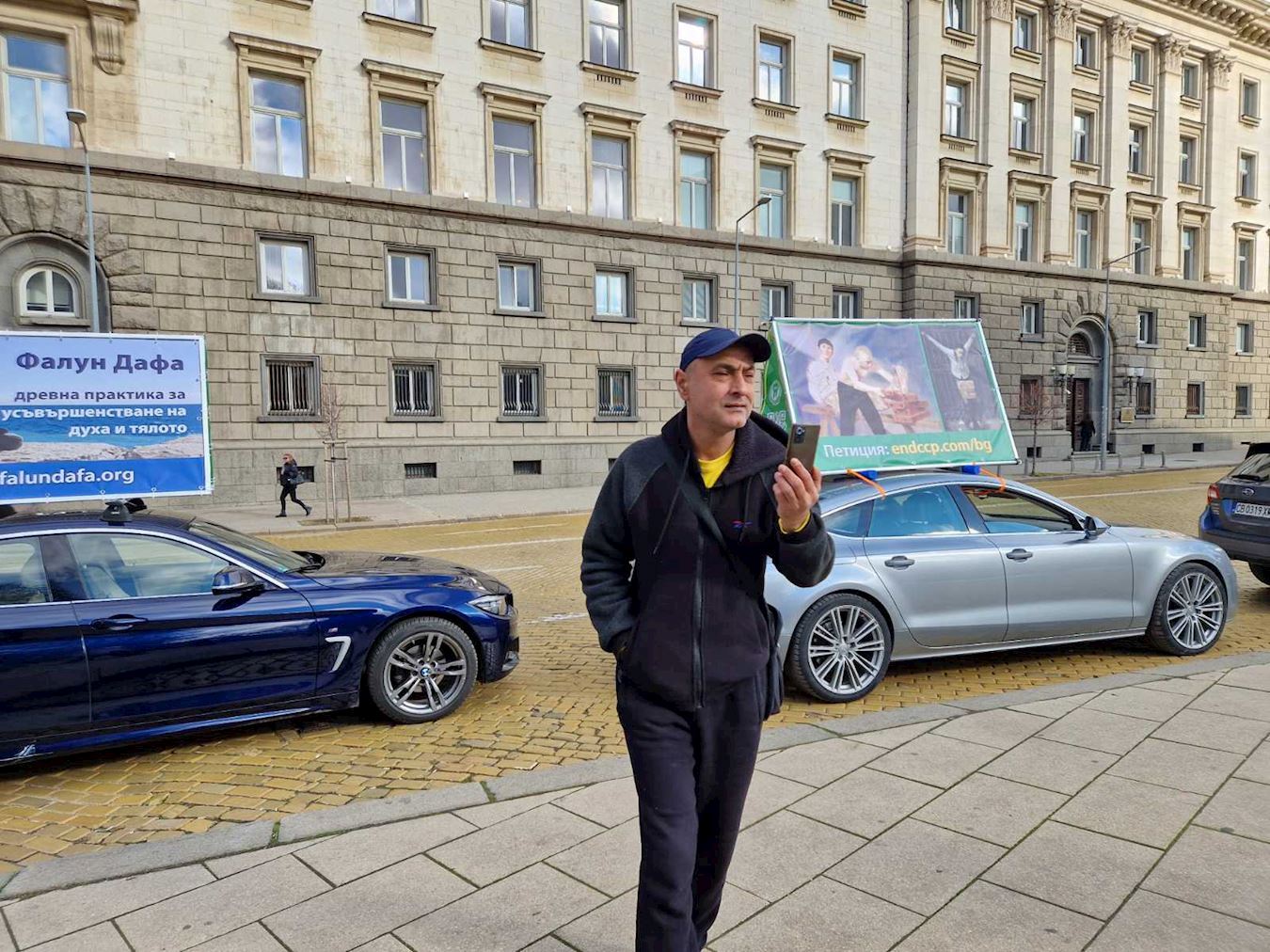 二零二五年十二月九日,学员们于上午十点至中午十二点在索非亚的中共大使馆前举办和平抗议活动。