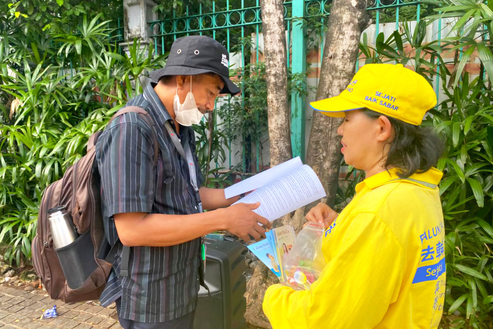 【明慧网二零二五年十二月十七日】二零二五年十二月十日国际人权日到来之际,印度尼西亚的部分法轮功学员在首都雅加达和东爪哇省省会泗水市举行两场集会,唤起人们对中共持续迫害法轮功的关注。警察与不少路人接过法轮功真相资料后,表示支持法轮功反迫害,有一位女士鼓励学员:“请继续发声!”