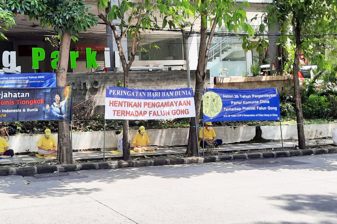 图1~3:在国际人权日之际,二零二五年十二月十三日,法轮功学员在印尼首都雅加达举行和平集会,唤起人们对中共持续迫害法轮功的关注。