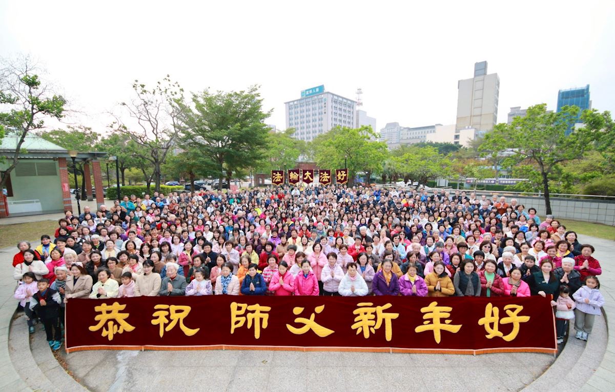 ![]() 图1:桃竹苗法轮功学员齐聚于竹北市文化公园,向慈悲伟大的师父恭祝新年快乐。 |