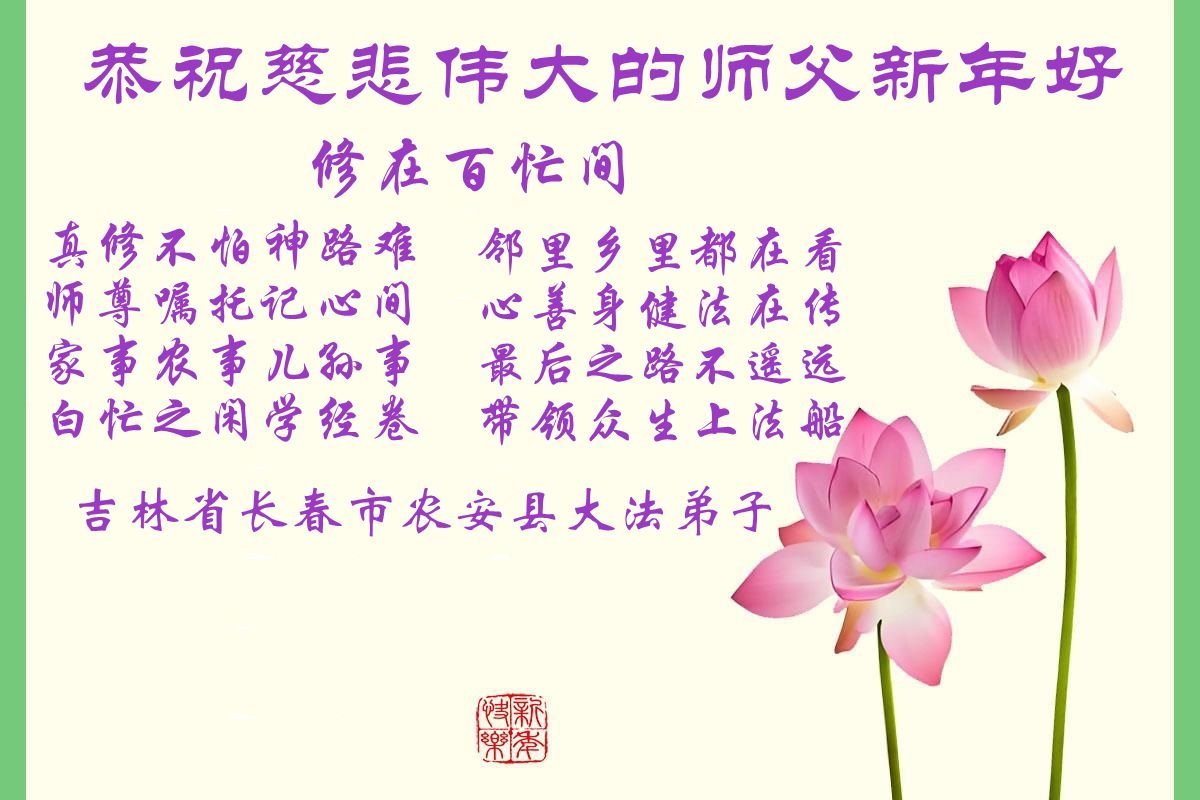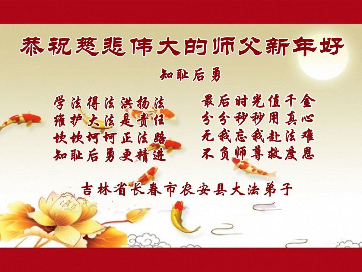 我只做了大法弟子应该做的一点点事,和精進的同修相比,还有很多不足。今后我要集中精力学好法,把修心去执著摆在第一位,只有提高心性,用纯净祥和的心态,才能心系众生,救人的效果才能更好。特别是那些被中共洗了脑、对大法有抵触的人,要用慈悲祥和的心态给他们讲清真相,使他们能够得救。