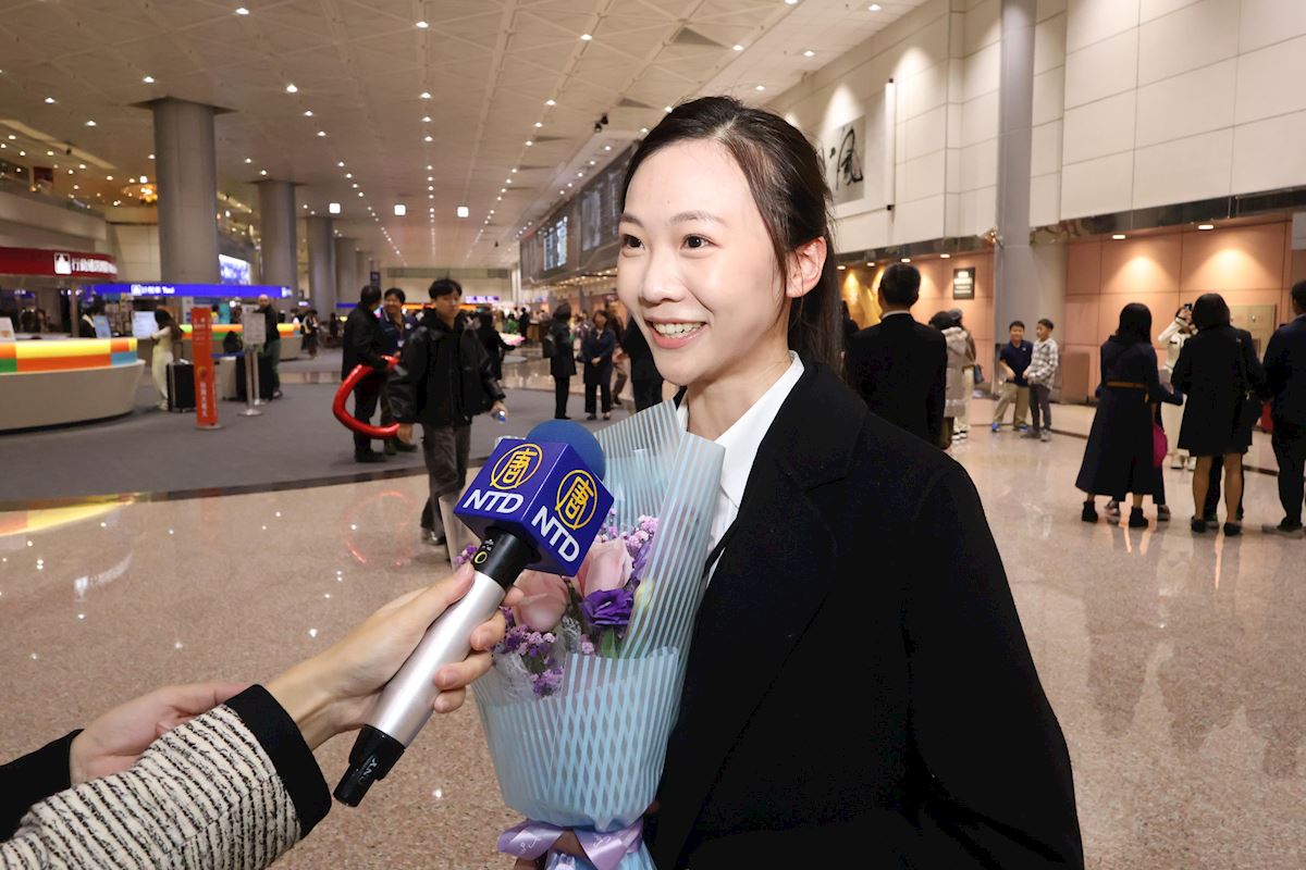 ![]() 图6:美国神韵艺术团十二月二十八日傍晚抵达桃园国际机场,主持人唐韵接受采访表示,神韵展现的是没有共产党的中华文化。 |