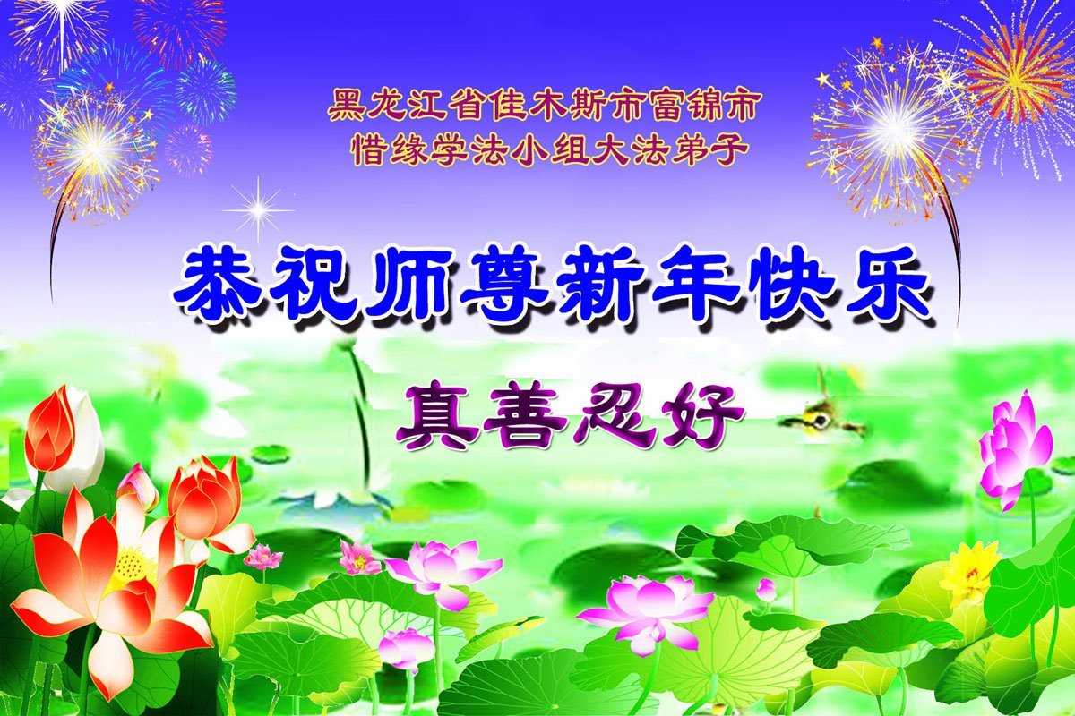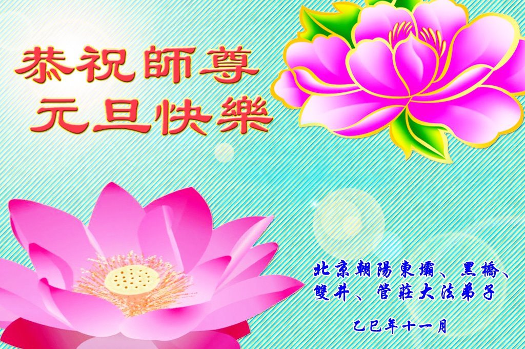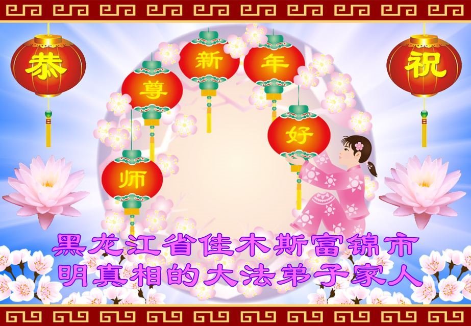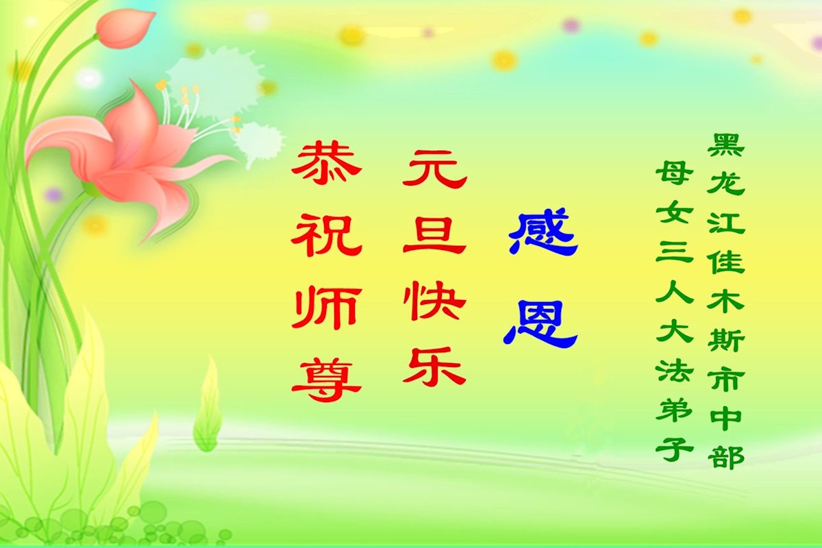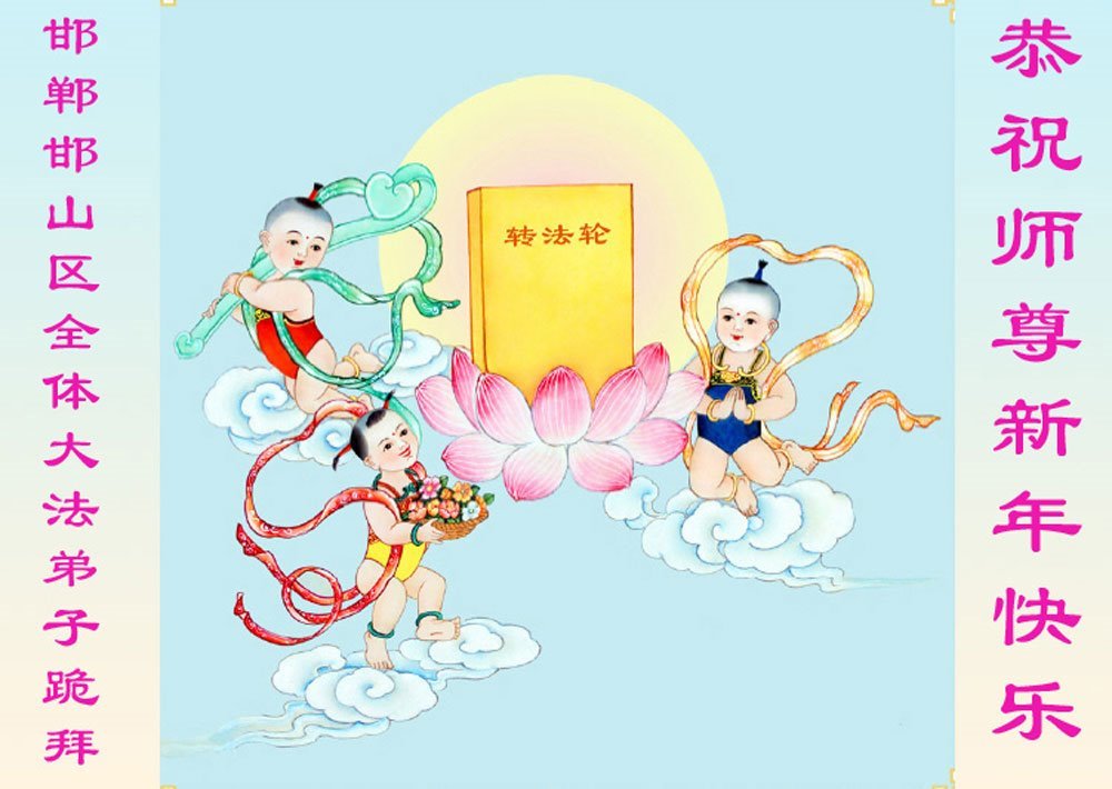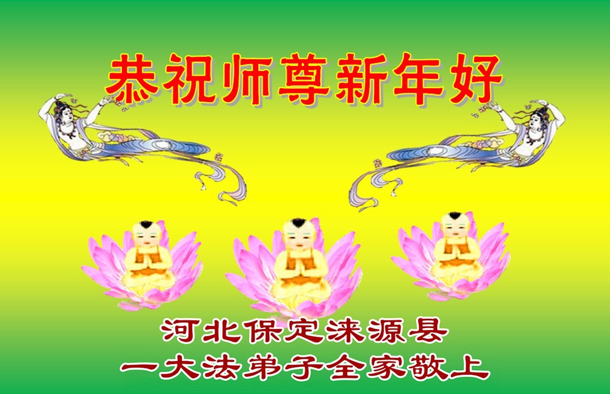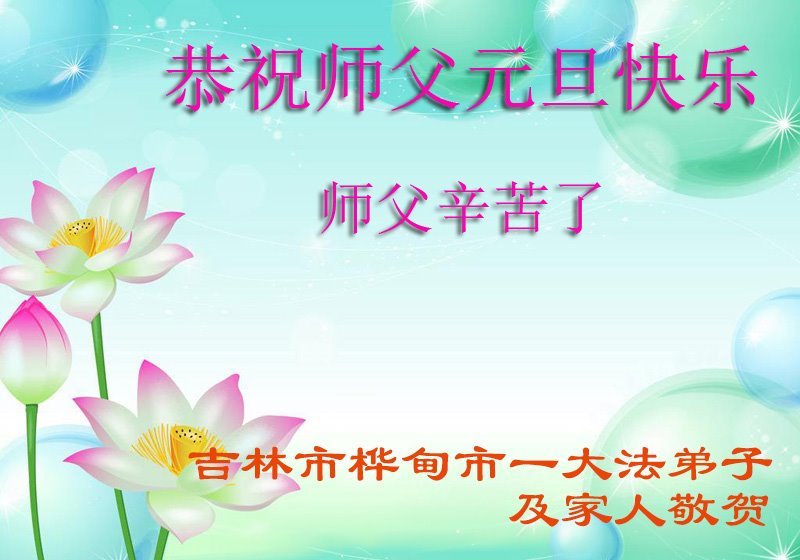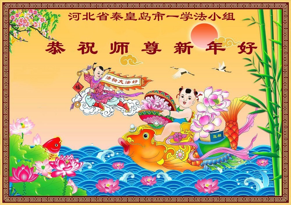 以下是部份来自中国各省、市、地区的学法炼功小组、讲真相小组、资料点大法弟子们敬致师尊的新年贺词贺卡: