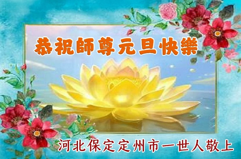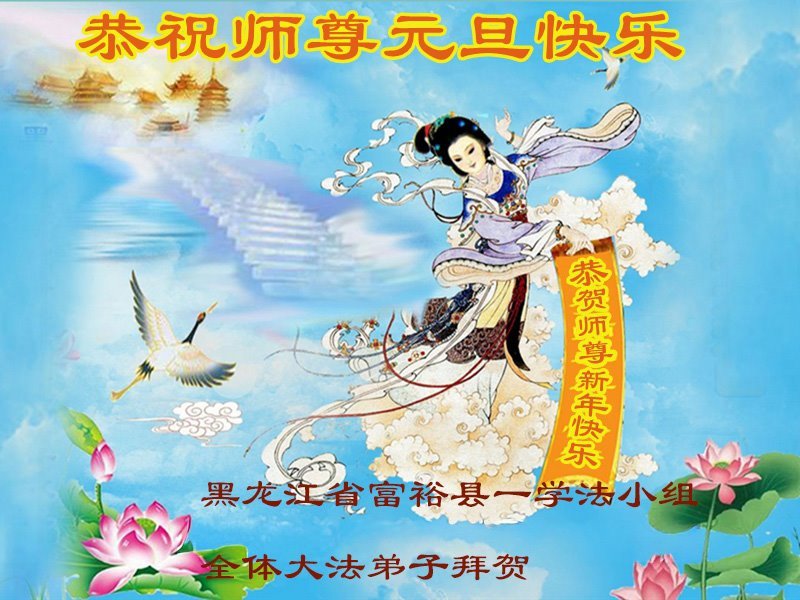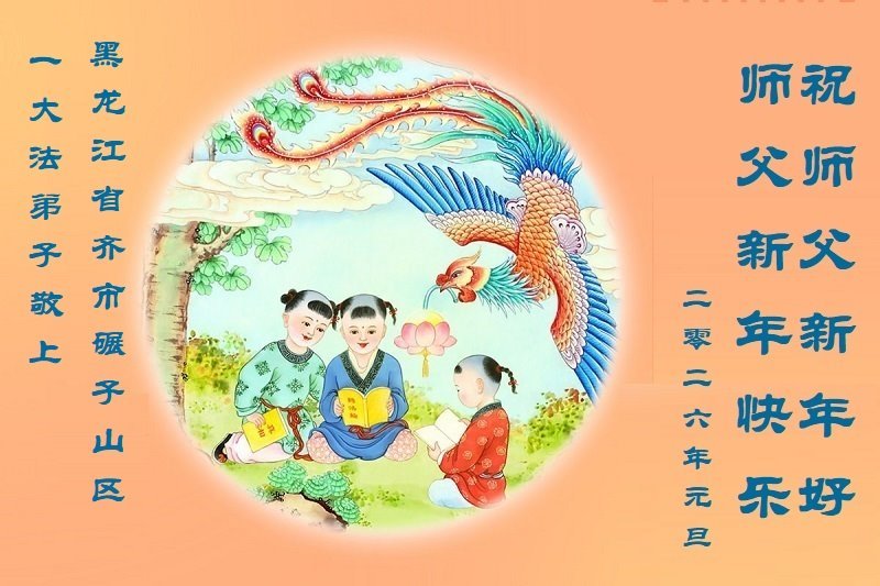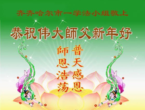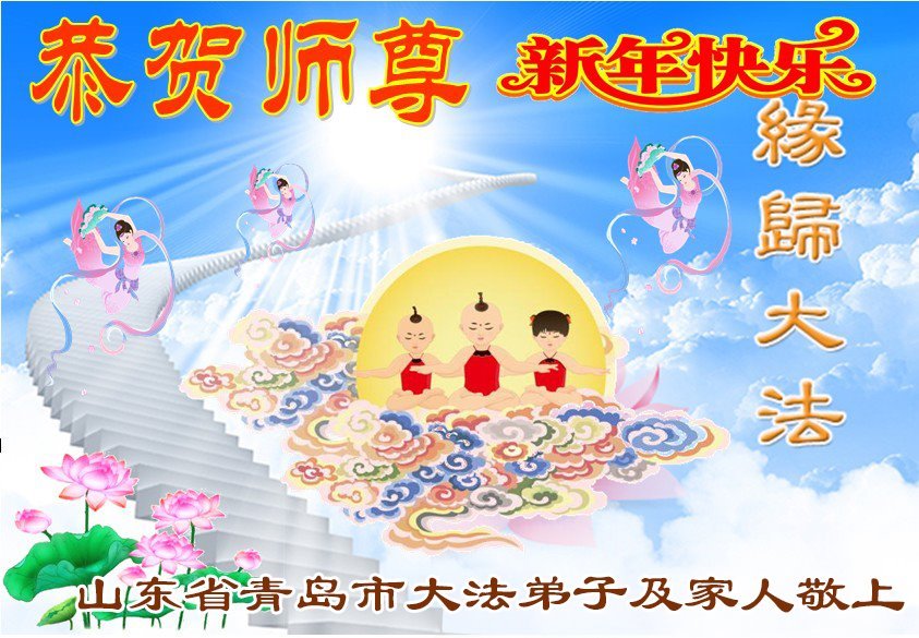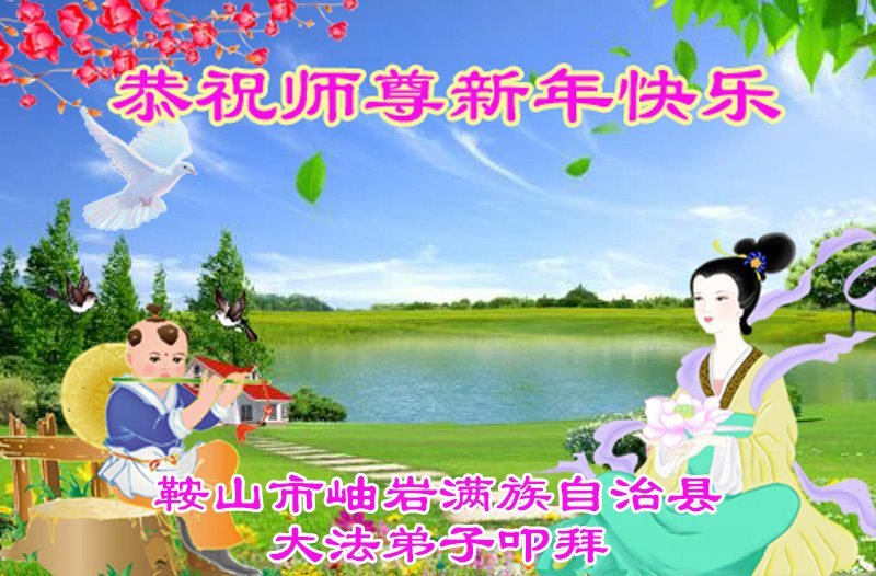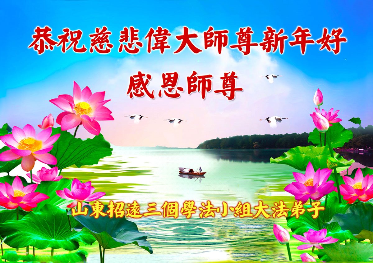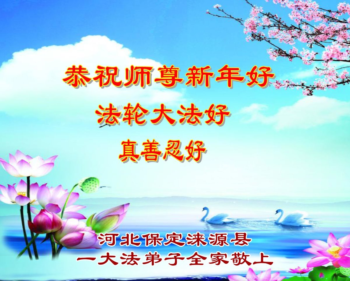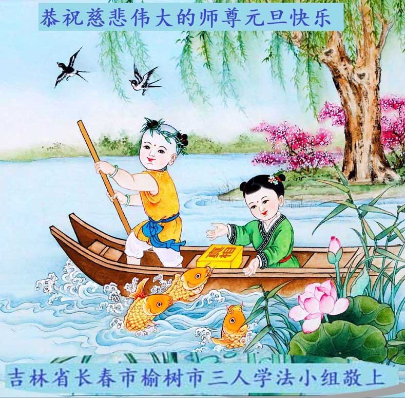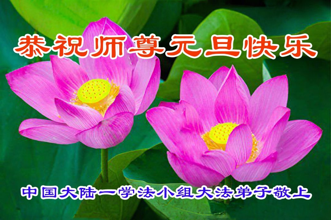 以下是部份来自中国各省、市、地区的学法炼功小组、讲真相小组、资料点大法弟子们敬致师尊的新年贺词贺卡: