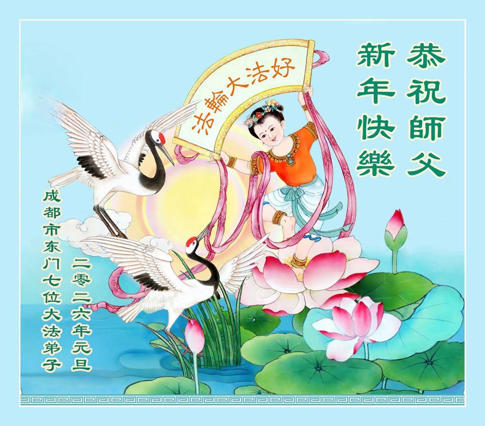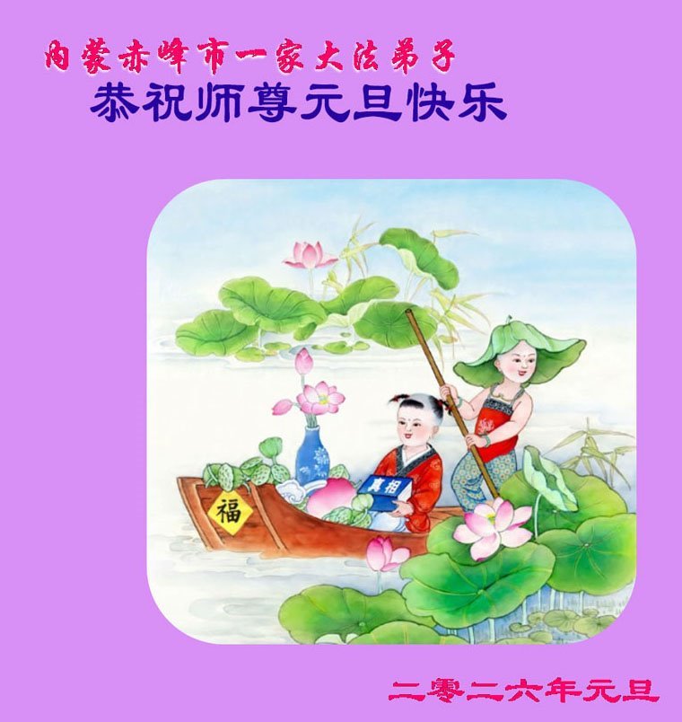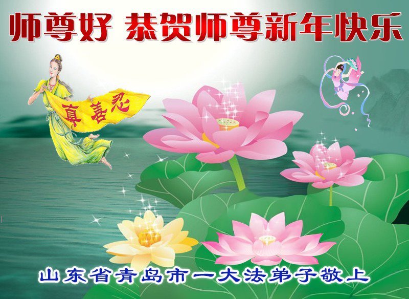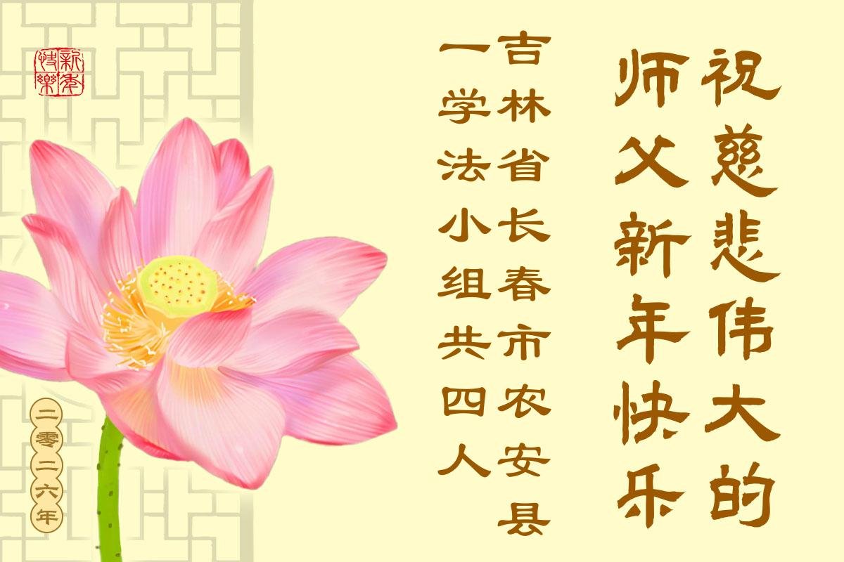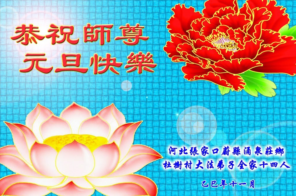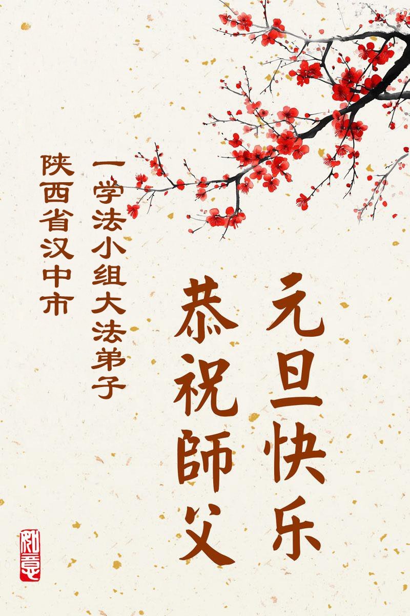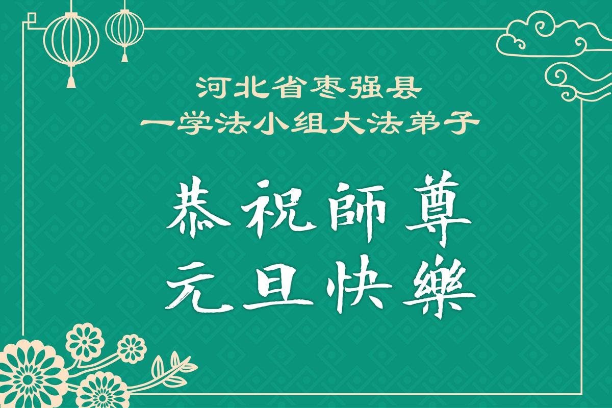 以下是部份来自中国各省、市、地区的学法炼功小组、讲真相小组、资料点大法弟子们敬致师尊的新年贺词贺卡: