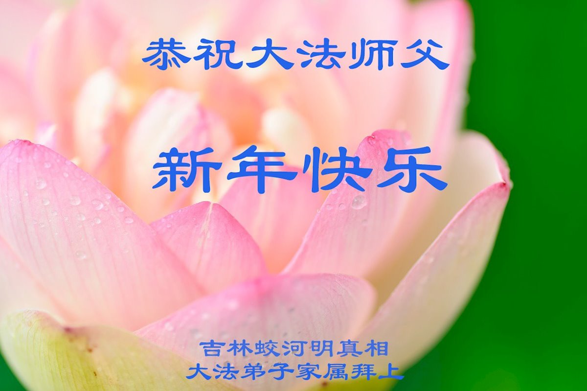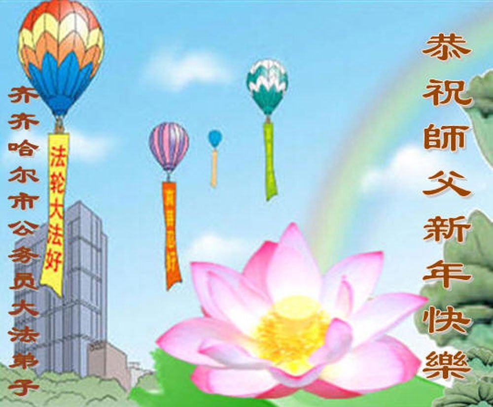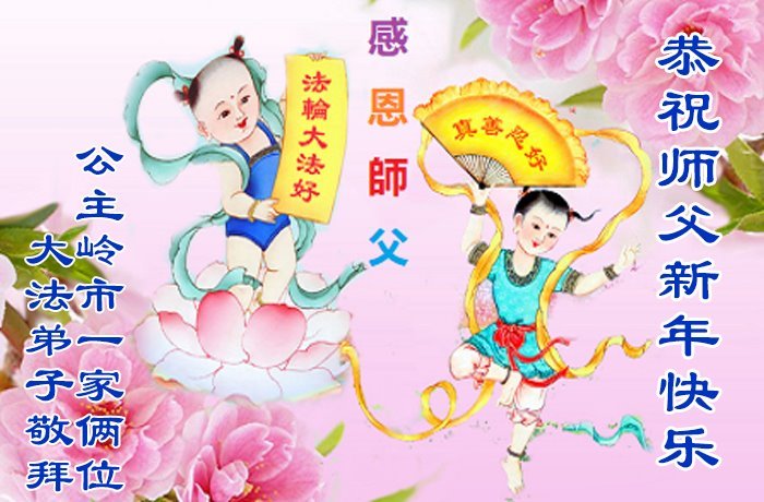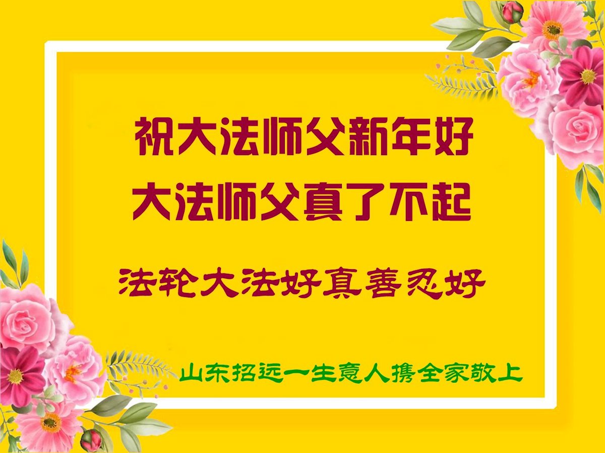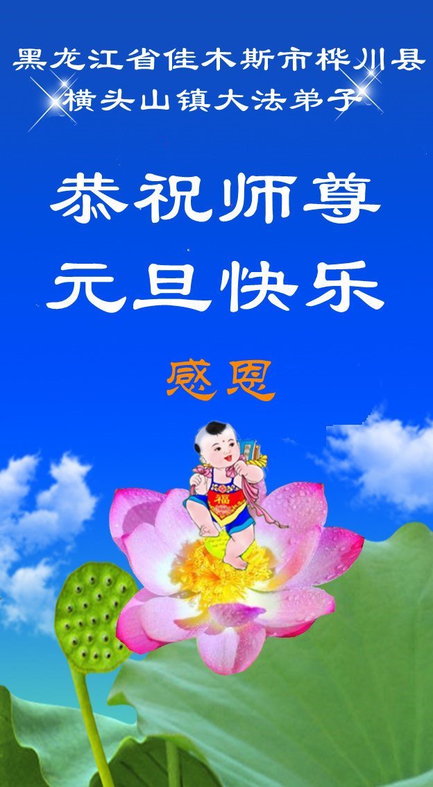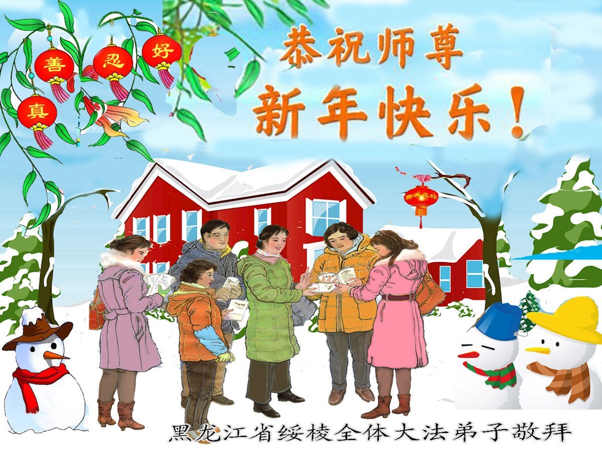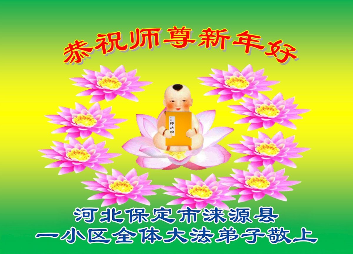 以下是部份来自中国各省、市、地区的学法炼功小组、讲真相小组、资料点大法弟子们敬致师尊的新年贺词贺卡: