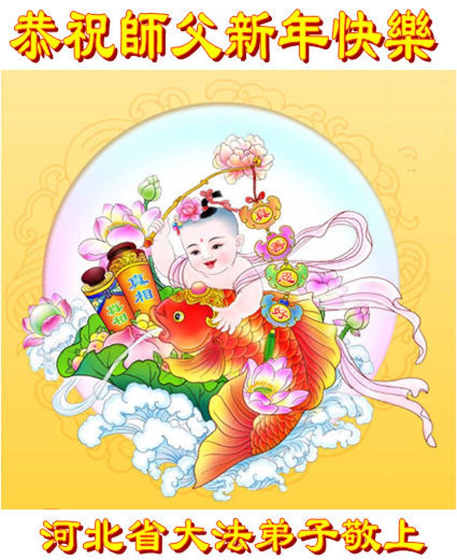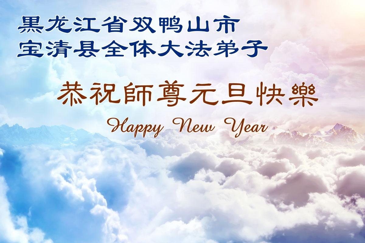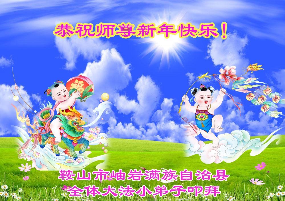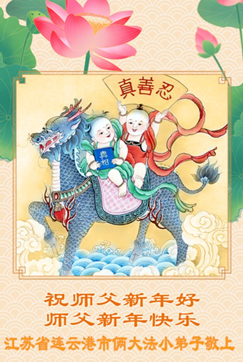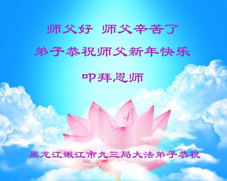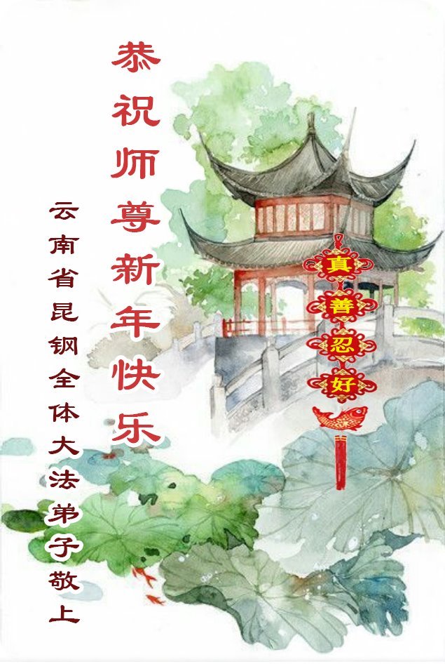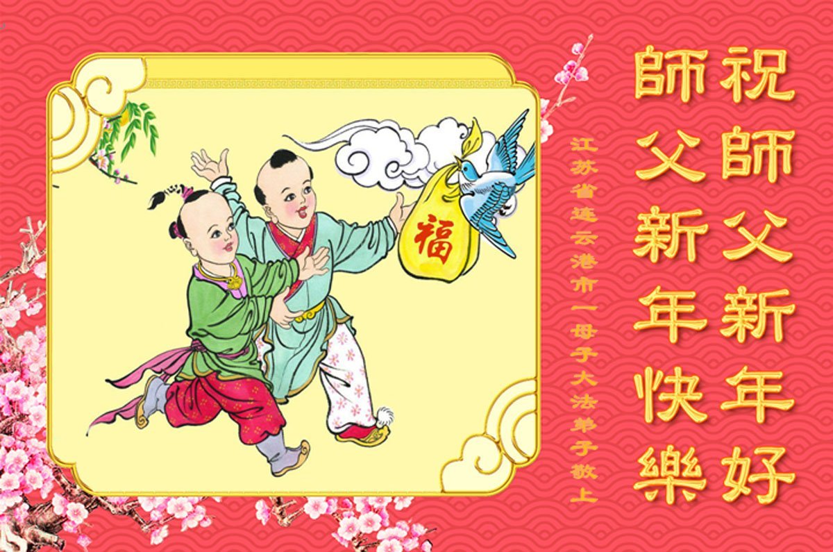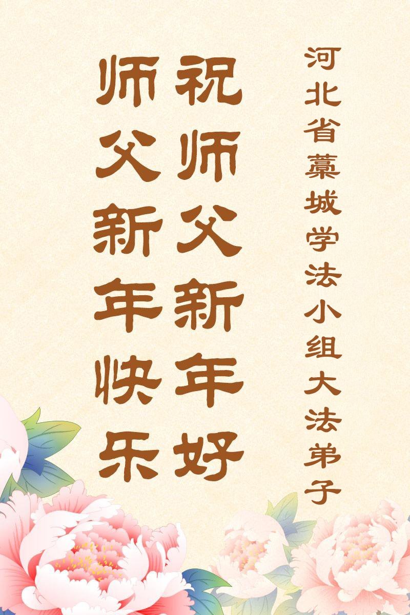 以下是部份来自中国各省、市、地区的学法炼功小组、讲真相小组、资料点大法弟子们敬致师尊的新年贺词贺卡: