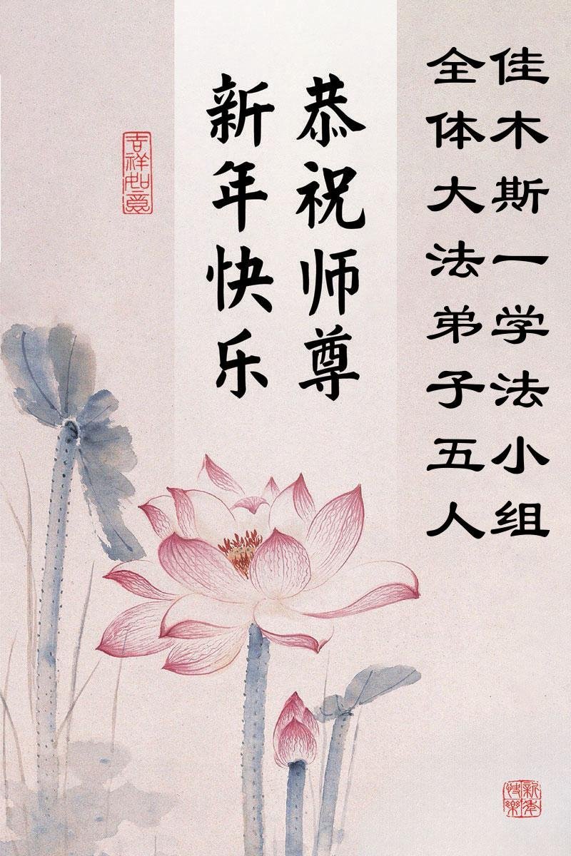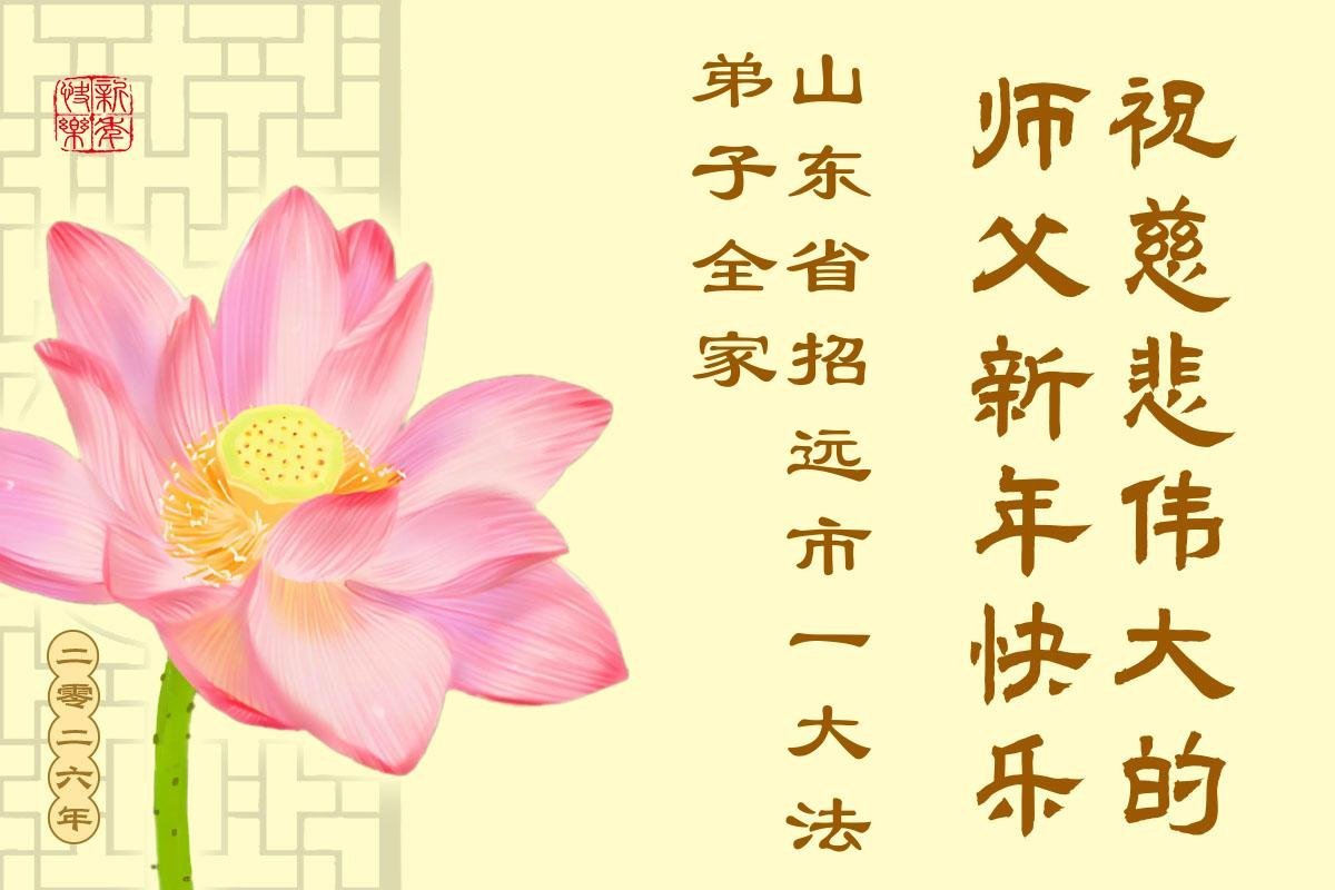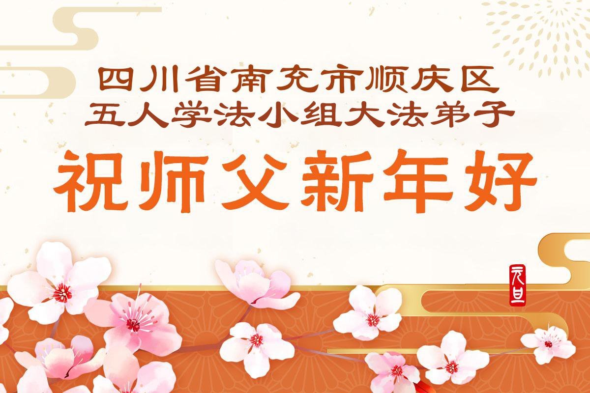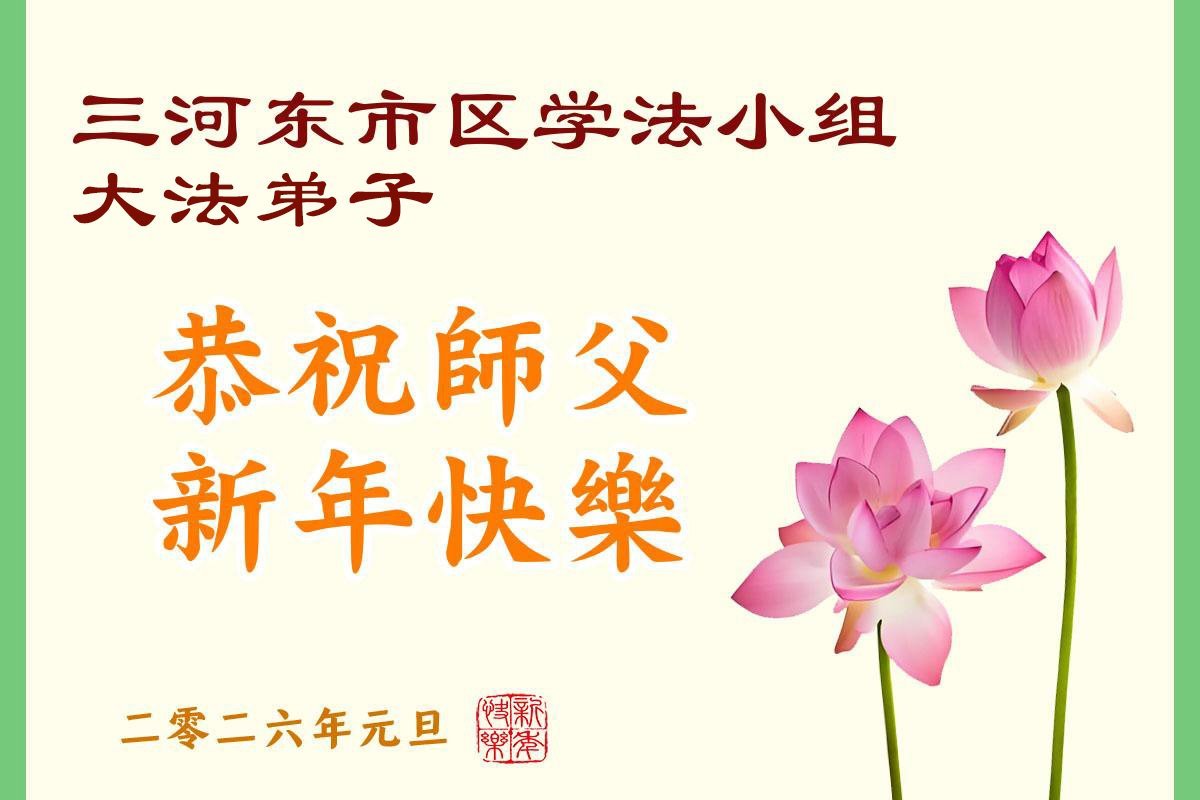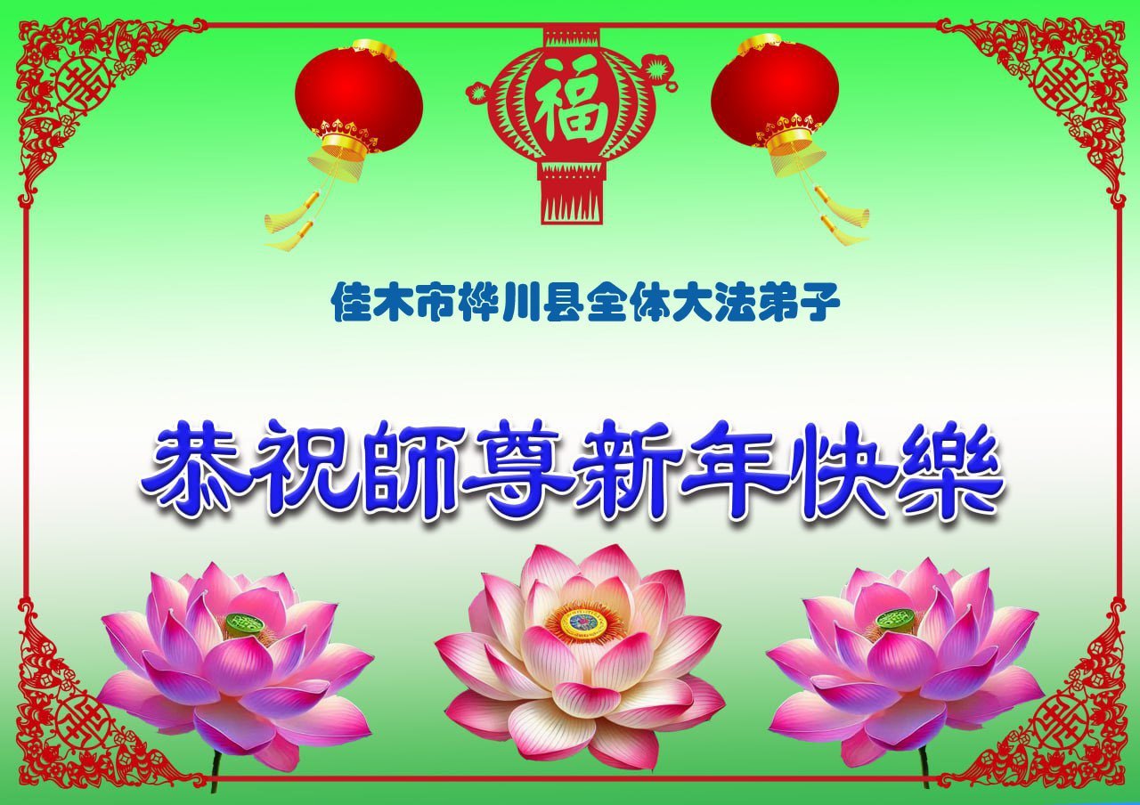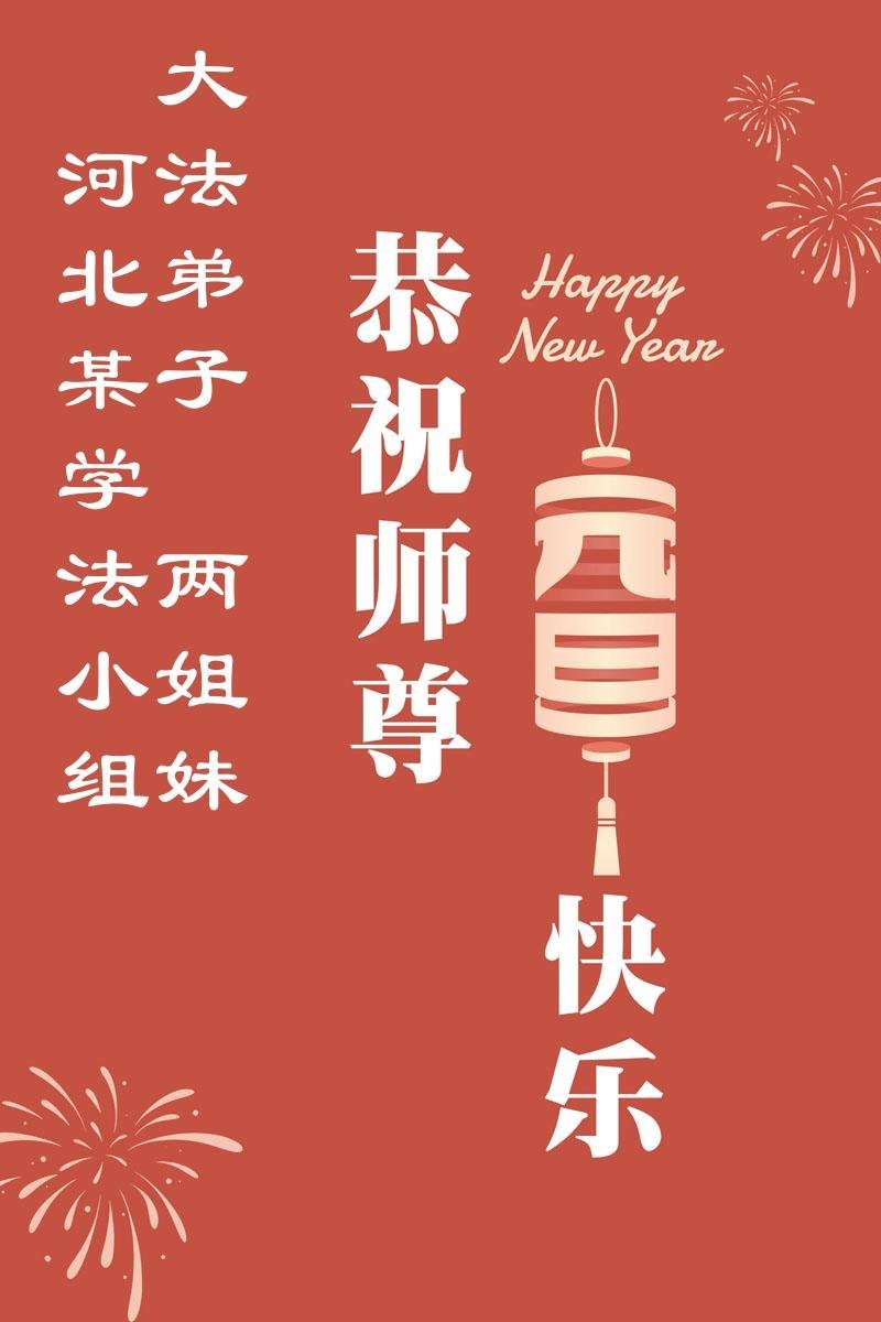 以下是部份来自中国各省、市、地区的学法炼功小组、讲真相小组、资料点大法弟子们敬致师尊的新年贺词贺卡: