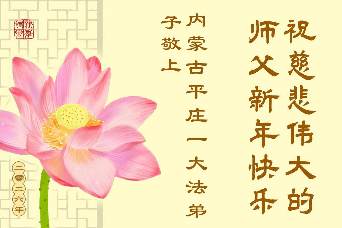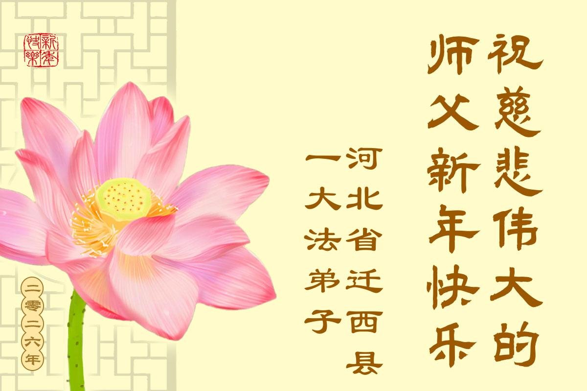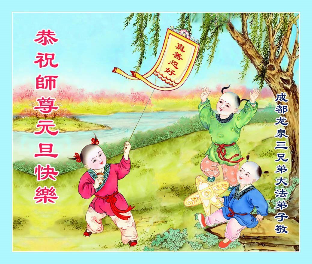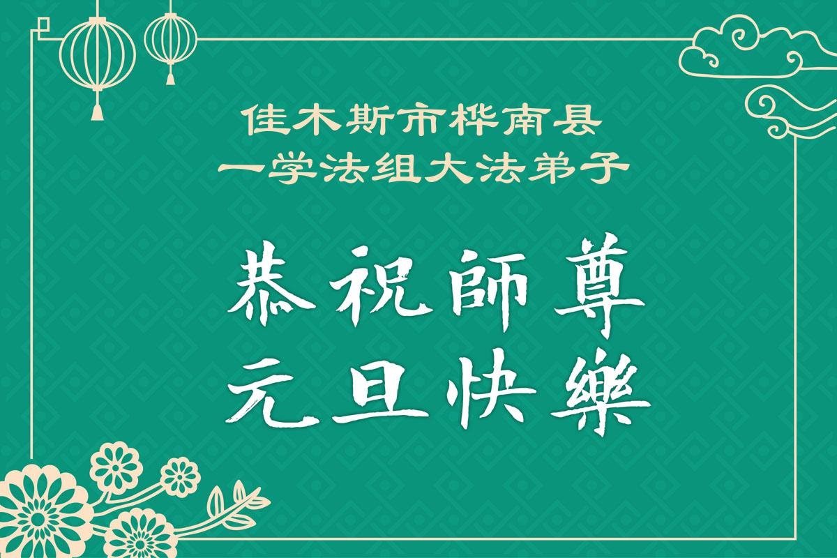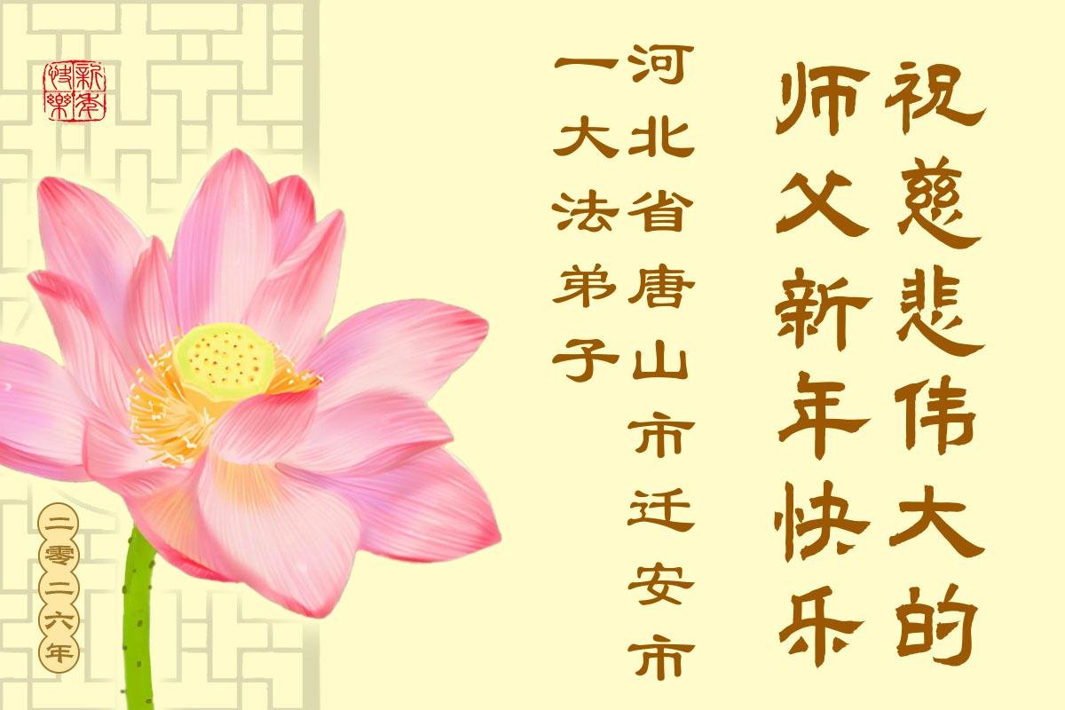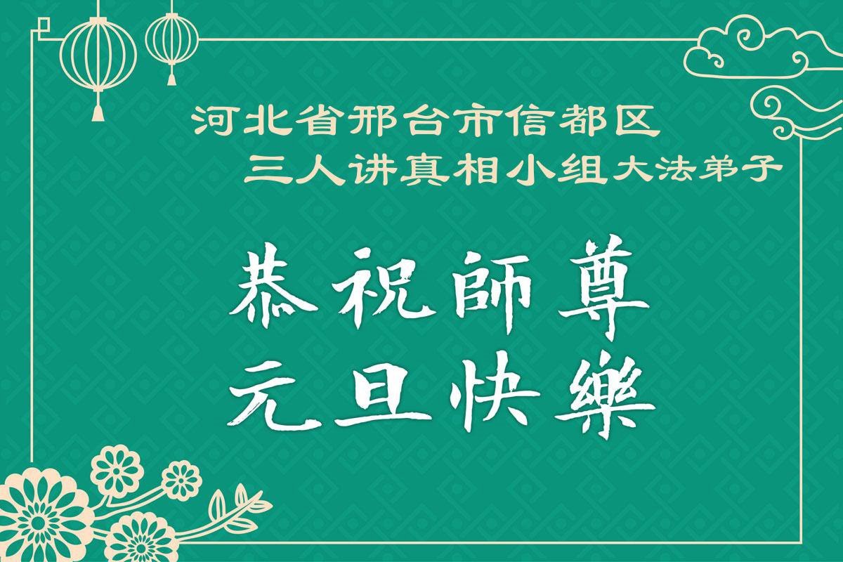 以下是部份来自中国各省、市、地区的学法炼功小组、讲真相小组、资料点大法弟子们敬致师尊的新年贺词贺卡: