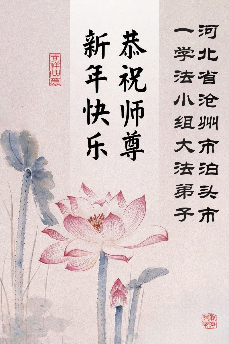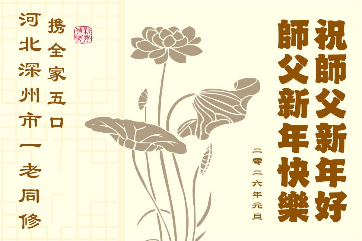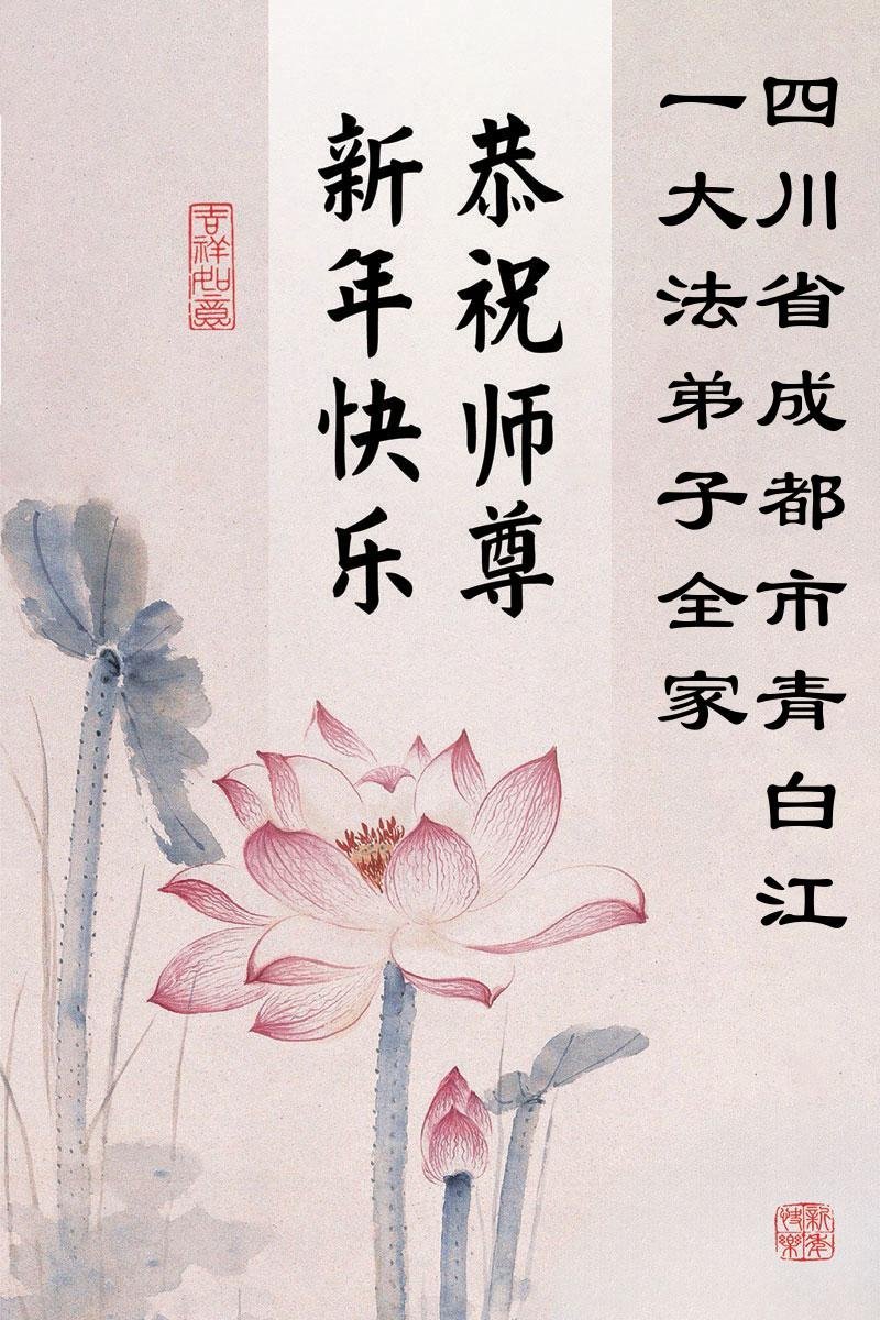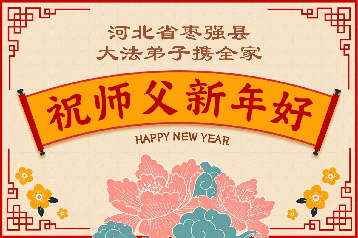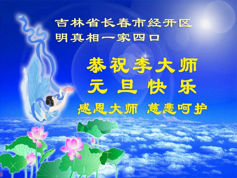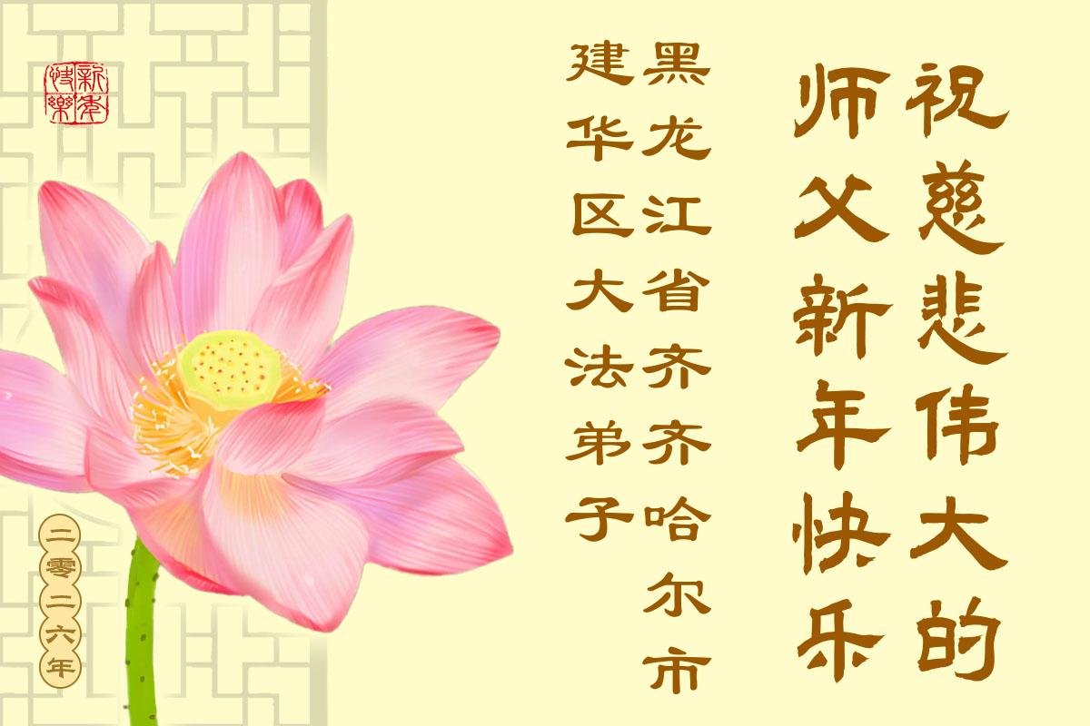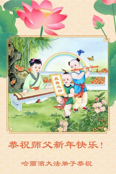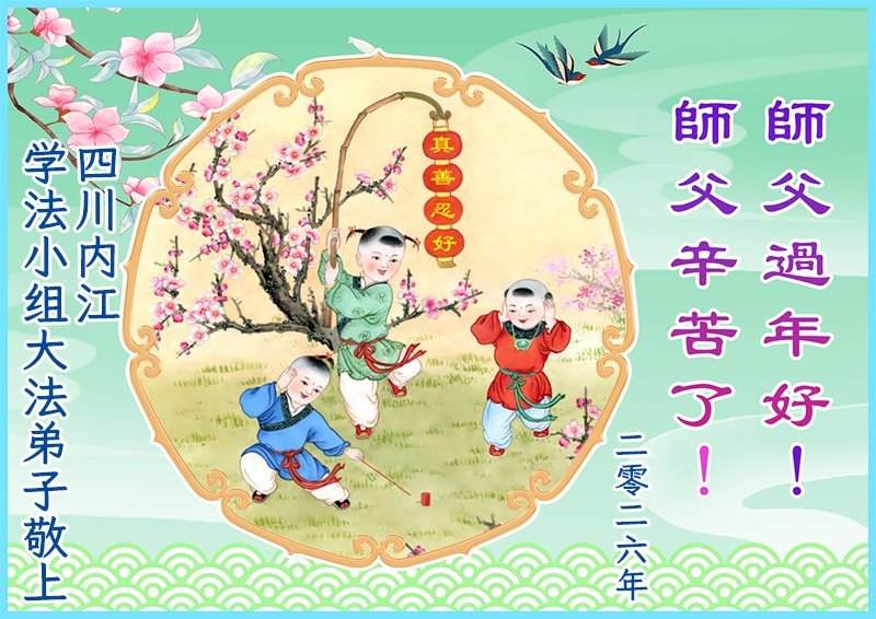 以下是部份来自中国各省、市、地区的学法炼功小组、讲真相小组、资料点大法弟子们敬致师尊的新年贺词贺卡: