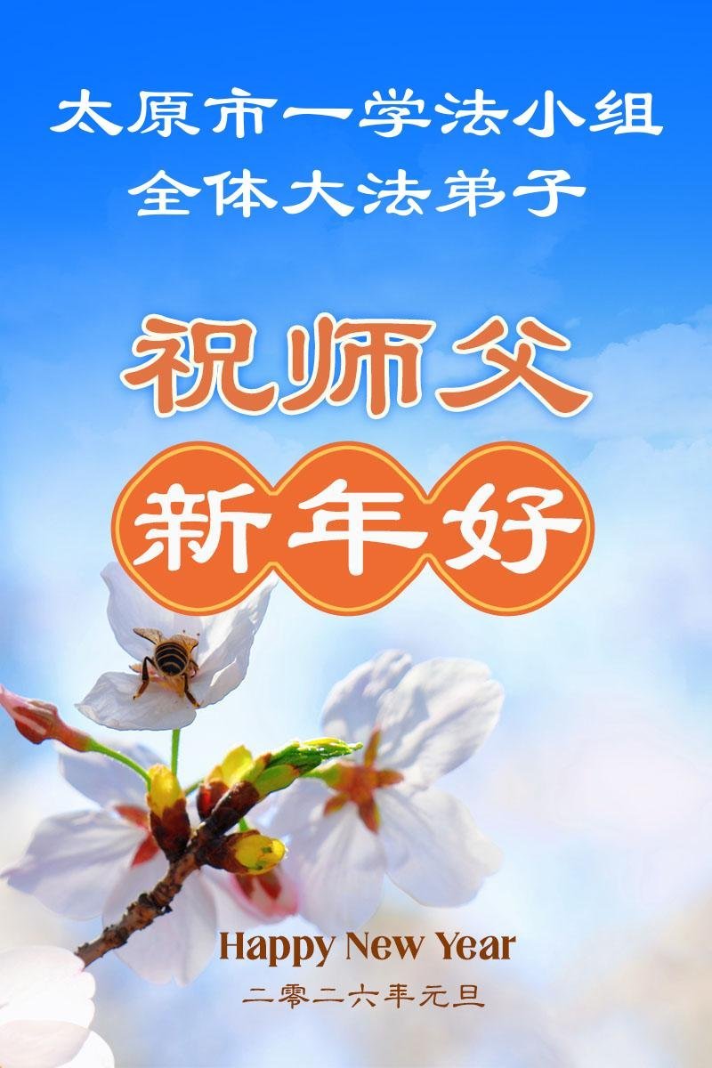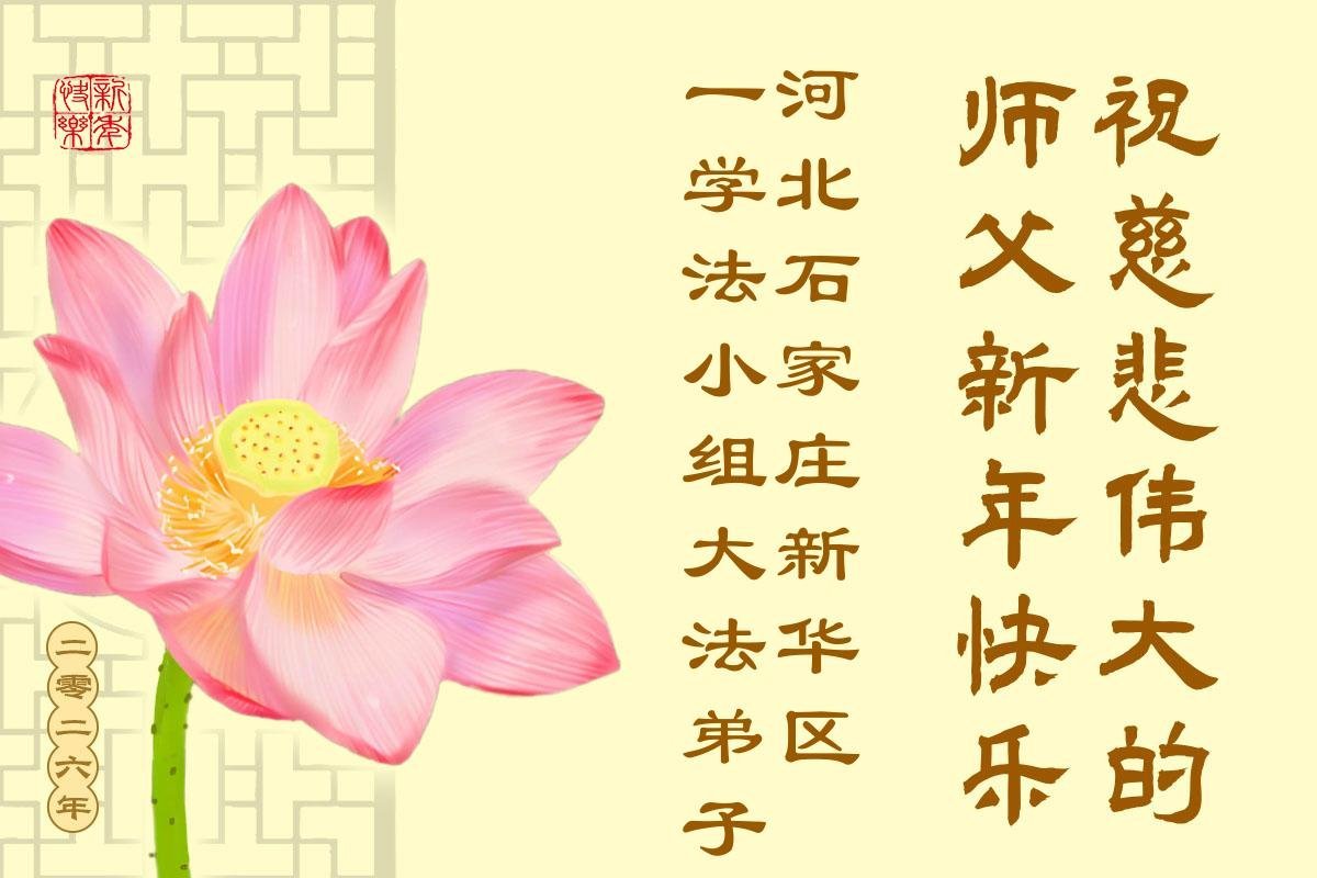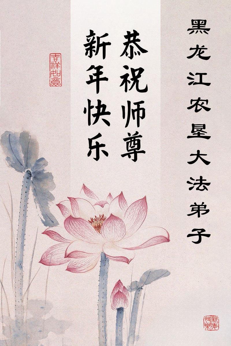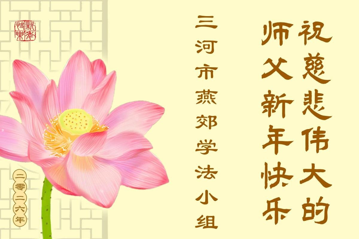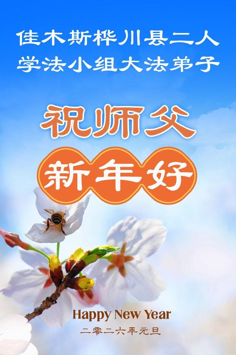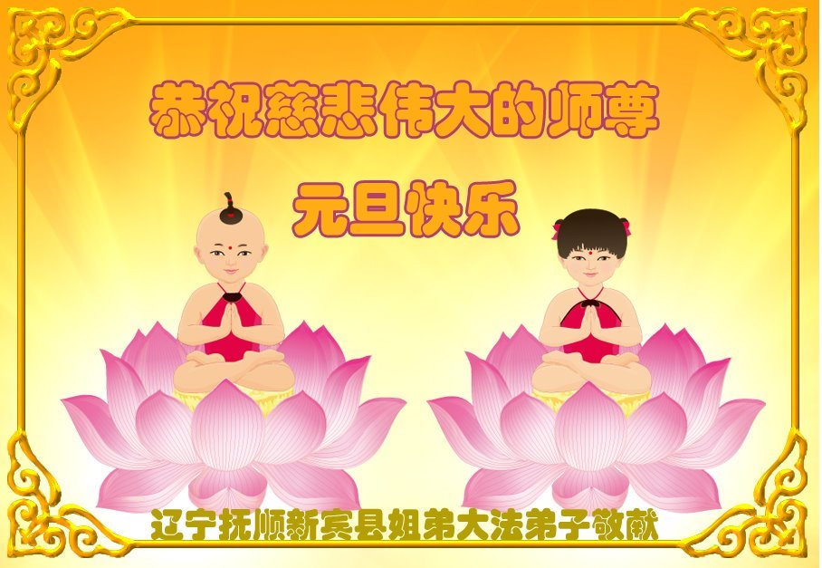 以下是部份来自中国各省、市、地区的学法炼功小组、讲真相小组、资料点大法弟子们敬致师尊的新年贺词贺卡: