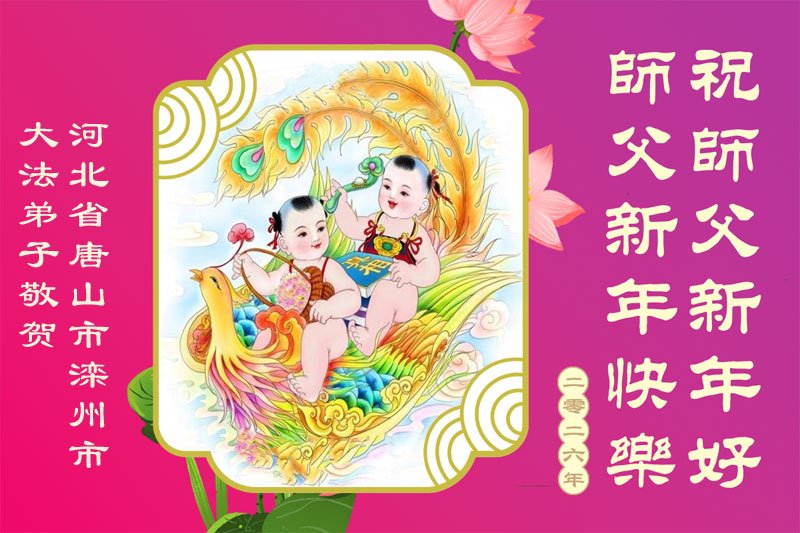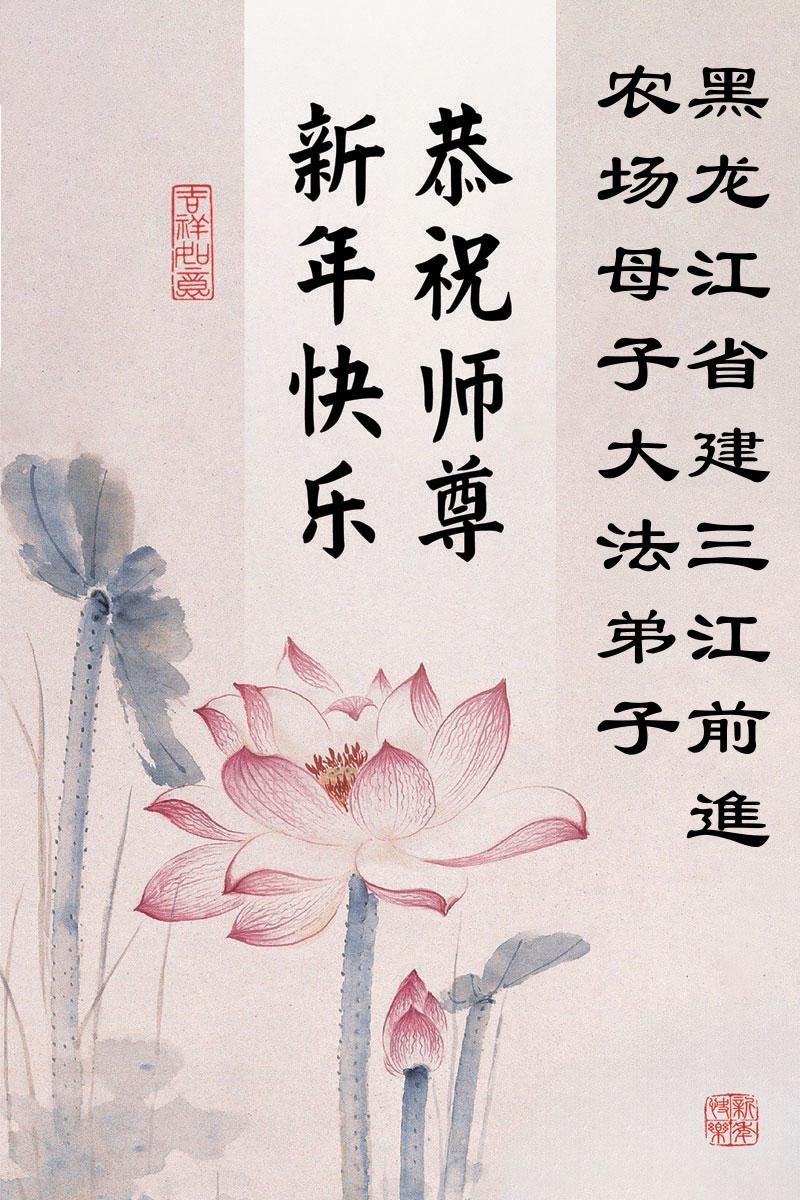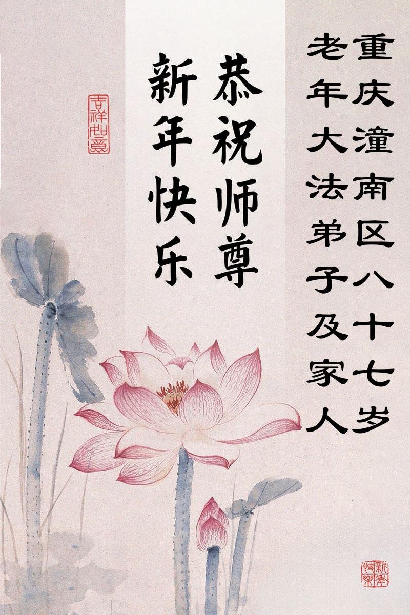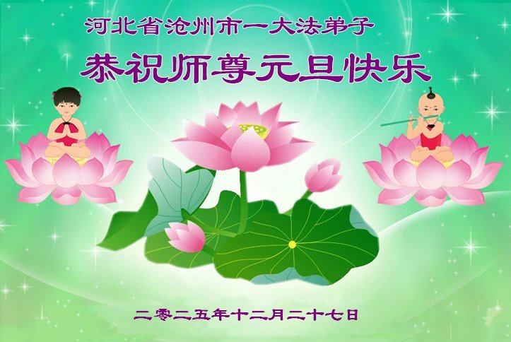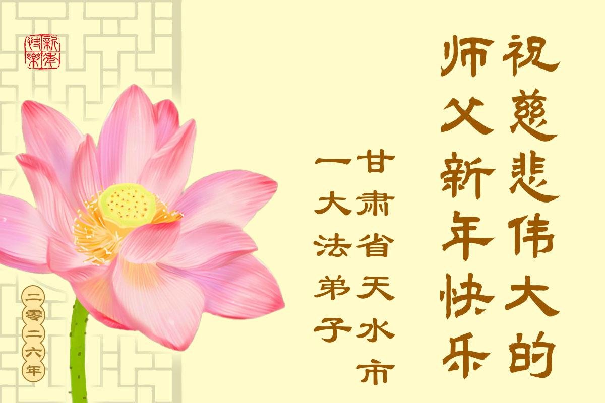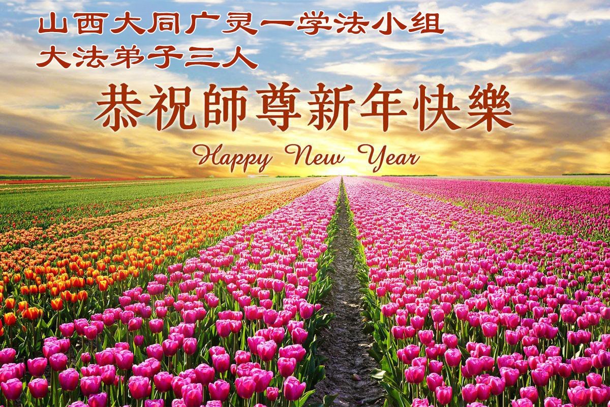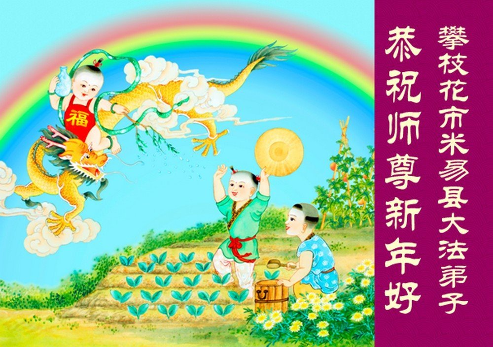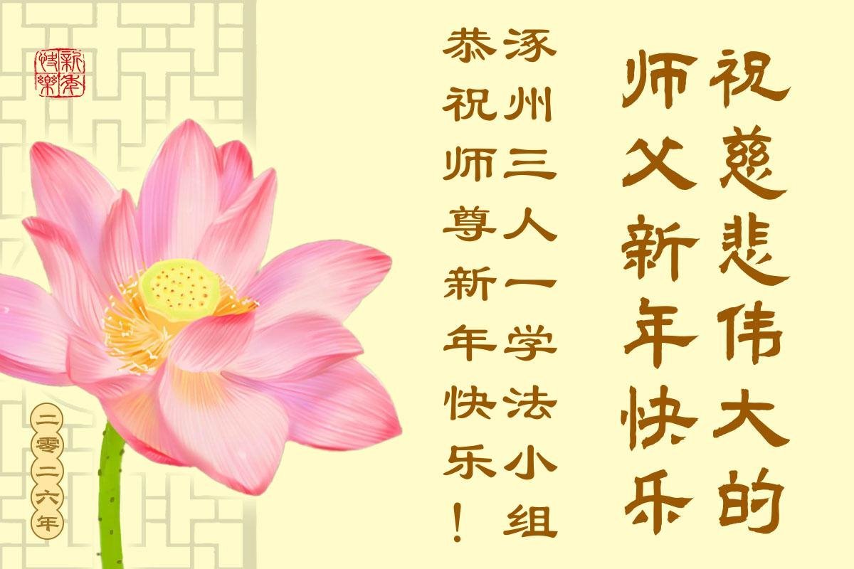 以下是部份来自中国各省、市、地区的学法炼功小组、讲真相小组、资料点大法弟子们敬致师尊的新年贺词贺卡: