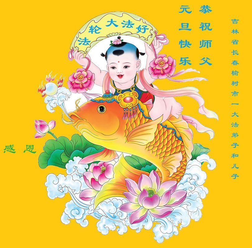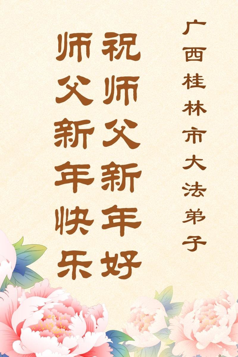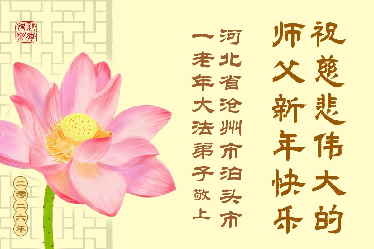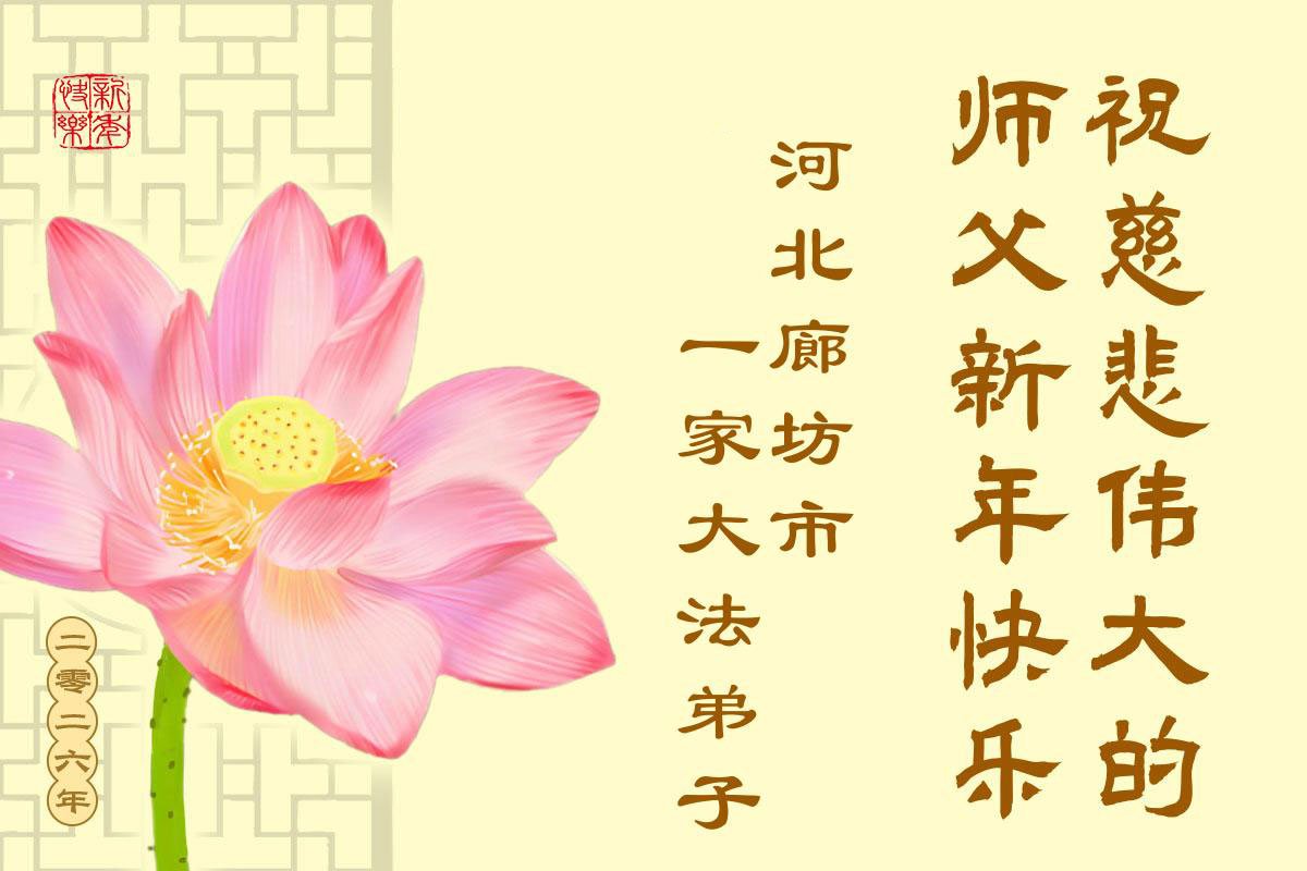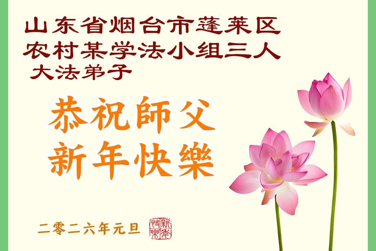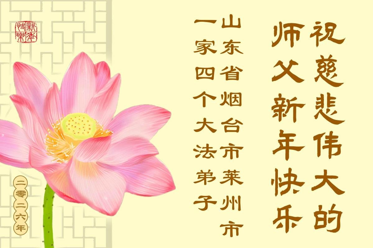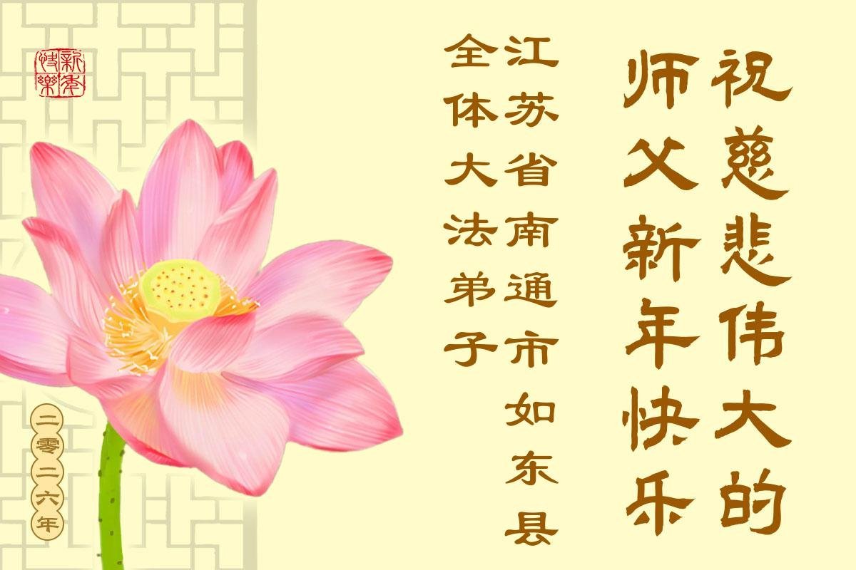 以下是部份来自中国各省、市、地区的学法炼功小组、讲真相小组、资料点大法弟子们敬致师尊的新年贺词贺卡: