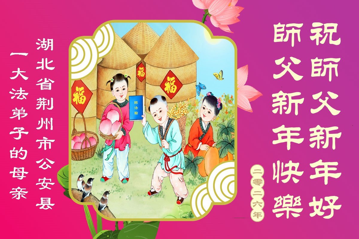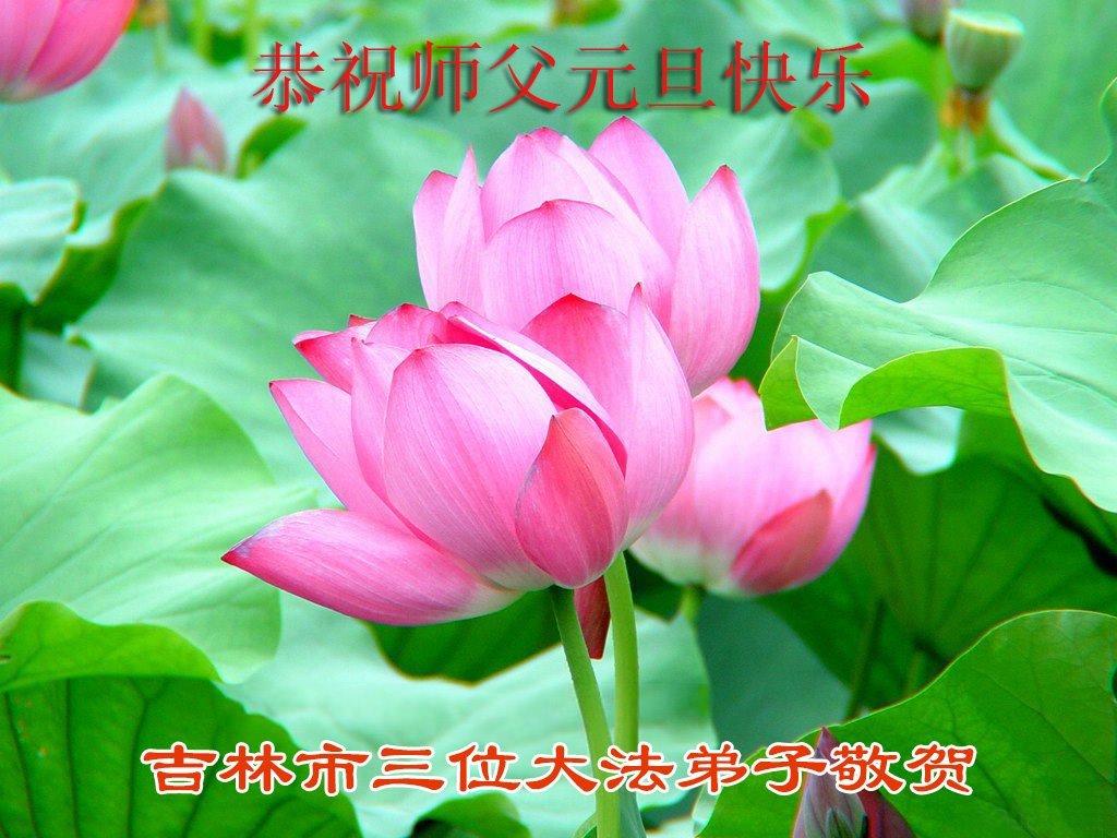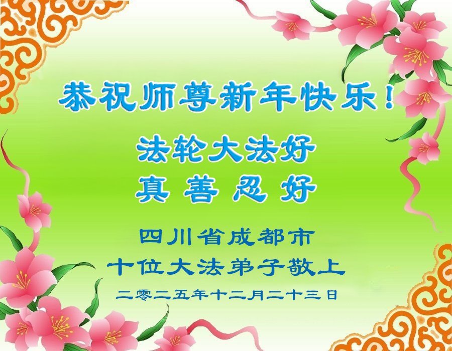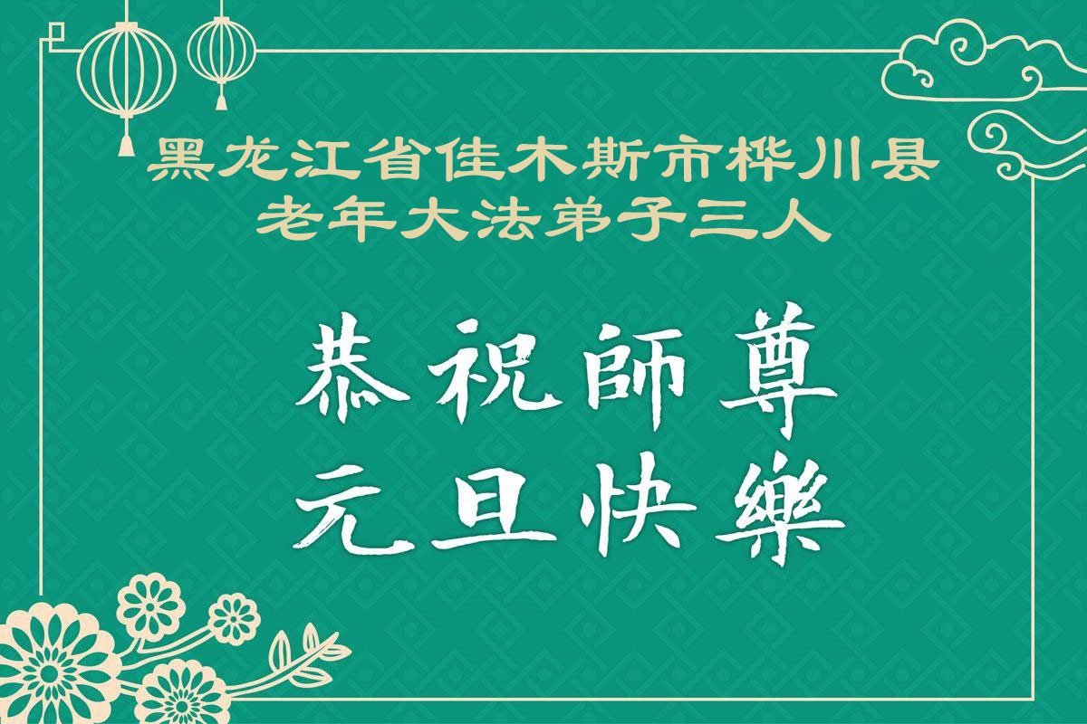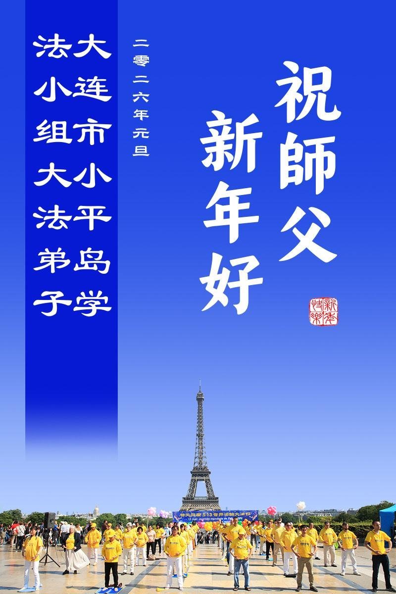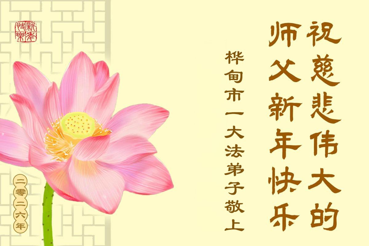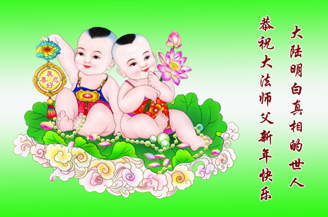 以下是部份来自中国各省、市、地区的学法炼功小组、讲真相小组、资料点大法弟子们敬致师尊的新年贺词贺卡: