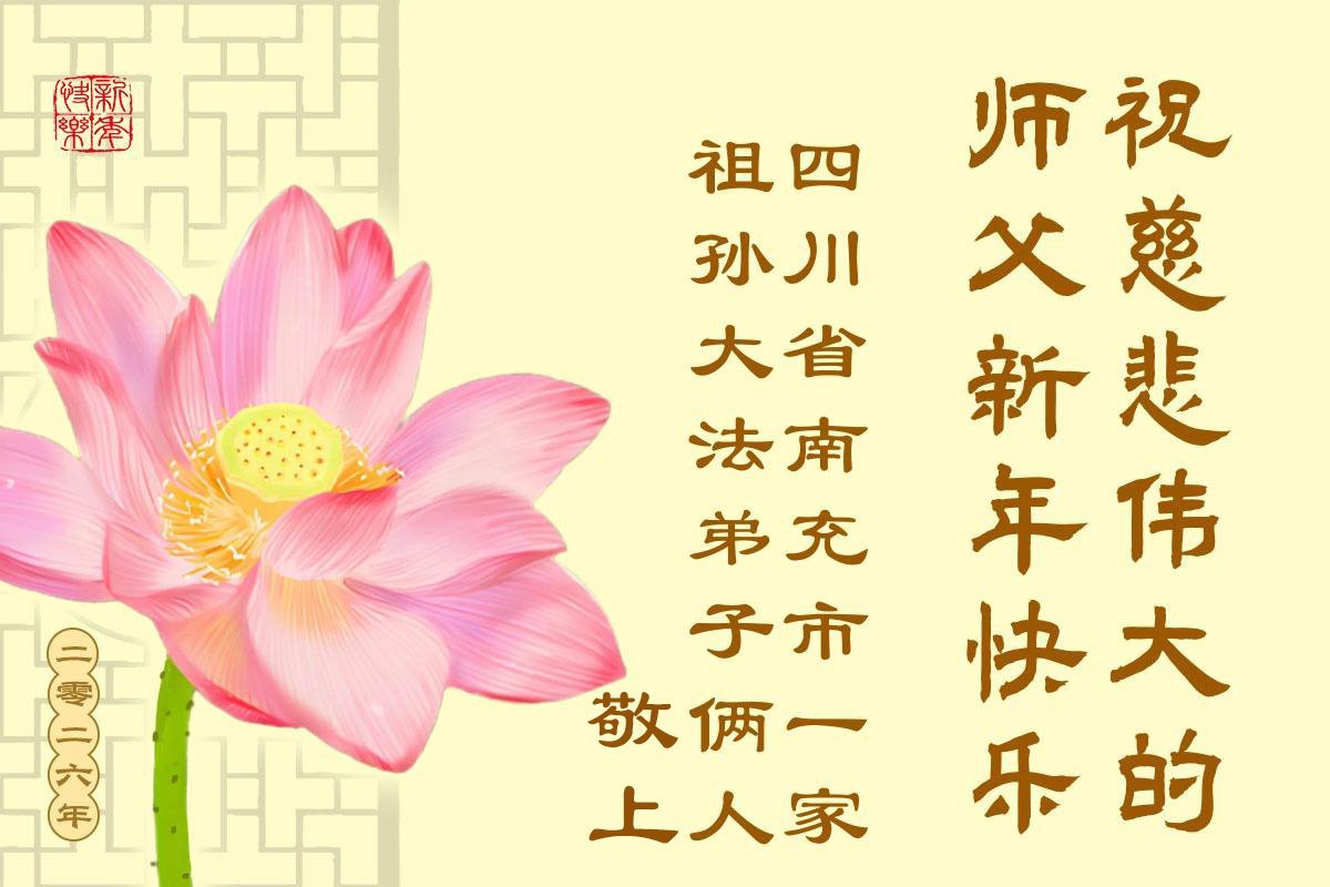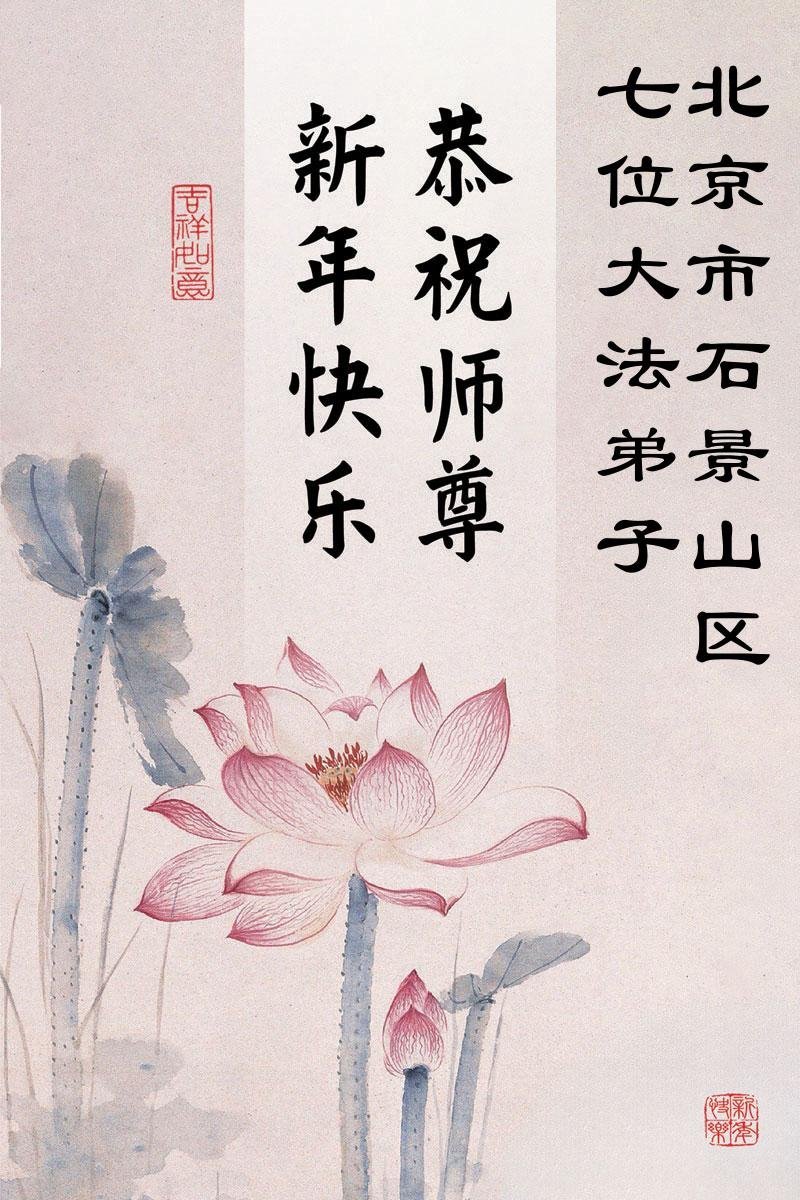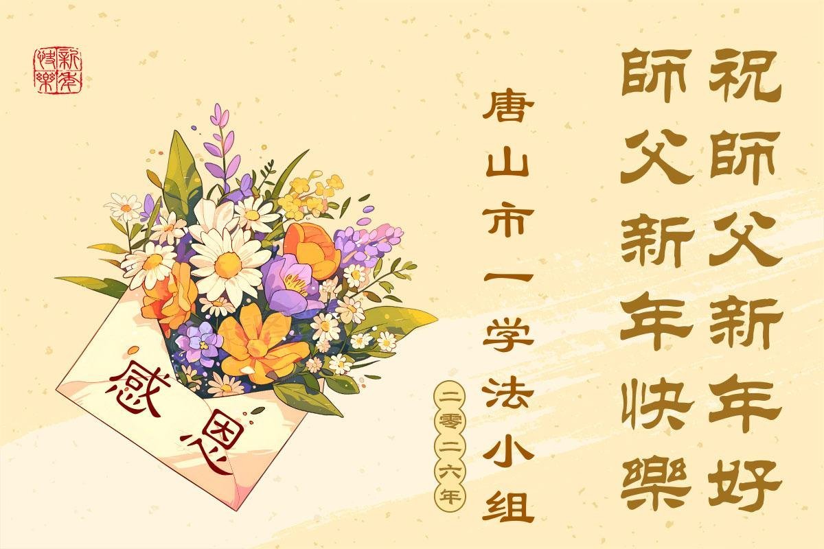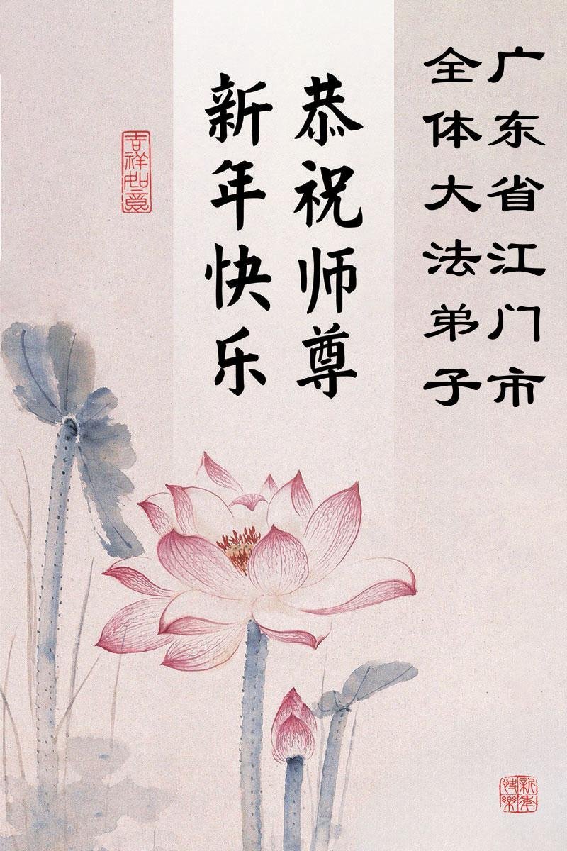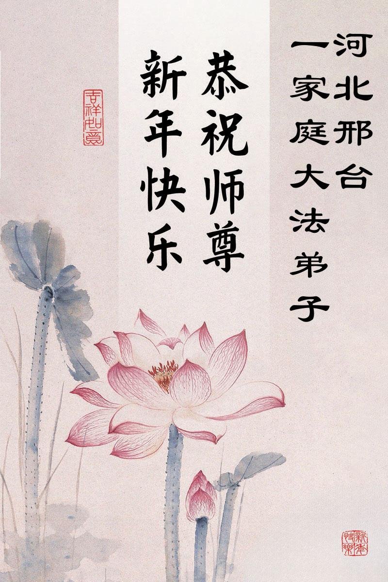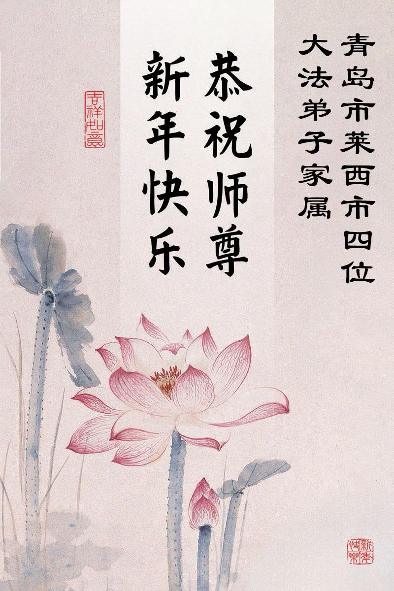 以下是部份来自中国各省、市、地区的学法炼功小组、讲真相小组、资料点大法弟子们敬致师尊的新年贺词贺卡: