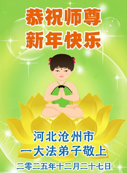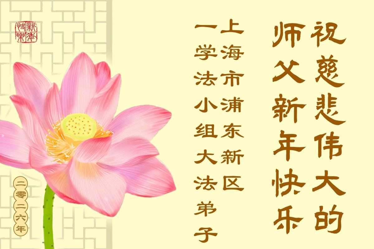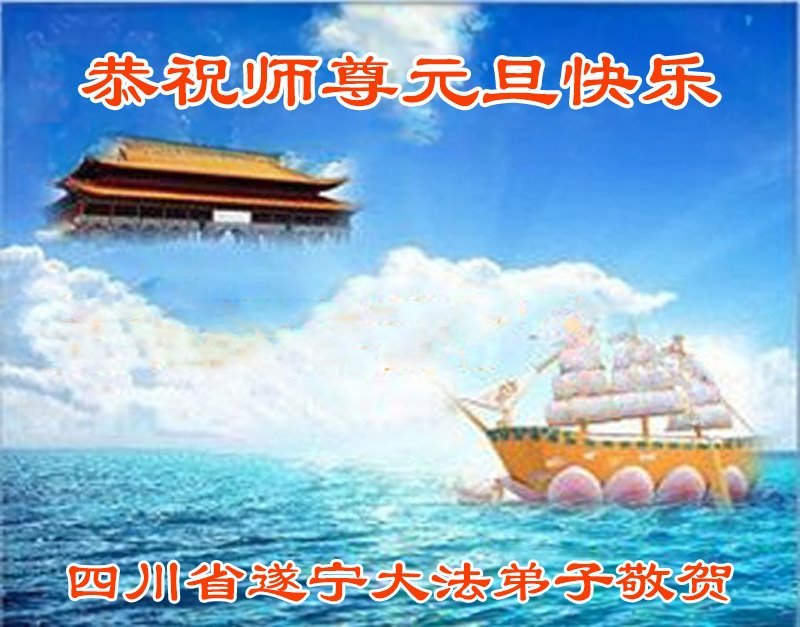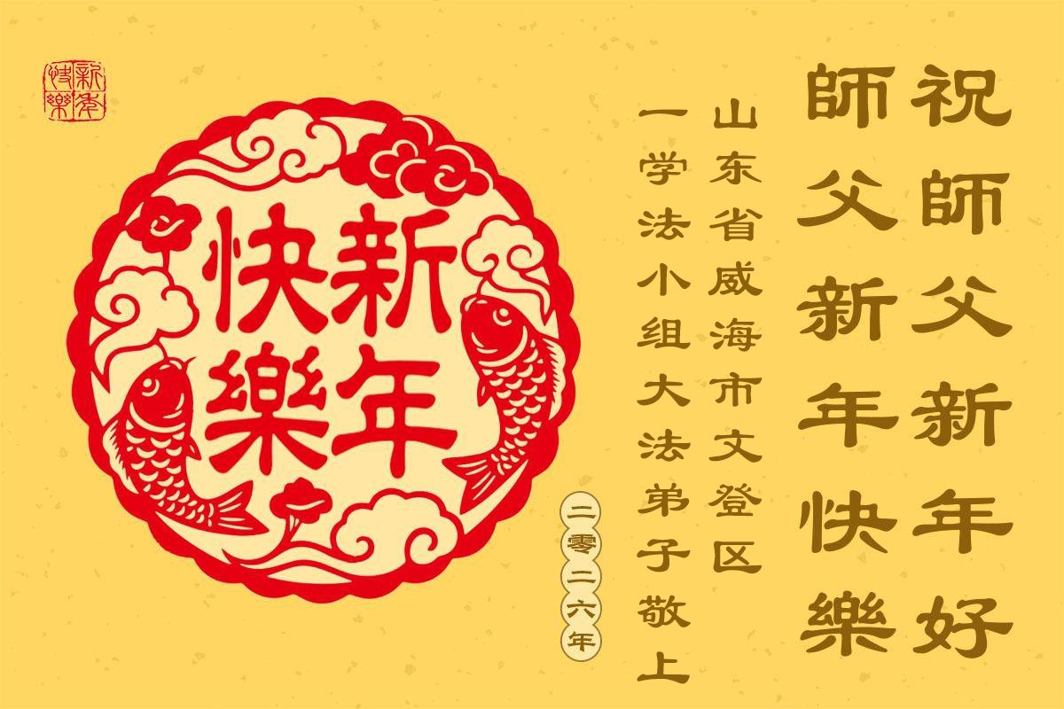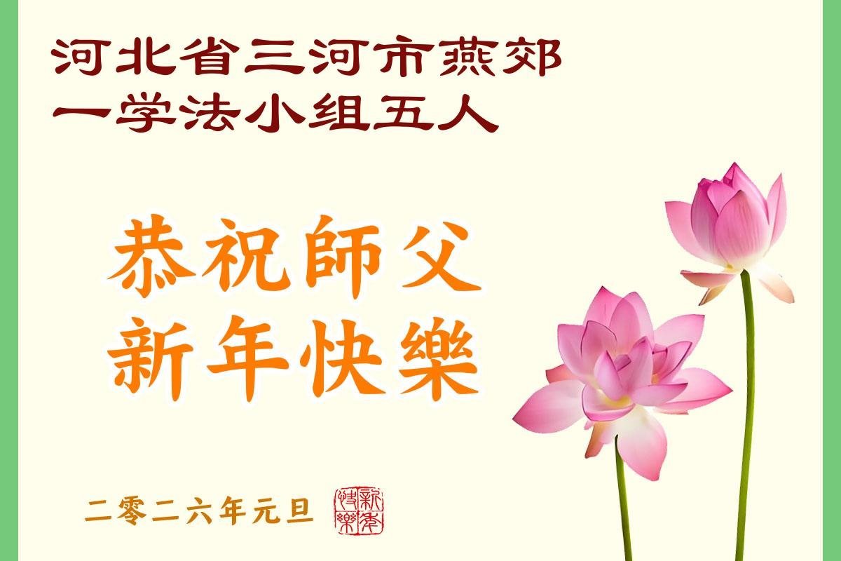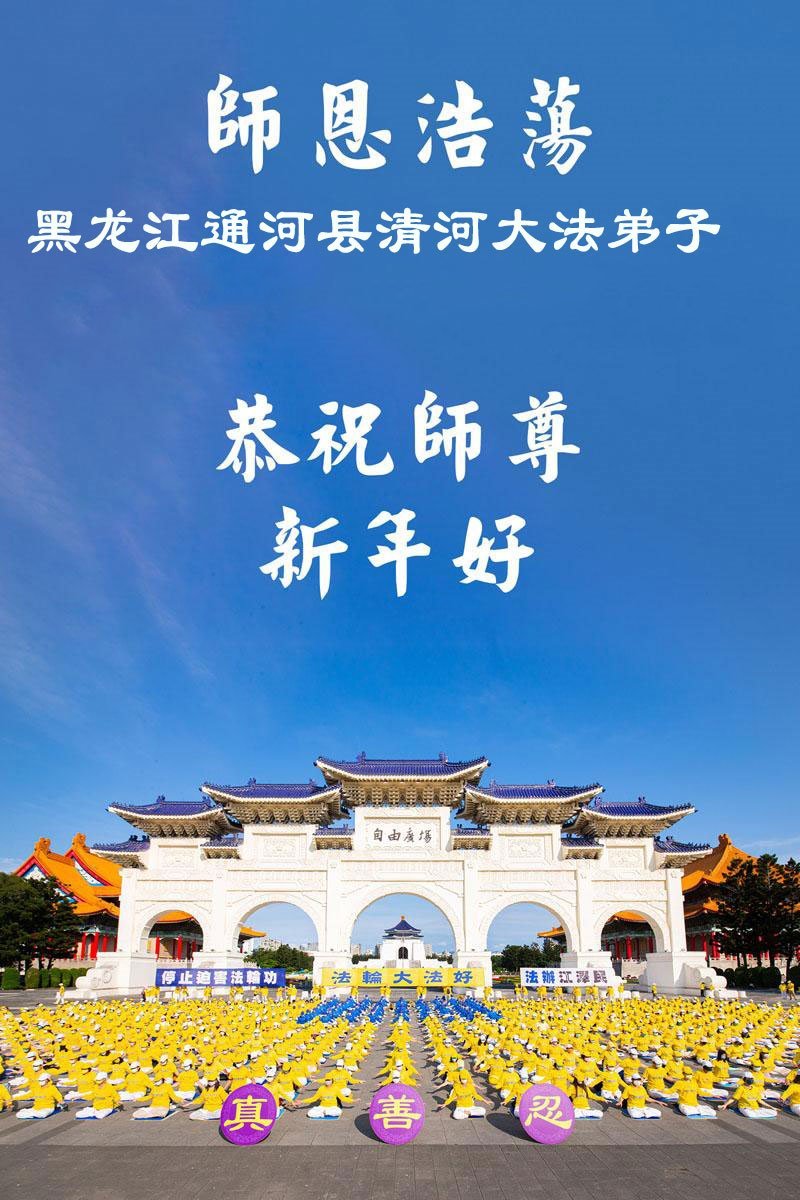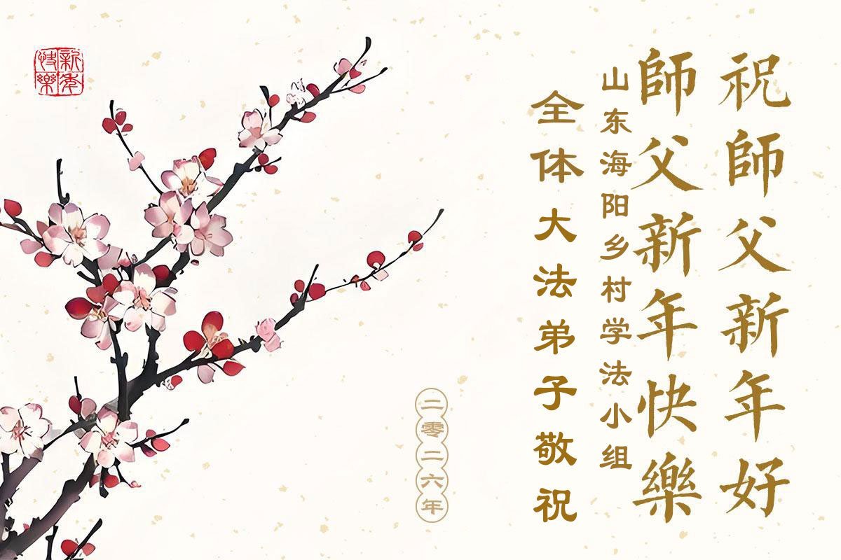 以下是部份来自中国各省、市、地区的学法炼功小组、讲真相小组、资料点大法弟子们敬致师尊的新年贺词贺卡: