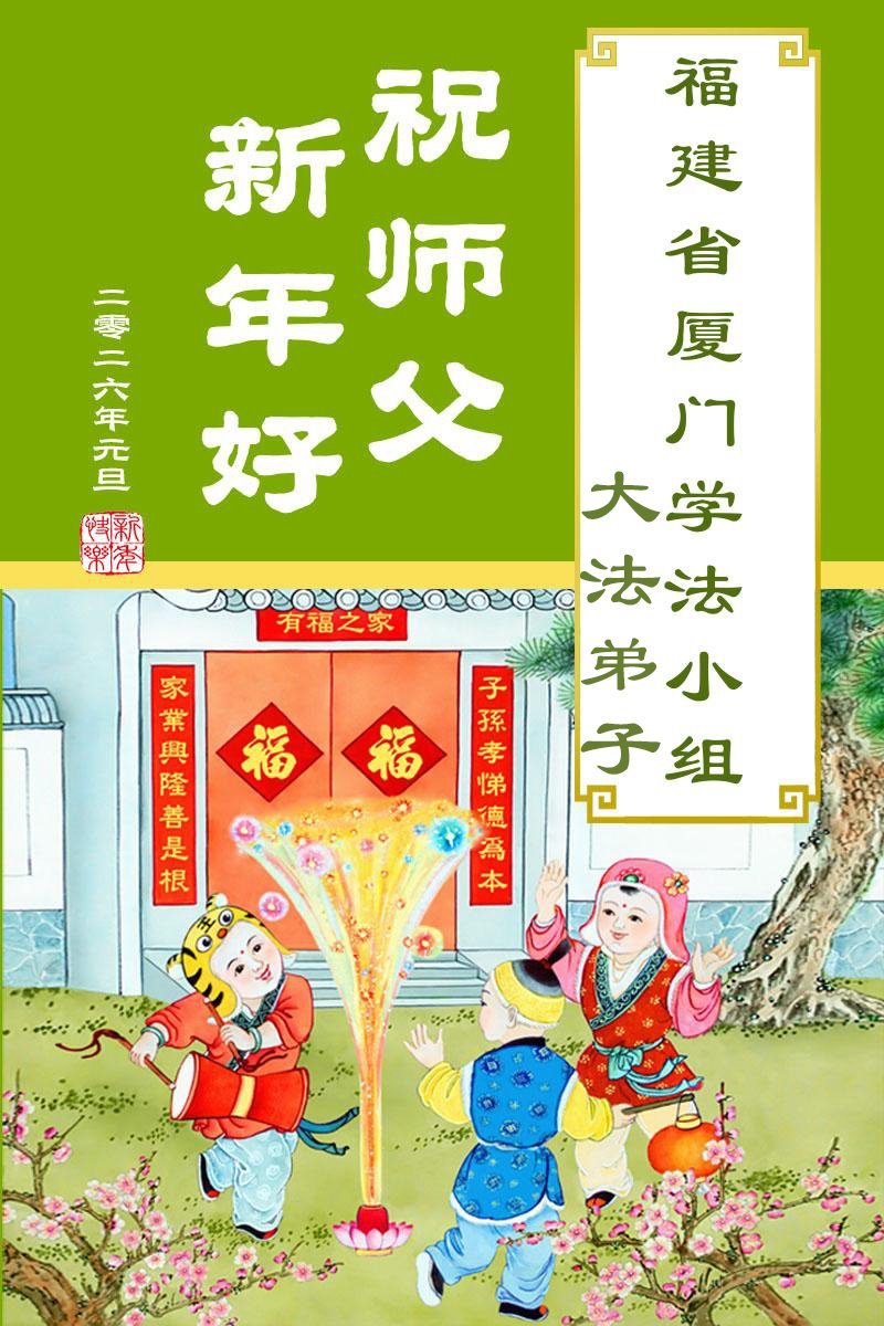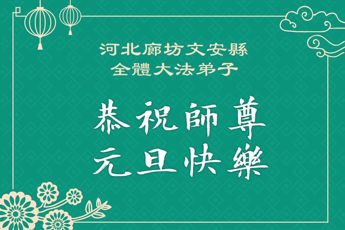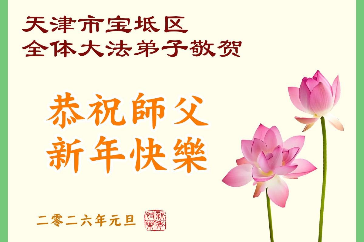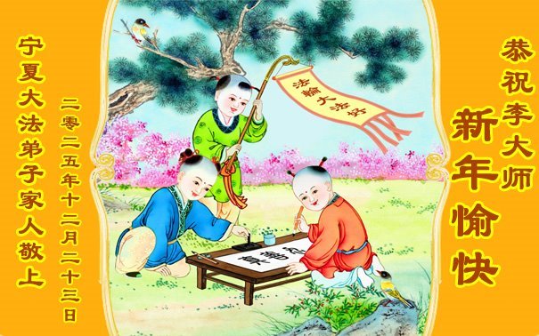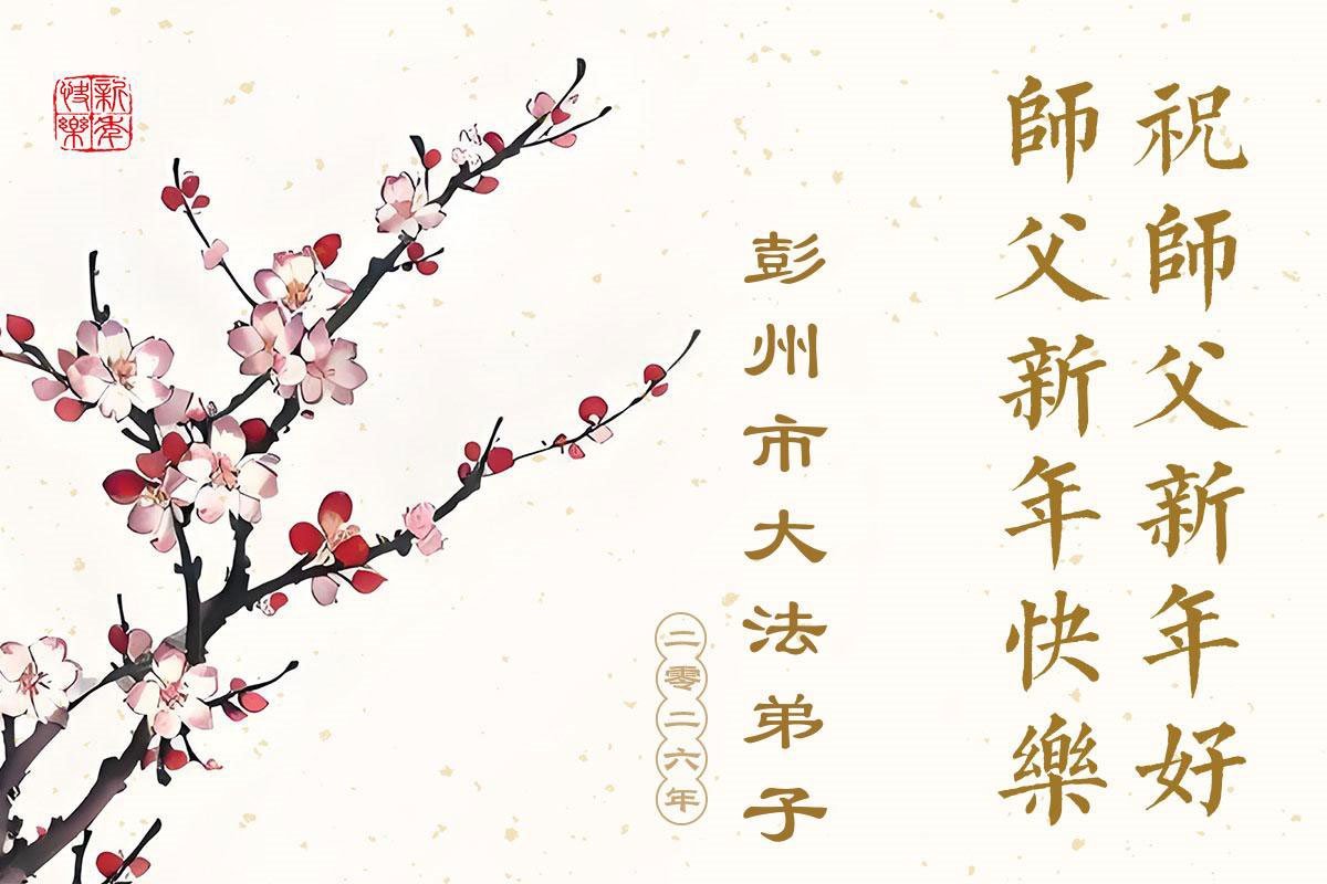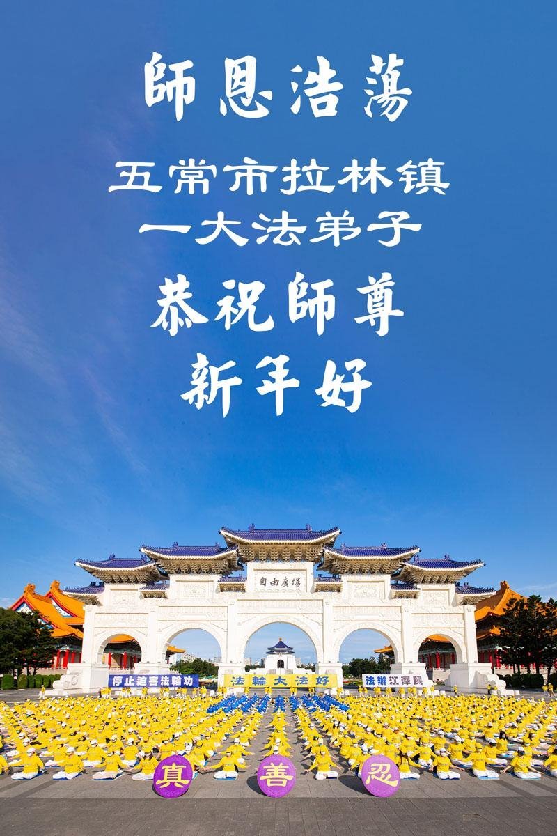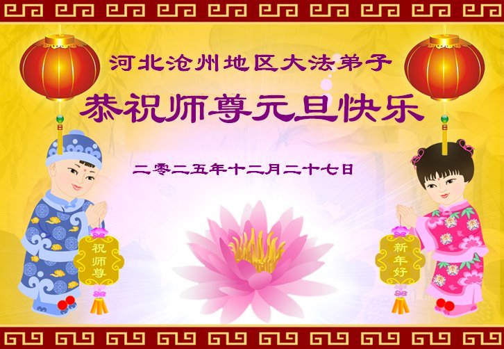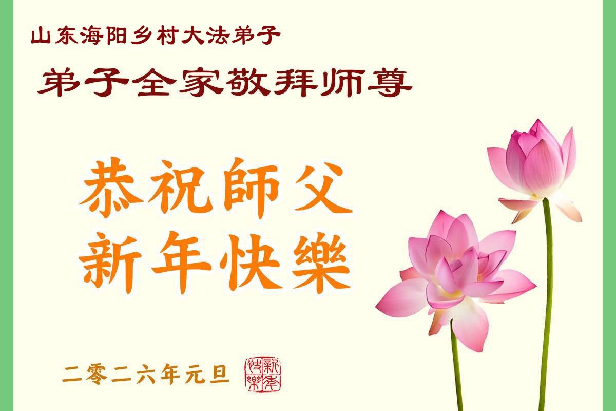 以下是部份来自中国各省、市、地区的学法炼功小组、讲真相小组、资料点大法弟子们敬致师尊的新年贺词贺卡: