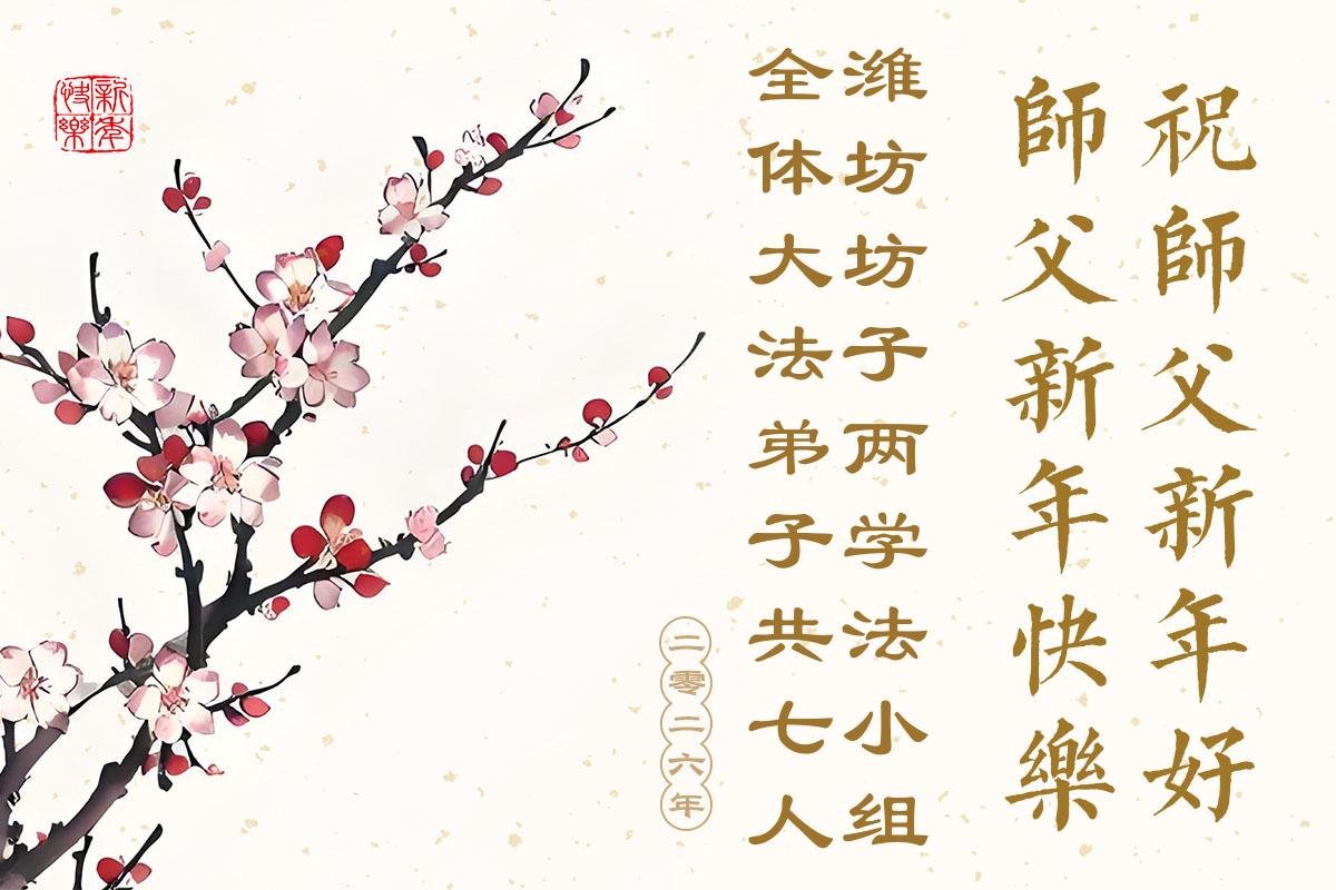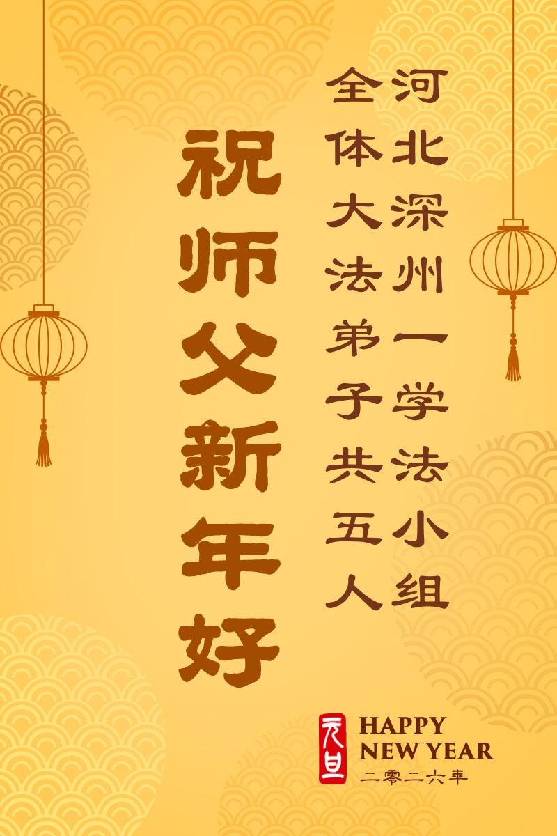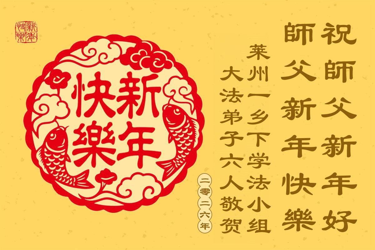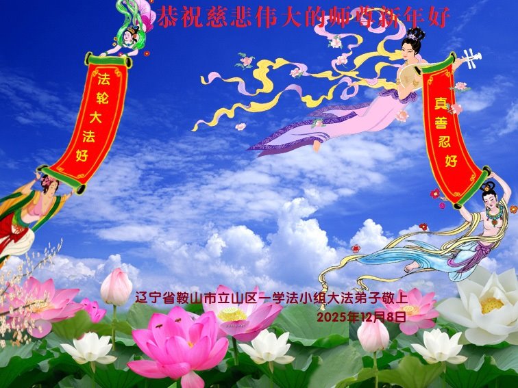 慈悲伟大的师尊您好,您辛苦啦!新年到来之际,我们十个学法小组的弟子们合十恭祝师尊新年好!新年快乐!弟子感恩师尊慈悲普度!我们每天三三两两的一起出去面对面讲真相救人,一起学法,相互提醒,共同升华,做好三件事圆容师尊要的。感恩师尊对弟子的一路加持看护!
