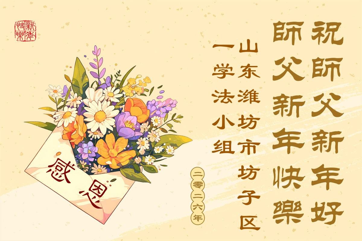 【明慧网二零二五年十二月三十一日】二零二六年新年钟声敲响之际,中国大陆30省、直辖市、自治区大法弟子同拜师尊,恭祝慈悲伟大的师尊新年好!