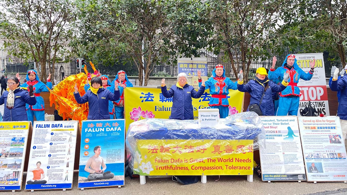 【明慧网二零二五年二月十一日】二零二五年二月八日,部份法轮功学员來到爱尔兰首府都柏林,庆祝即将到来的元宵节。从优美祥和的功法展示、到游弋飞腾的金龙表演,吸引过往行人驻足、拍照。许多人在了解什么是法轮功后,签名要求制止正发生在中国的迫害。也有民众询问学功地点及购书方式。