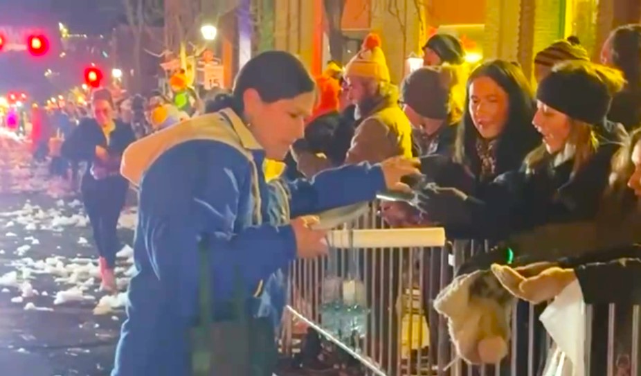 今年是雪镇节的第46个年头。杜兰戈的雪镇灯光大游行是每年的重要活动,通常吸引约万名观众。雪镇节的初衷是为在南落基山脉的这个古朴小镇的寒冷冬季提振人们的精神。与这一使命相契合,今年法轮功学员设计的花车主题为“天上梅花”。梅花是一种能忍受严寒的美丽花卉,象征着春天的到来,也象征着法轮大法从东方传向西方,将希望的讯息带给人们。当花车庄严地穿过人群时,随着法轮大法炼功音乐的美妙旋律,学员们展示着法轮功优美祥和的动作。