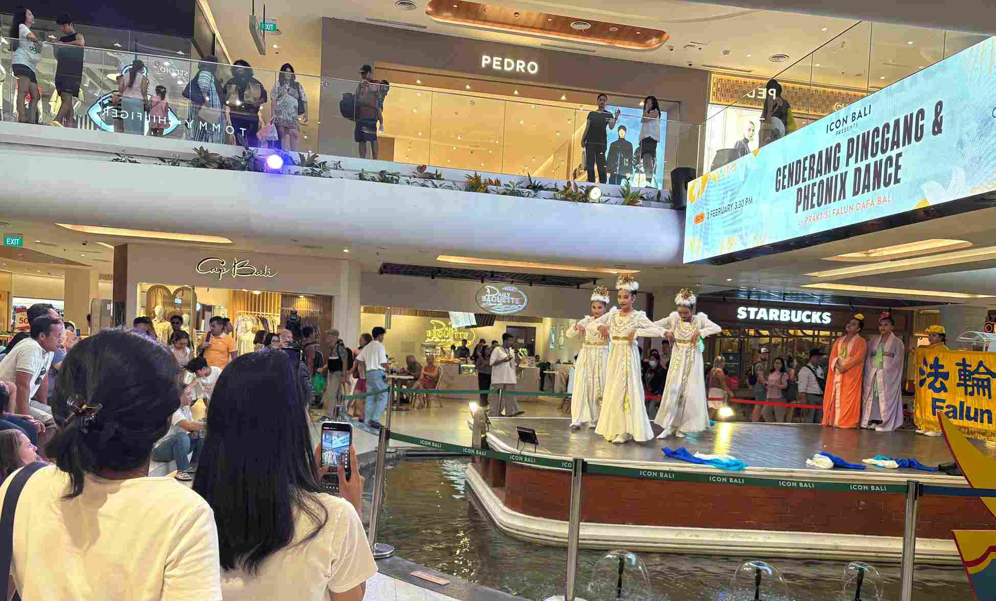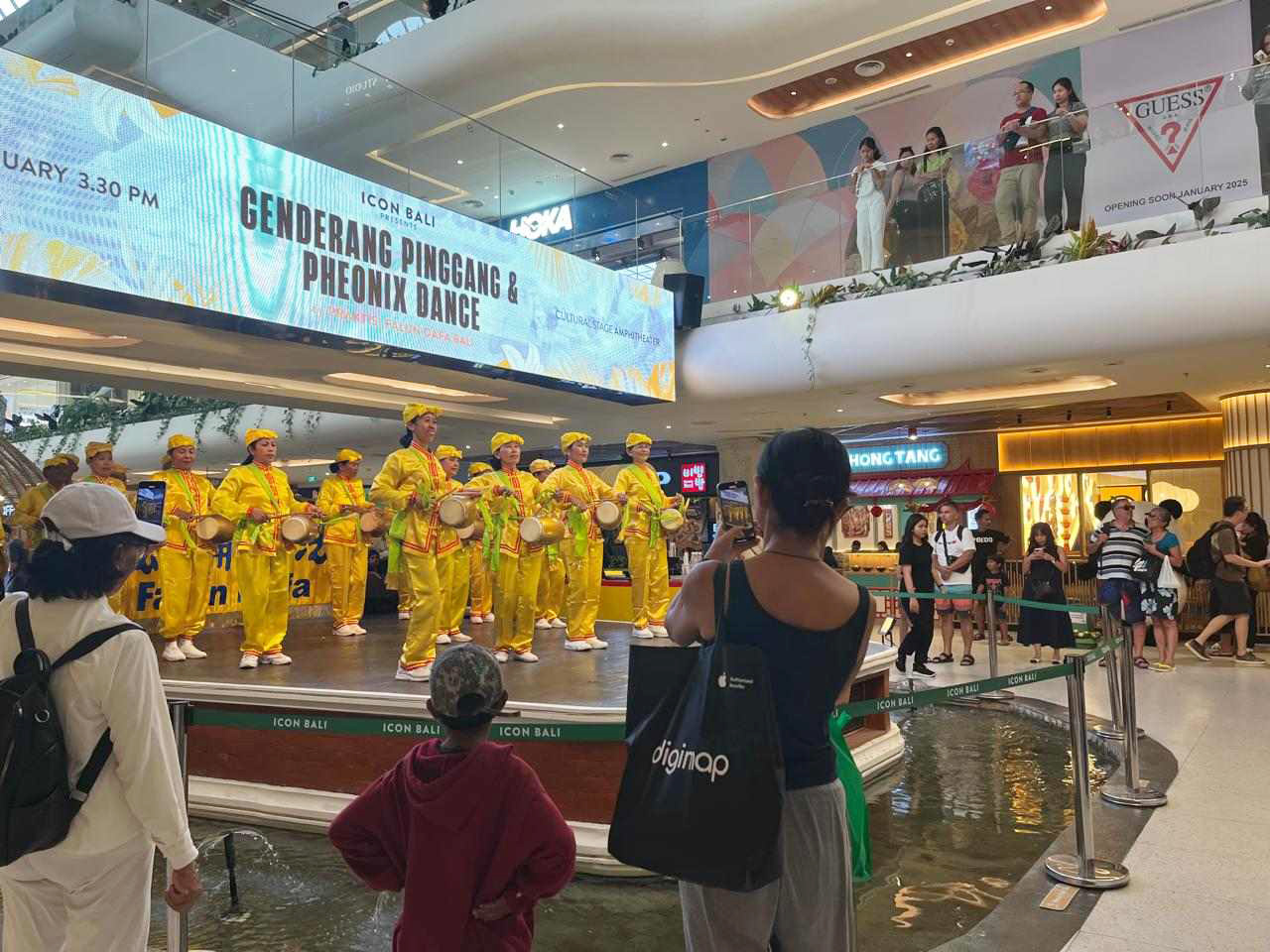 【明慧网二零二五年二月十五日】从二零二五年一月至二月,印度尼西亚巴厘岛的大型购物中心(Icon Mall)举办了一系列传统的文化活动,庆祝华人新年。二月二日,法轮大法团体应邀参加了庆祝活动,法轮功学员表演了腰鼓和舞蹈,主持人在舞台上向观众介绍了法轮大法的五套功法及其在祛病健身方面的奇效,并介绍了法轮大法的主要著作《转法轮》,受到游客的欢迎和好评。