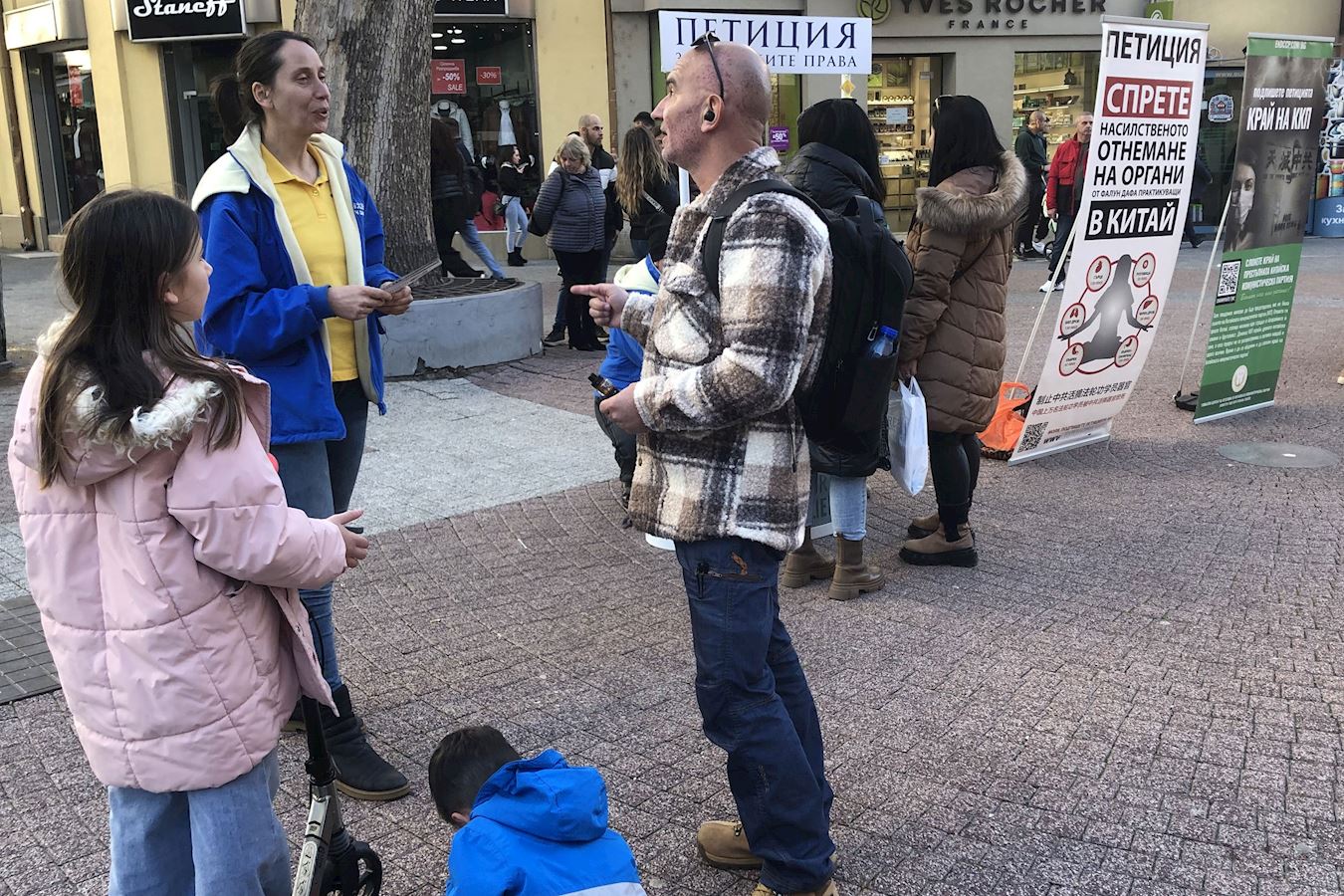 来自保加利亚的城镇奇尔潘(Chirpan)的一位名叫迪诺唷(Dinyo)的男士坐在展台后面仔细阅读了整本真相小册子,然后在请愿书上签名。一位女学员问他是不是本地人,迪诺唷恰巧来自于这位学员的家乡,学员表示正打算回家乡举办讲真相和征签活动。迪诺唷对这一请愿活动的严肃性和独特性深感触动,他和这位学员互留了联络方式,因为他打算在这位学员回家乡办活动时带上他的朋友和同事也在请愿书上签名。