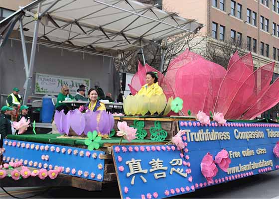 纽约雪城圣帕特里克日游行 法轮功花车受欢迎