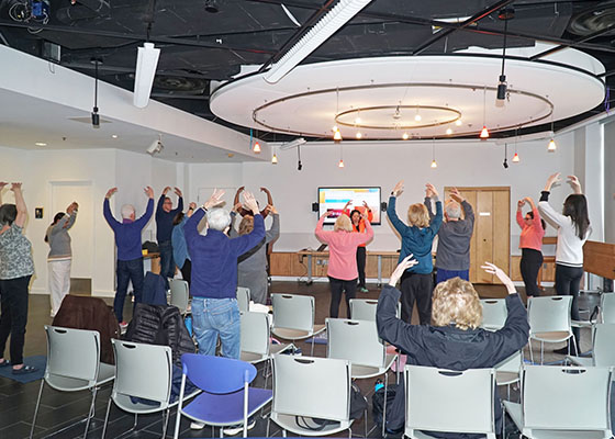 三月二十二日,大费城地区法轮大法学员在特拉华州威明顿市图书馆举办了一场义务教功活动,向当地民众介绍法轮大法和教炼五套功法。