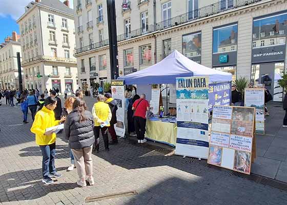 法国南特市3月29日举办了大型旧货市场。在皇家广场的黄金位置,法轮功学员设立了信息台,向民众介绍法轮功,揭露中共对法轮功的迫害。