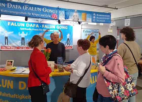 三月二十九日至三十日,法轮功学员在班贝格“弗兰肯活力与生命”健康博览会上展示法轮大法的美好,并揭露中共迫害法轮功罪行。