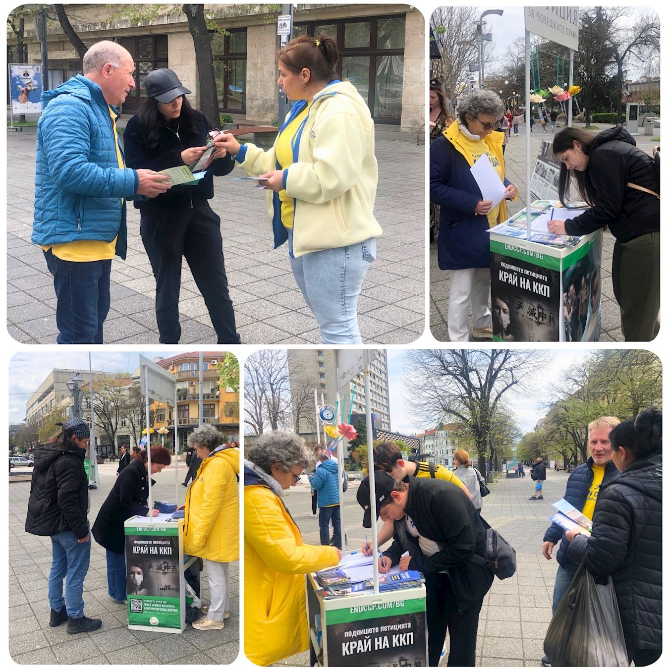 四月五日,学员来到黑海小镇布尔加斯,在靠近市政厅和自由广场的地方设立了真相展板和横幅,他们与路人交谈,分发传单,并征集在两份请愿书上的签名。一份请愿书反对中共迫害法轮功,另一份是呼吁政府防止保加利亚人在不知情的情况下,参与了中共针对法轮功学员的活摘器官的罪行。人们了解真相后,纷纷签名支持反迫害。