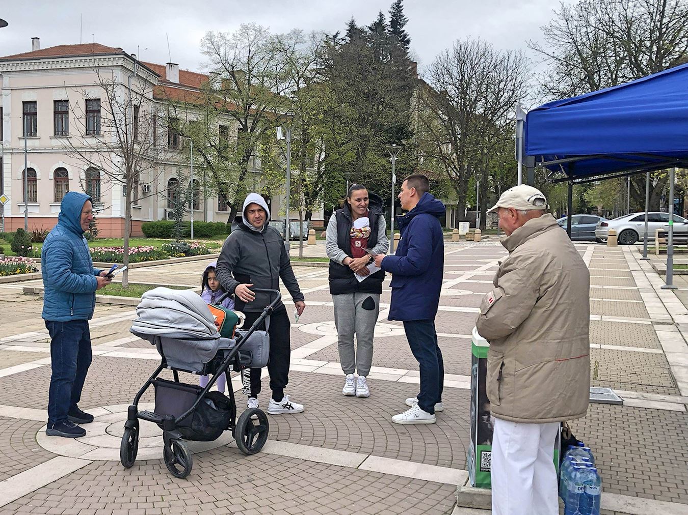 四月六日,星期日,学员们在扬博尔(Yambol)通贾酒店(Tundzha Hotel)、中央城市公园入口和老矿泉浴场之间的中心路口举办了讲真相活动,当天严寒刺骨,但学员仍热情的与路人交谈,分发传单,并征集签名。