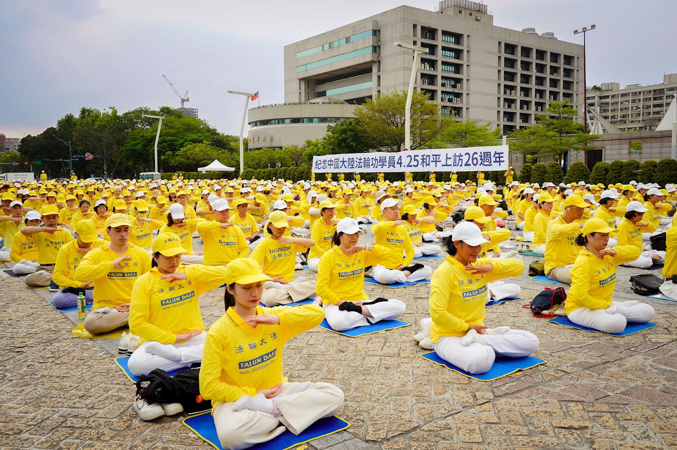 【明慧网二零二五年四月二十二日】(明慧记者李佳、沈容台北采访报导)二零二五年四月十九日,法轮功学员在台北市政府前广场召开记者会,并集体炼功,纪念一九九九年四月二十五日中国法轮功学员万人和平上访第二十六周年。