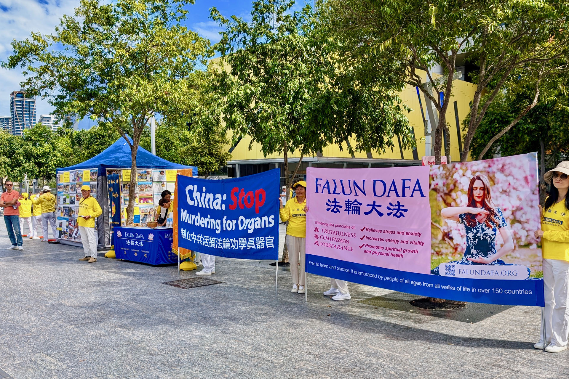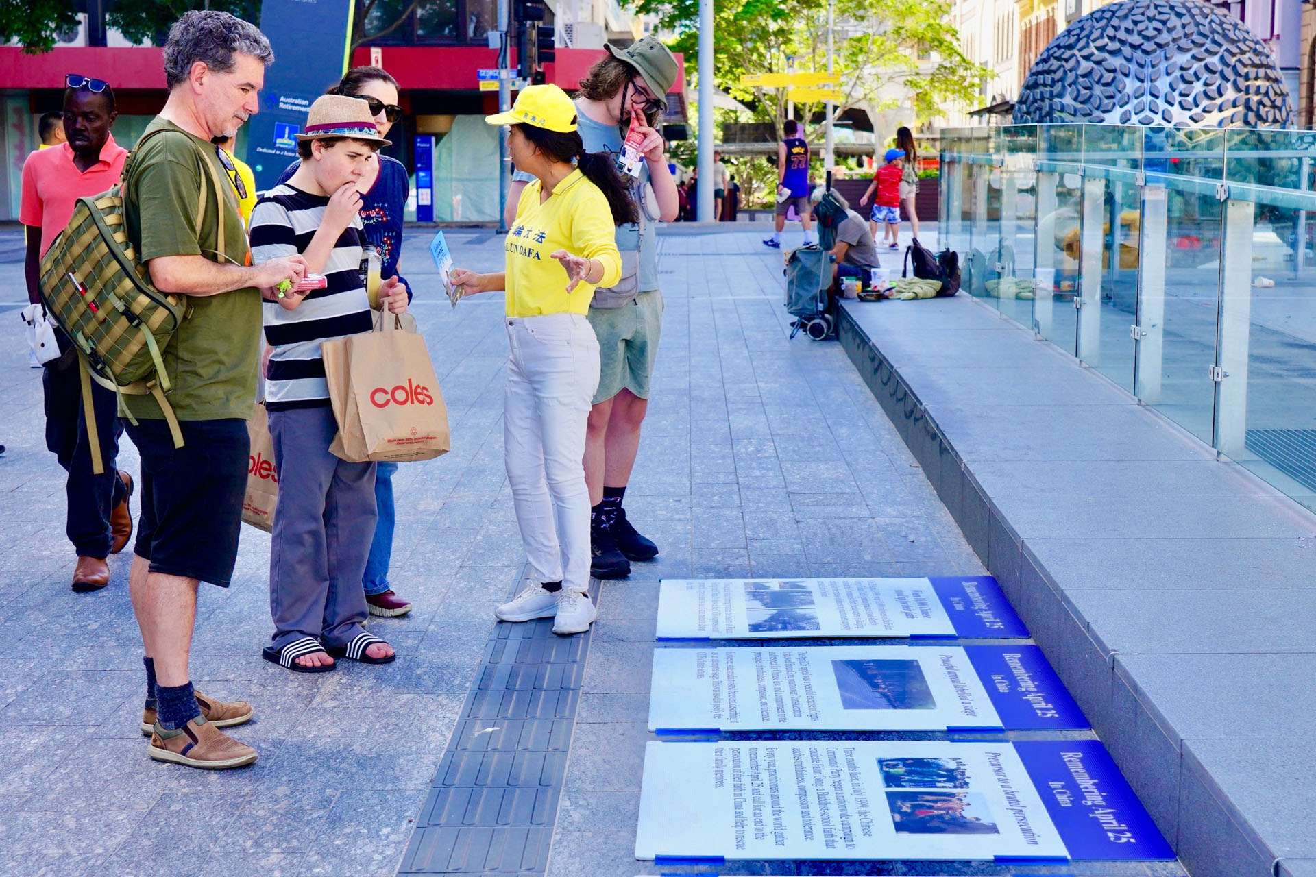 【明慧网二零二五年四月二十五日】(明慧澳洲昆士兰记者站报道)二零二五年四月十九日星期六,澳洲昆士兰法轮功学员齐聚布里斯班广场(Brisbane Square)举办纪念“四·二五”法轮功学员和平上访二十六周年活动,广传真相。