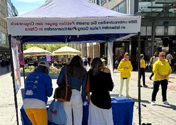 四月十九日复活节,萨尔布吕肯市部分德国法轮功学员举办了信息发布会,谴责中共活摘法轮功学员器官。许多人对此深切关注。