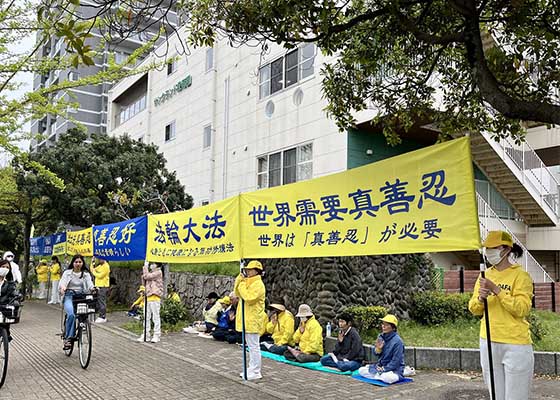 4月25日,日本各地的法轮功学员来到中共驻东京大使馆、名古屋领事馆、福冈领事馆、大阪领事馆及札幌领事馆和平请愿,纪念四·二五。