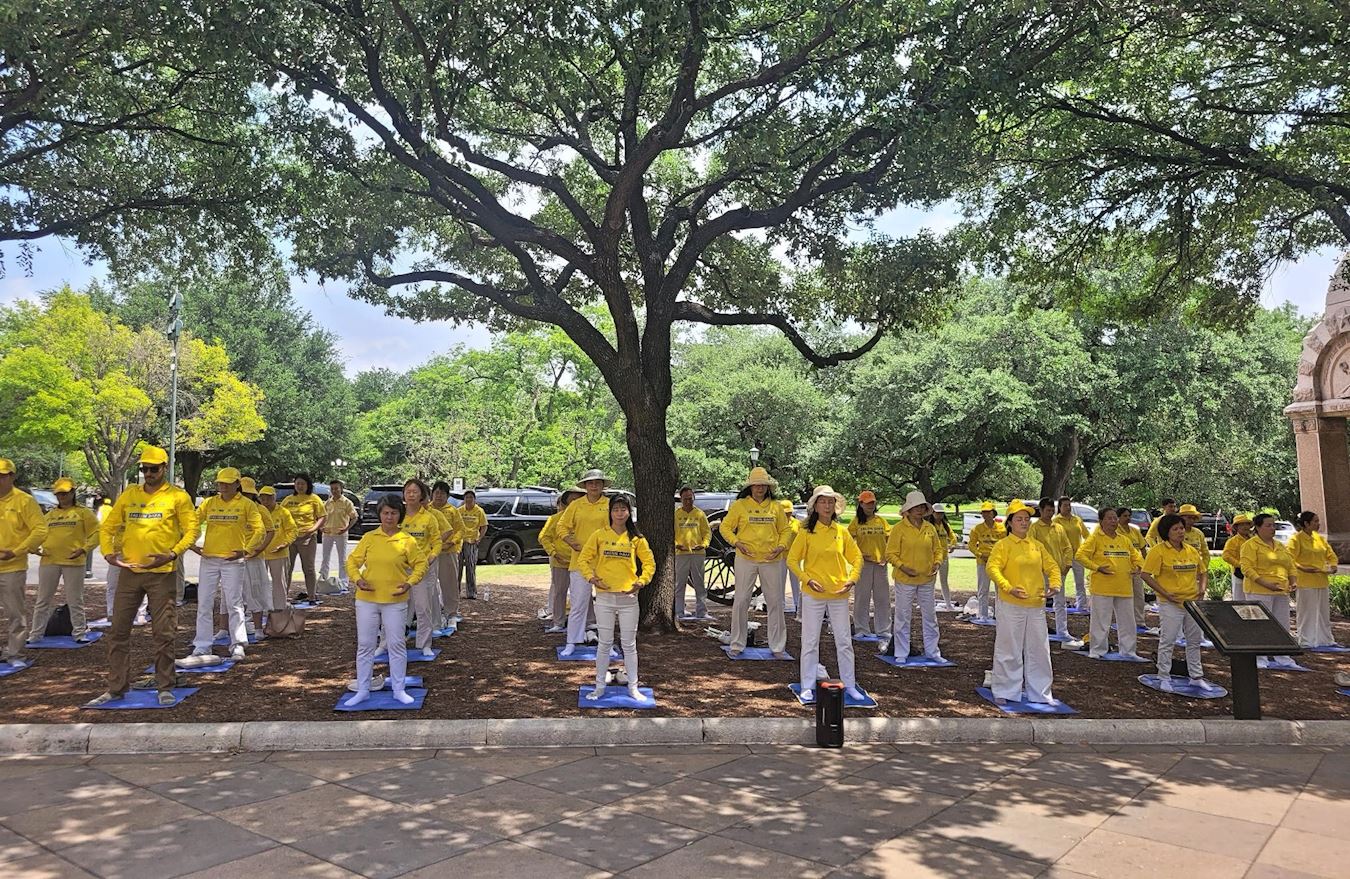 【明慧网二零二五年四月二十七日】(明慧记者曾洪德州奥斯丁报道)二零二五年四月二十四日中午,美国德克萨斯州部分法轮功学员在州府奥斯丁市(City of Austin)的州议会大厦前举办集会、集体炼功和讲真相活动,以纪念法轮功学员四‧二五和平上访二十六周年。德州参议员安吉拉‧帕克斯顿(Angela Paxton)到场发表讲演,支持法轮功反迫害。