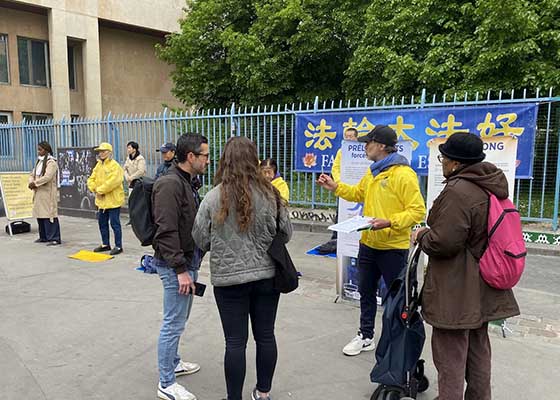 巴黎的法轮功学员4月19日和25日,分别在巴黎市中心夏特莱街区和美丽城举办了介绍法轮功、演示法轮功功法和征集反迫害签名等活动。