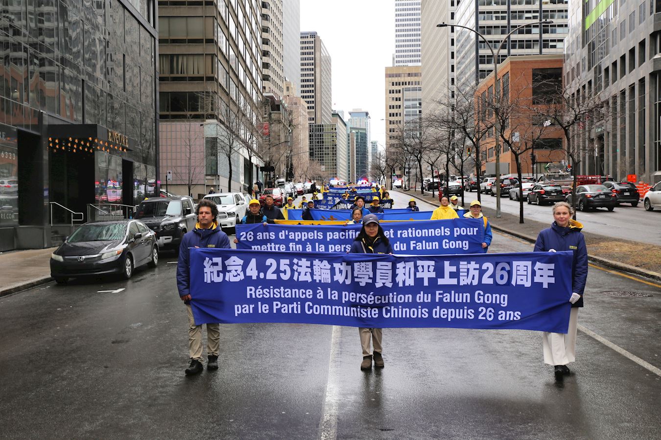 ![]() 图1~4:二零二五年四月二十七日下午,加拿大魁北克省部份法轮功(法轮大法)学员在蒙特利尔举行游行,纪念法轮功学员和平理性反迫害二十六周年。 |