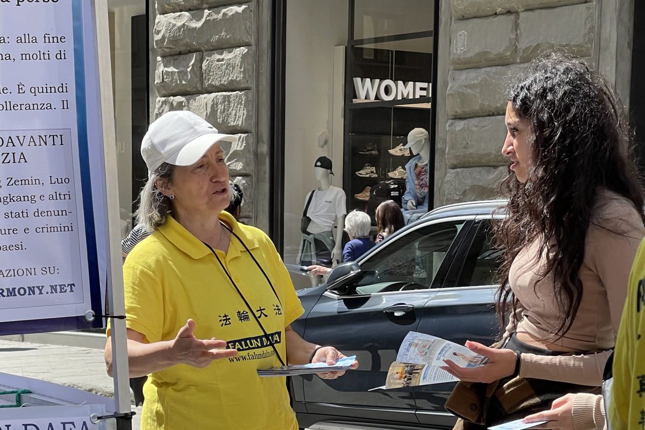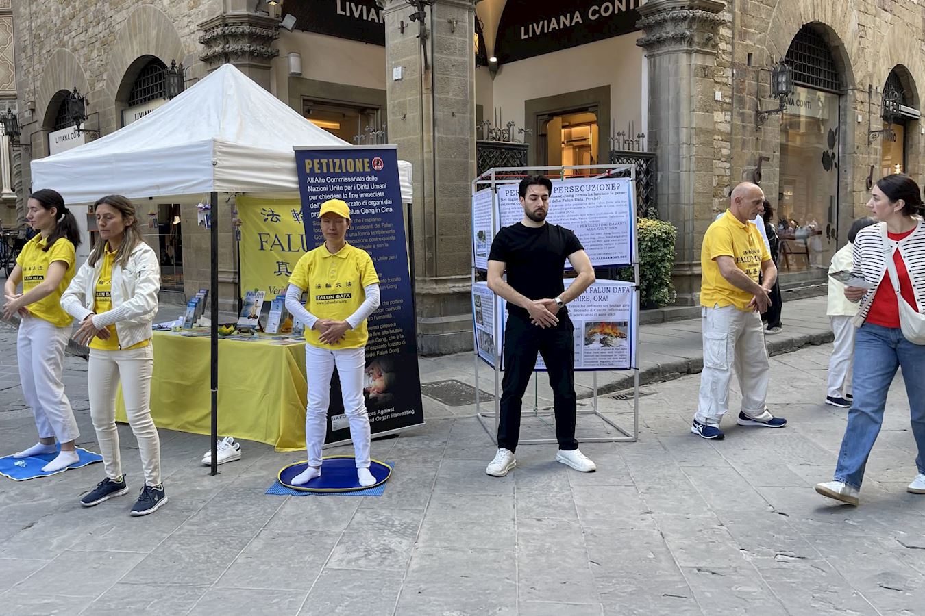 一位住在托斯卡纳的先生说,他于一九九八年在中国时,看到数百名法轮功学员一起炼功,那种宁静祥和的方式让他至今难忘。后来了解到法轮功遭受到镇压,当时并没有引起他的注意,而现在与法轮功学员们交流并查看真相资料后,他才意识到了问题的严重性,他签署了制止迫害的请愿书。