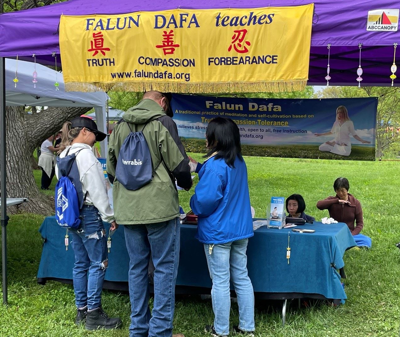 不少人对法轮功表现出了浓厚的兴趣,纷纷询问学习方式。得知圣路易斯多个公园每周末都有免费教功的集体炼功点时,许多人表示希望抽空前往体验。学员们还讲述了法轮功在中国无辜遭受迫害的真相,现场民众听后无不感到震惊与关切,认真阅读展位上的资料,有的还询问更多细节。