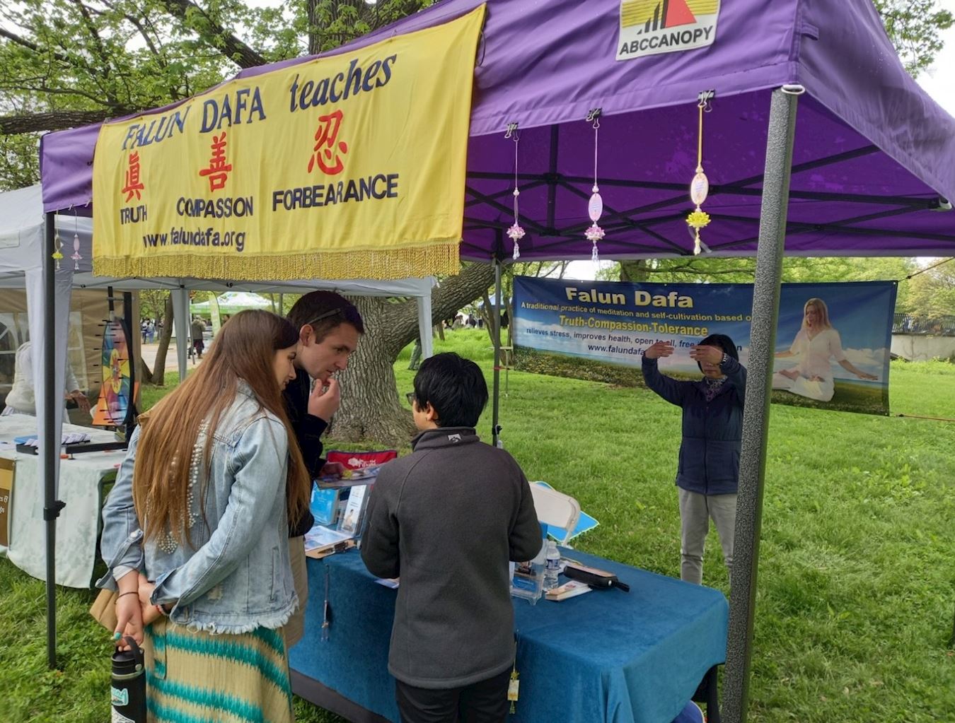 【明慧网二零二五年四月三十日】二零二五年四月二十六日至二十七日,美国密苏里州圣路易斯市森林公园迎来了一年一度的地球日(Earth Day)庆祝活动,吸引了众多市民参与。当地法轮功(又称法轮大法)学员一如既往地在活动中设立了展位、展示功法,向公众介绍这一源自中国、以真、善、忍为核心的传统修炼方法。