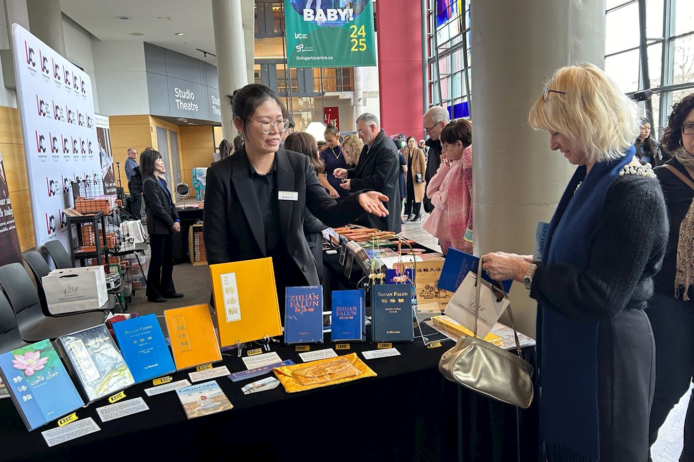 ![]() 图11:二零二五年三月二十二日晚,加拿大约克大学兽医博士后研究员米娜(Mina H),观赏了神韵在加拿大密西沙加市的演出,现场购买了一本《转法轮》。(大纪元) |