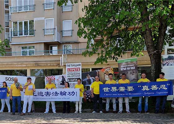 四月二十五日星期五,来自全国各地的保加利亚学员在中共驻索菲亚大使馆前举办和平集会,纪念四·二五和平上访二十六周年。