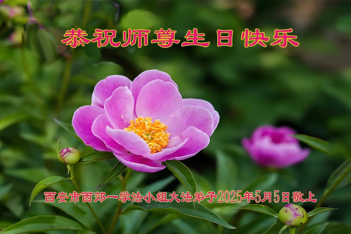 恭祝师父生日快乐!恭贺大法洪传三十三周年!五·一三快到了,弟子一定不忘师尊教诲,精進实修,用实际行动回报师恩!