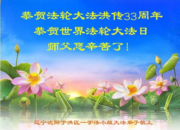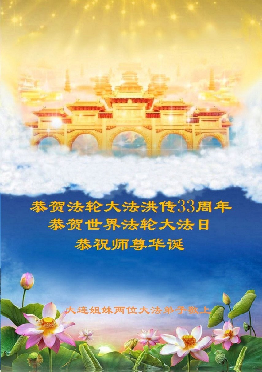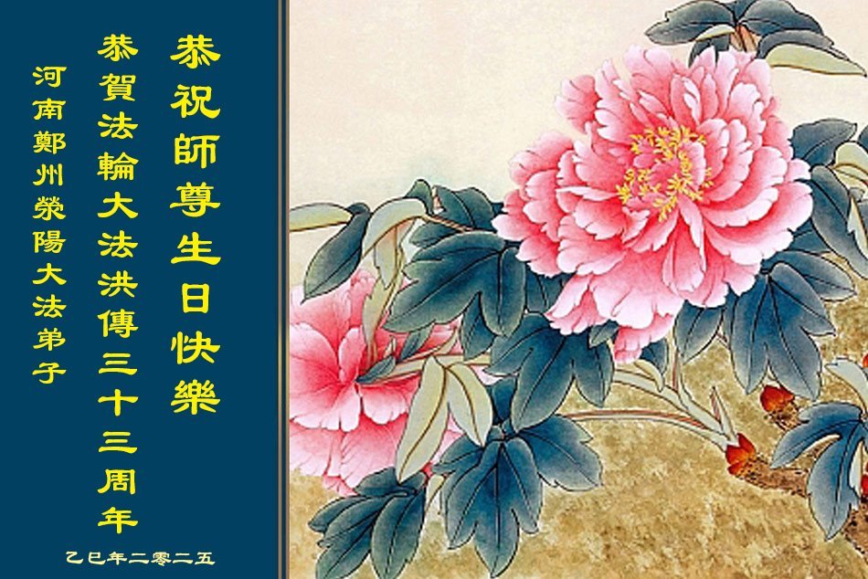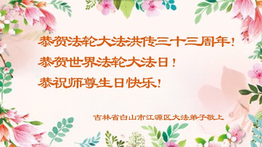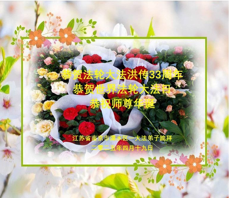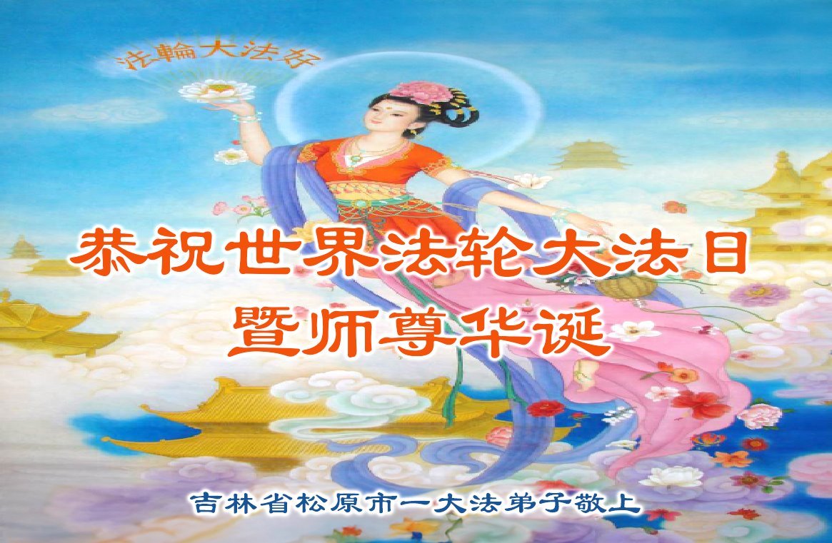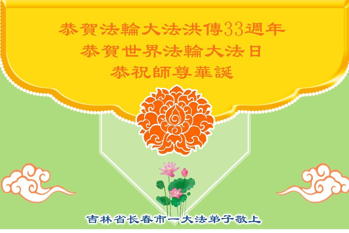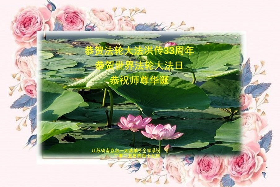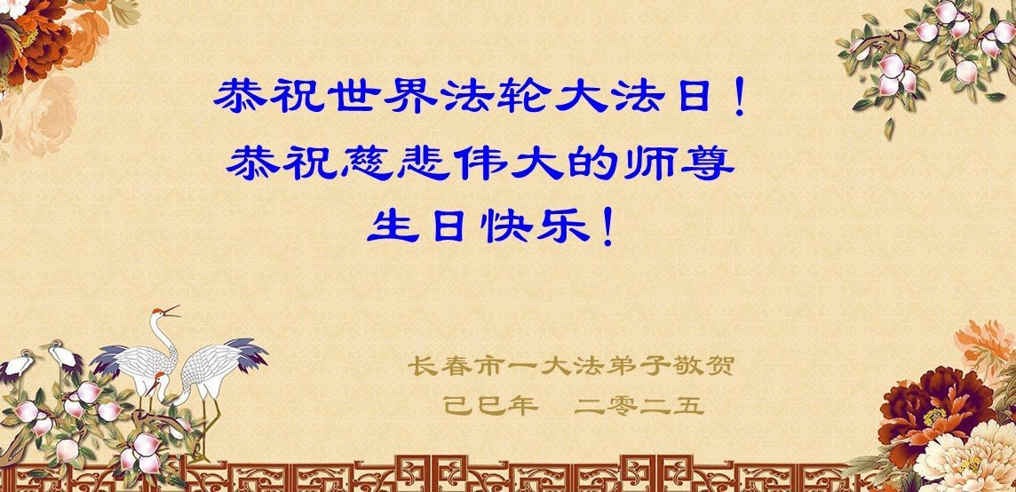 值此法轮大法开传三十三周年纪念日、第二十六届世界法轮大法日,伟大师尊七十四岁华诞喜庆之际,弟子恭祝师尊华诞!同庆世界法轮大法日!