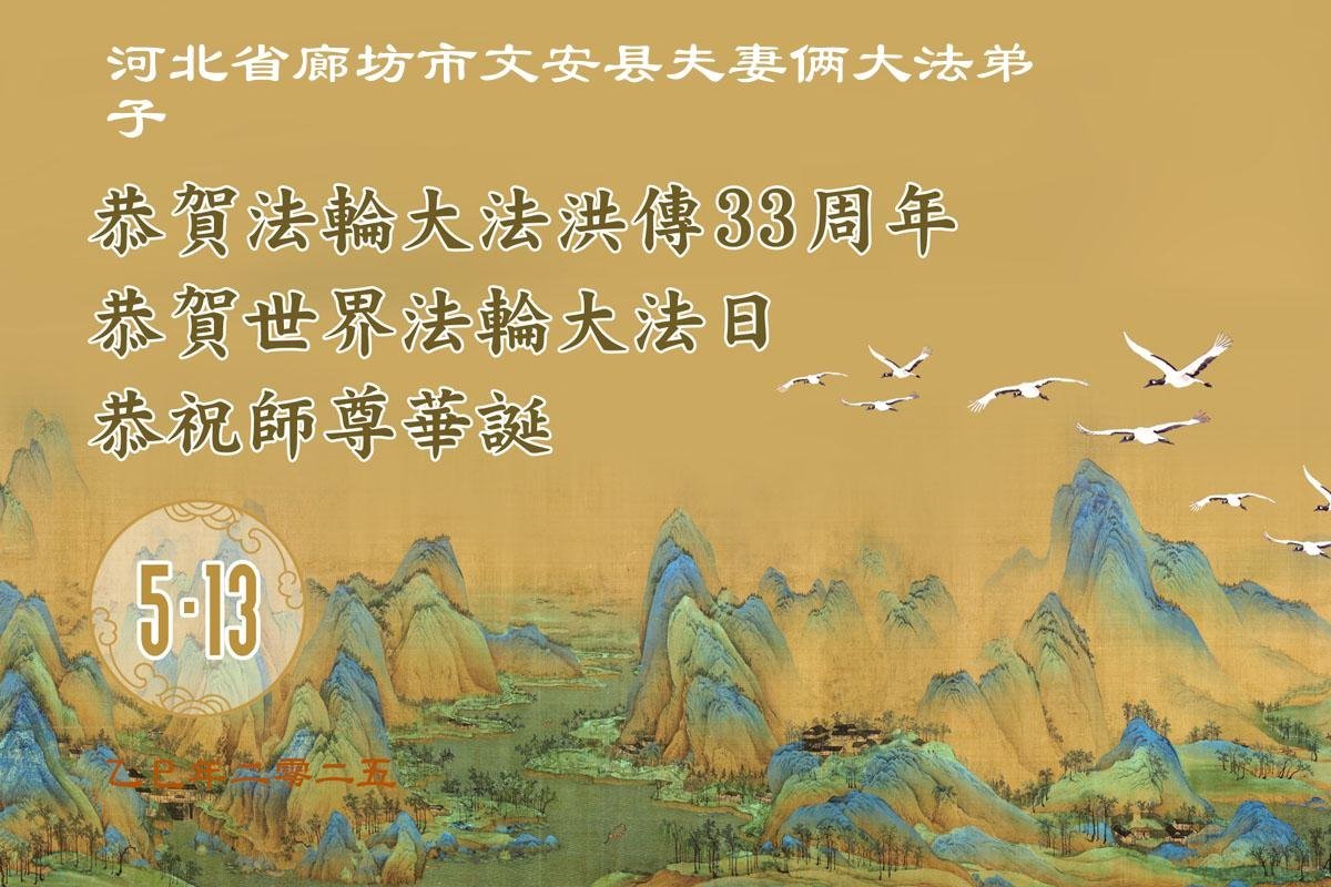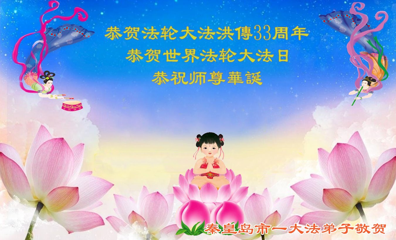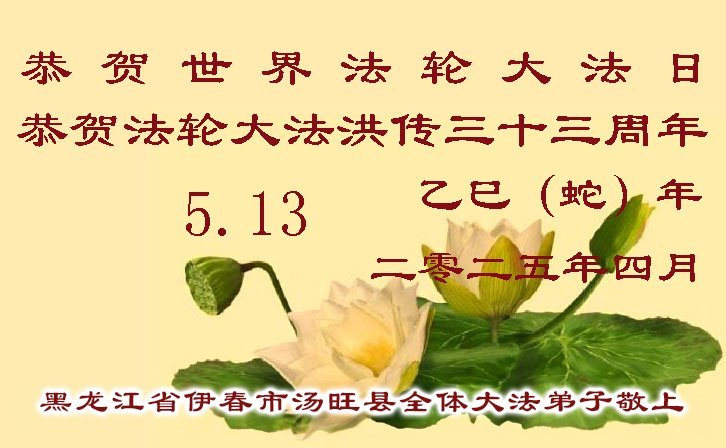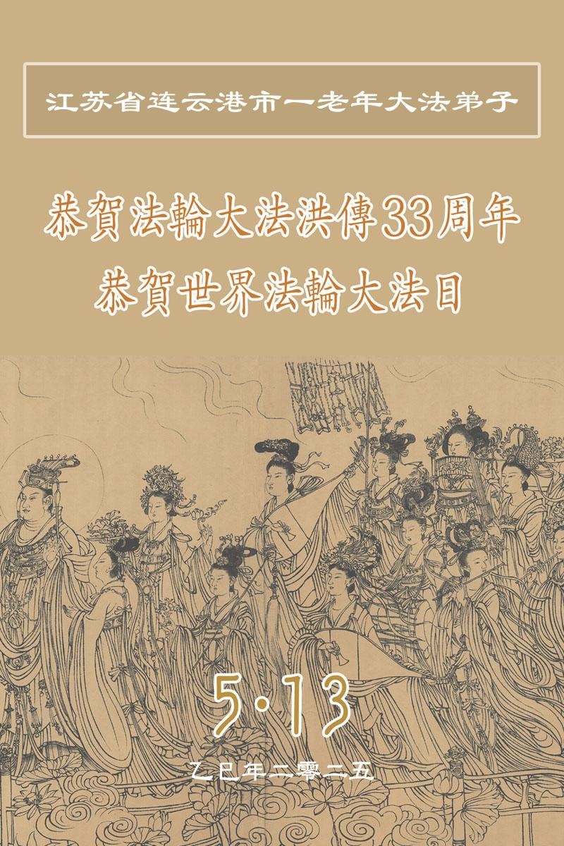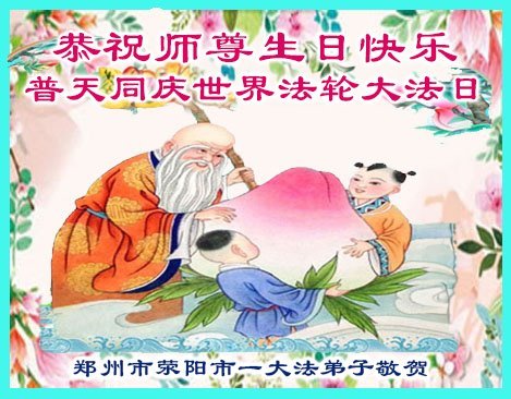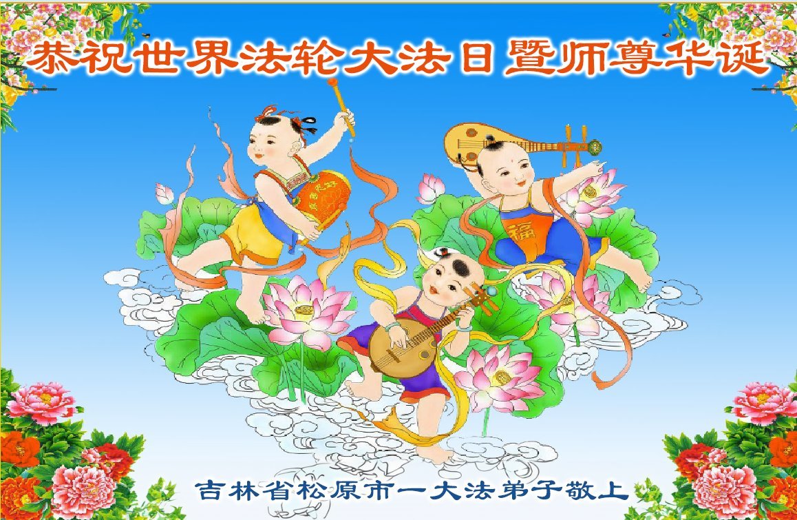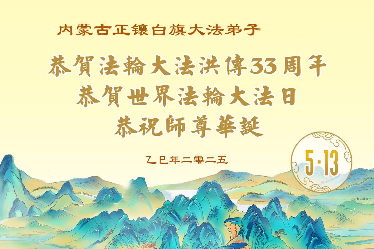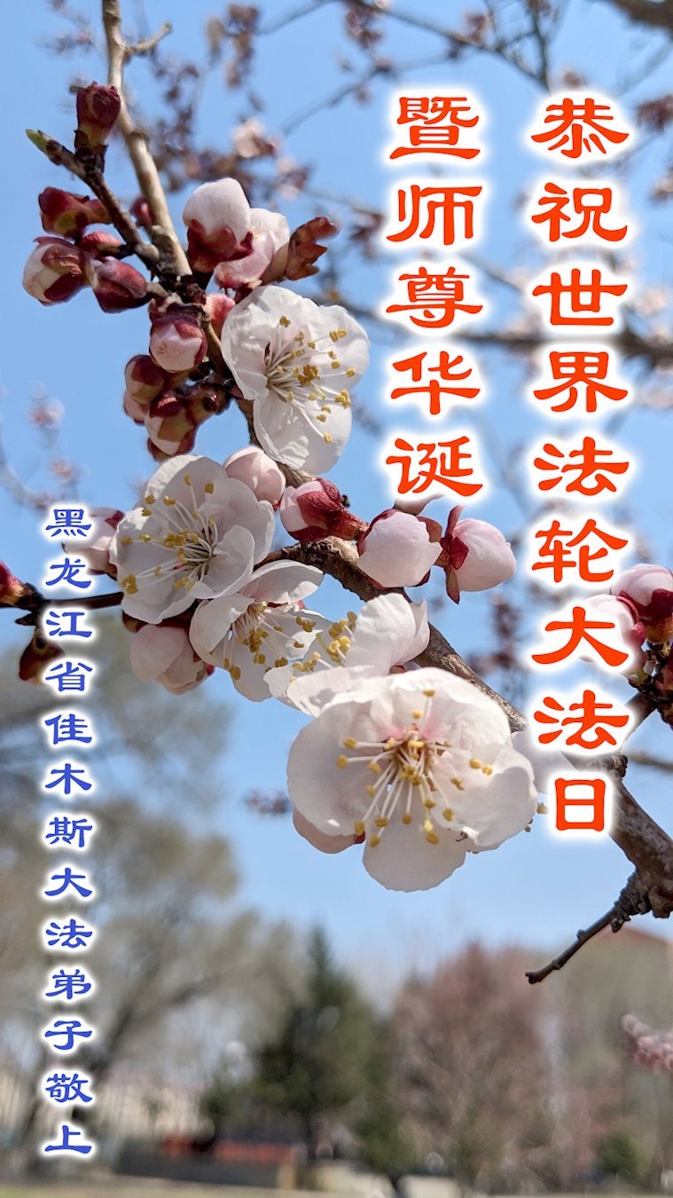 值此法轮大法开传三十三周年纪念日、第二十六届世界法轮大法日,伟大师尊七十四岁华诞喜庆之际,弟子恭祝师尊华诞!同庆世界法轮大法日!