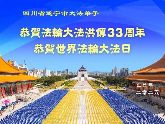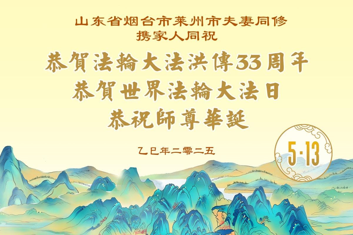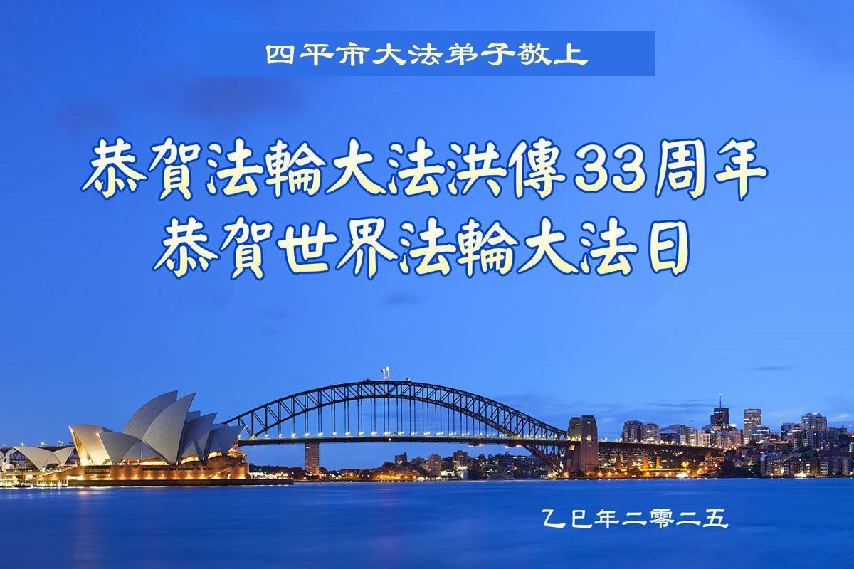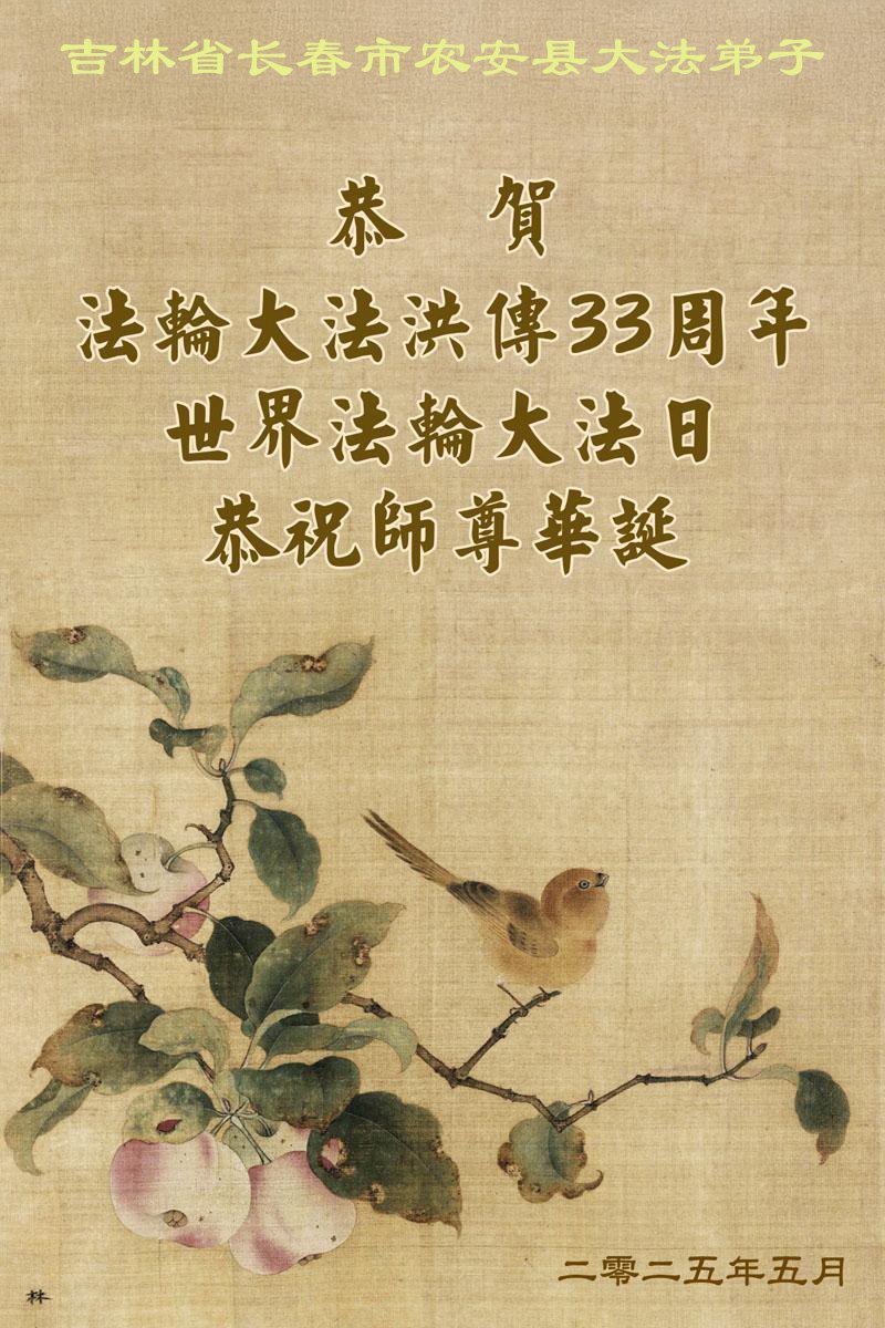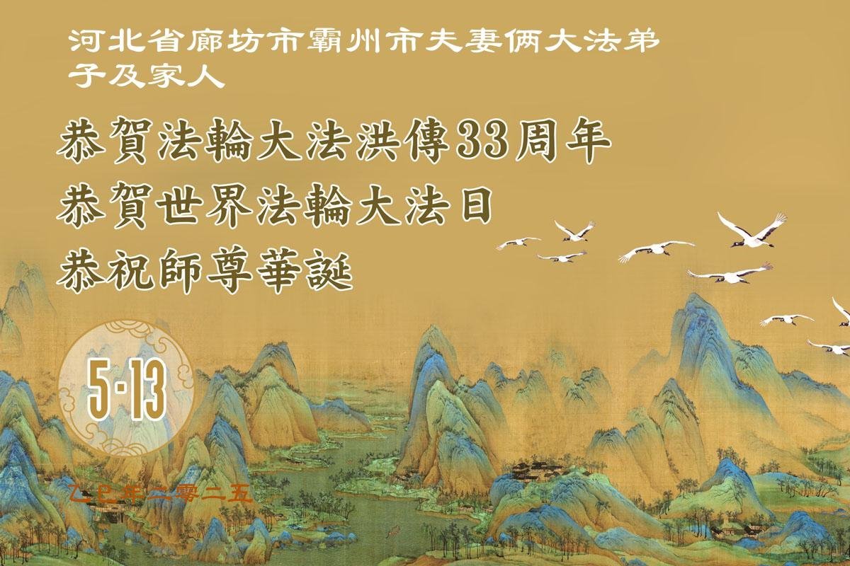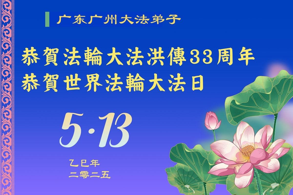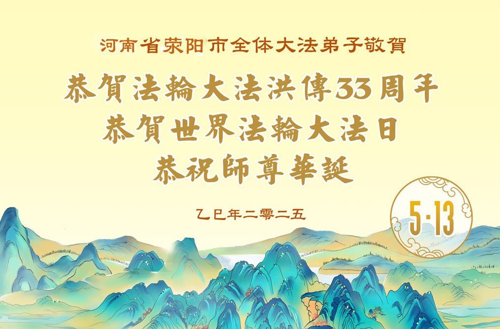 值此法轮大法开传三十三周年纪念日、第二十六届世界法轮大法日,伟大师尊七十四岁华诞喜庆之际,弟子恭祝师尊华诞!同庆世界法轮大法日!