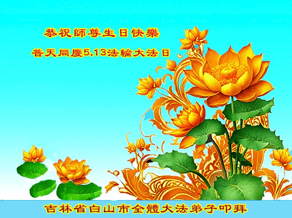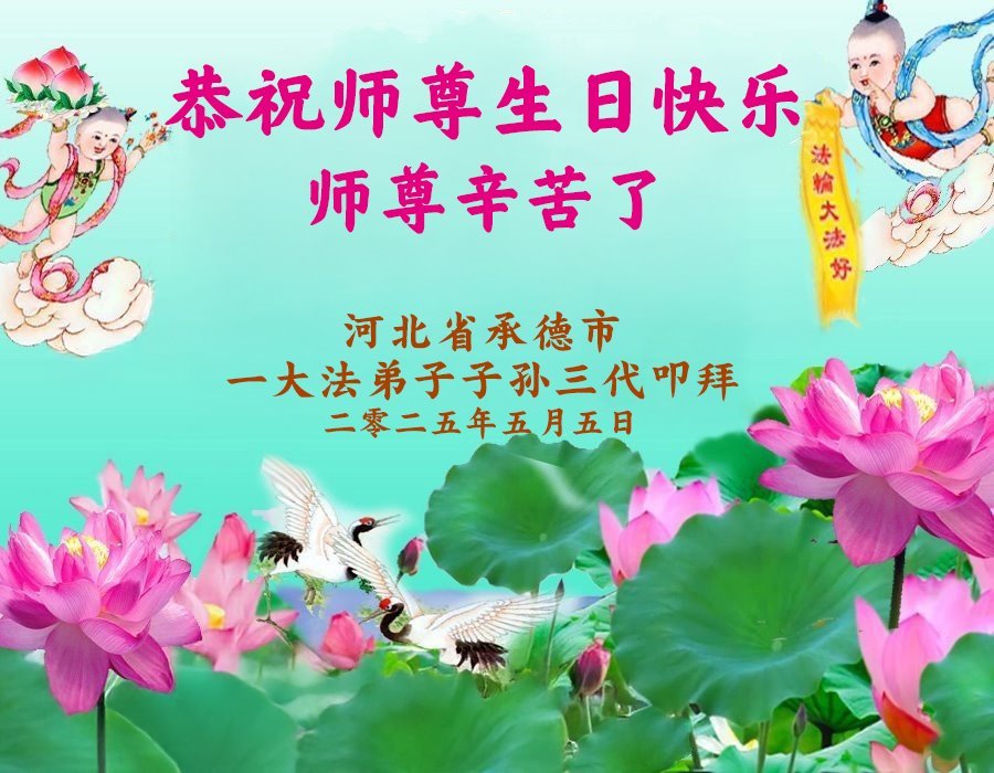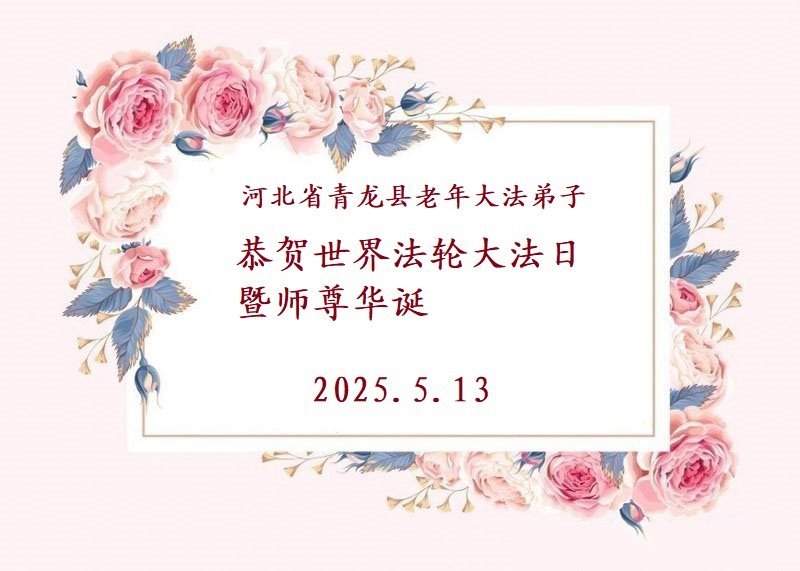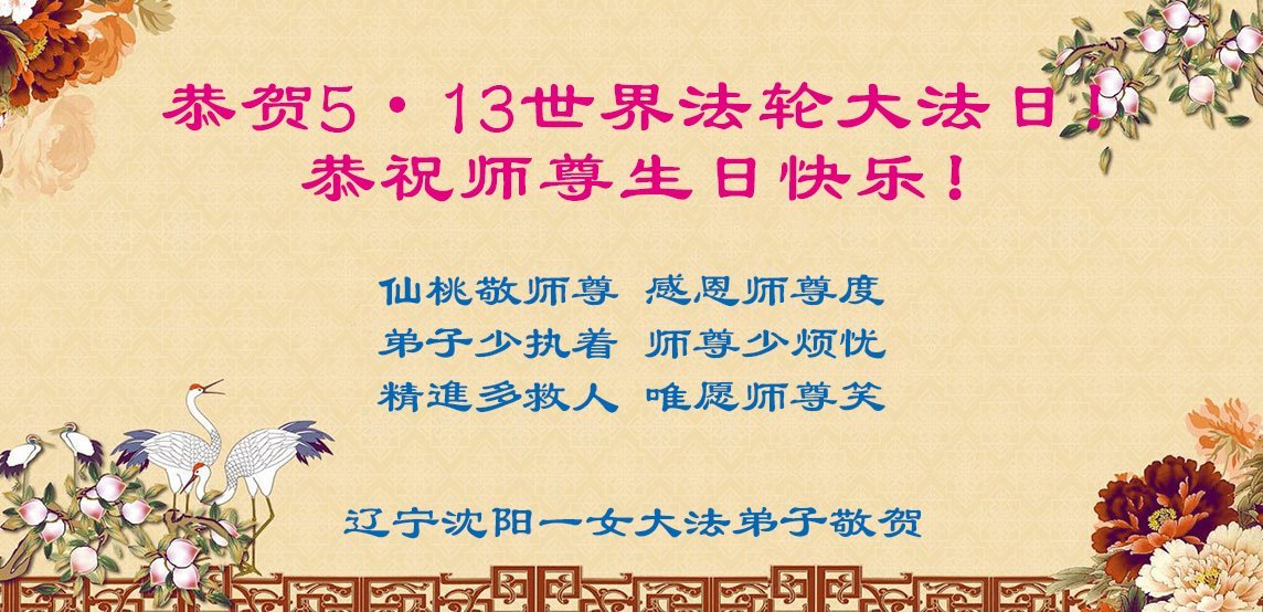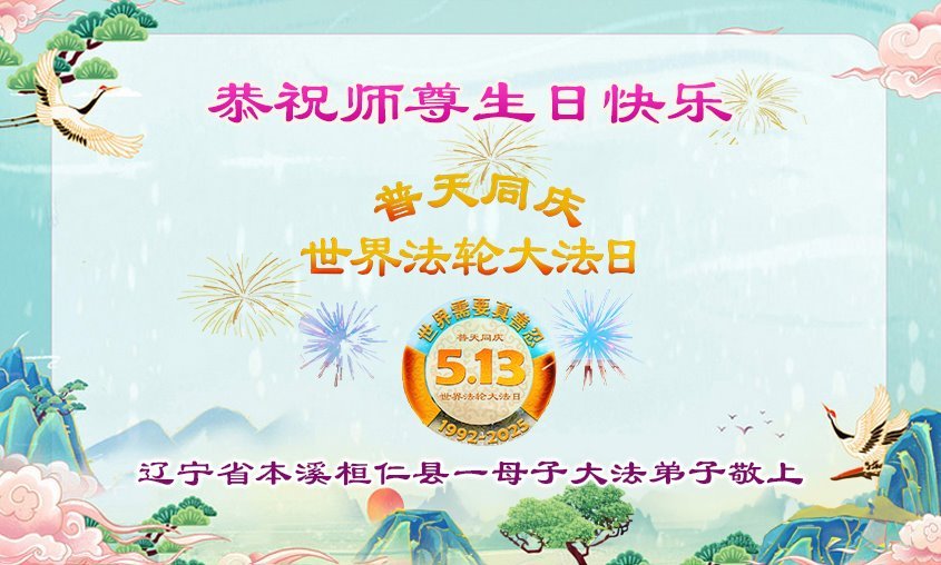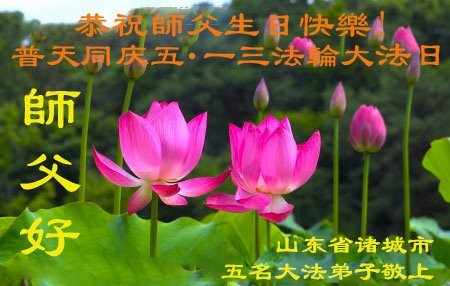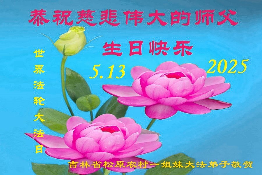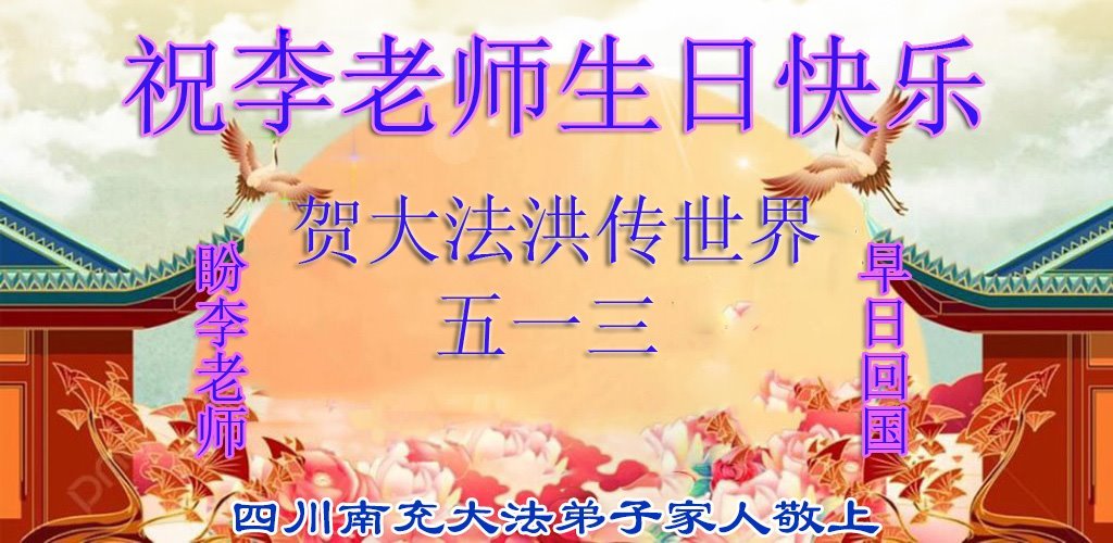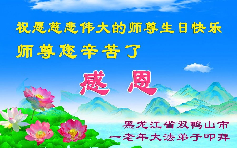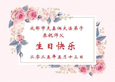 我们是九九年七二零之前得法的老弟子,历经种种风雨魔难,更加坚信大法,精進实修,以报师恩。在五一三世界法轮大法日来临之际,恭祝师尊生日快乐!我们想念师尊,盼望师尊早日回国,荣归故里。弟子敬拜师尊!谨以以下小诗敬献师尊。